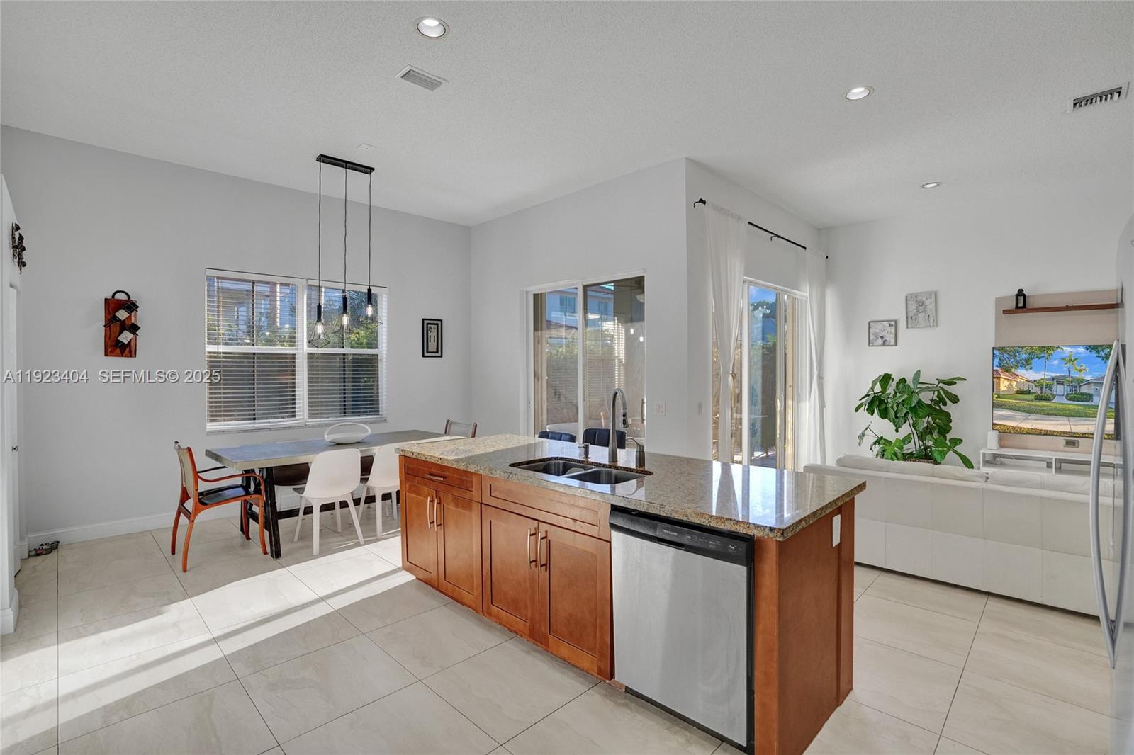 Located in Weston's Savanna subdivision, this one-story home is the perfect blend of elegance and comfort 4/2. 5. Inside, the main living area boast sleek tile floors, while the beds have been recently upgrade with laminate flooring. Bright and 12 ft ceilings, large eat-in kitchen, island, lots of closet space. Master bedroom features exceptionally large walk in closets. Newly update II bathroom. You will benefit from a reduced electricity rate because the property has solar panels. Community with resort like amenities, 3 pools, active club, classes, a soccer field, mini golf and more. With "A" rated schools nearby, it's a great choice for families looking for top-tier education in a welcoming community.