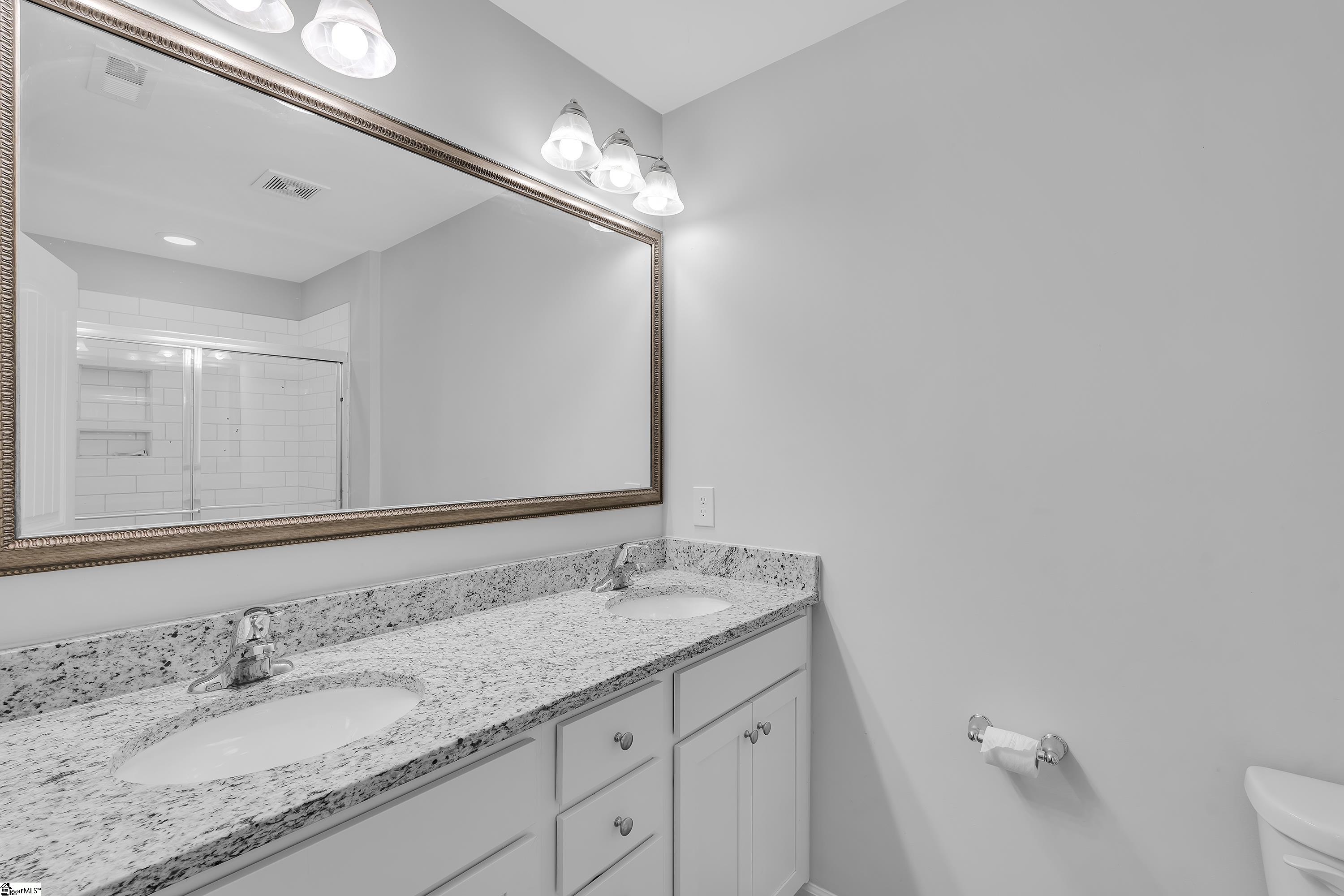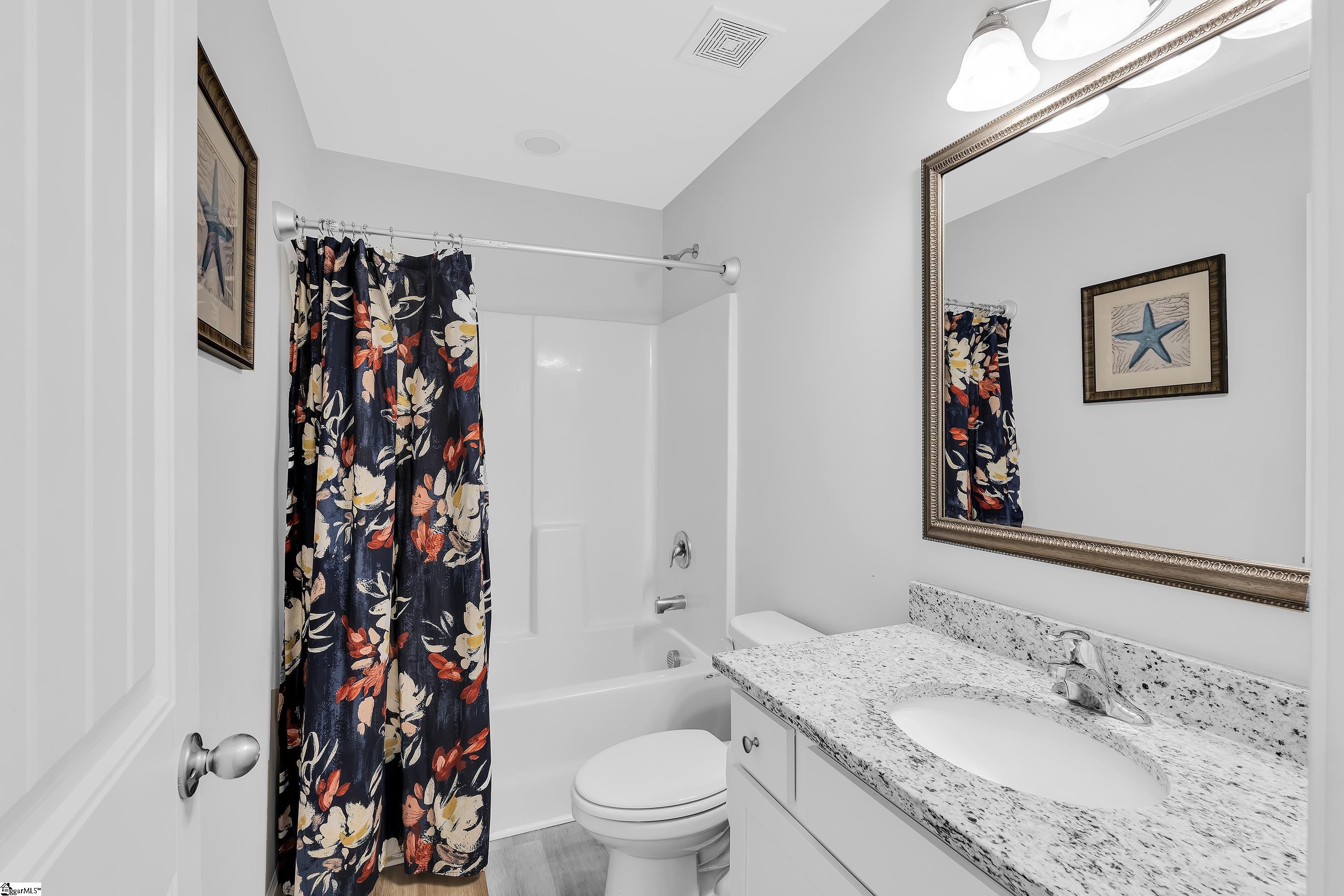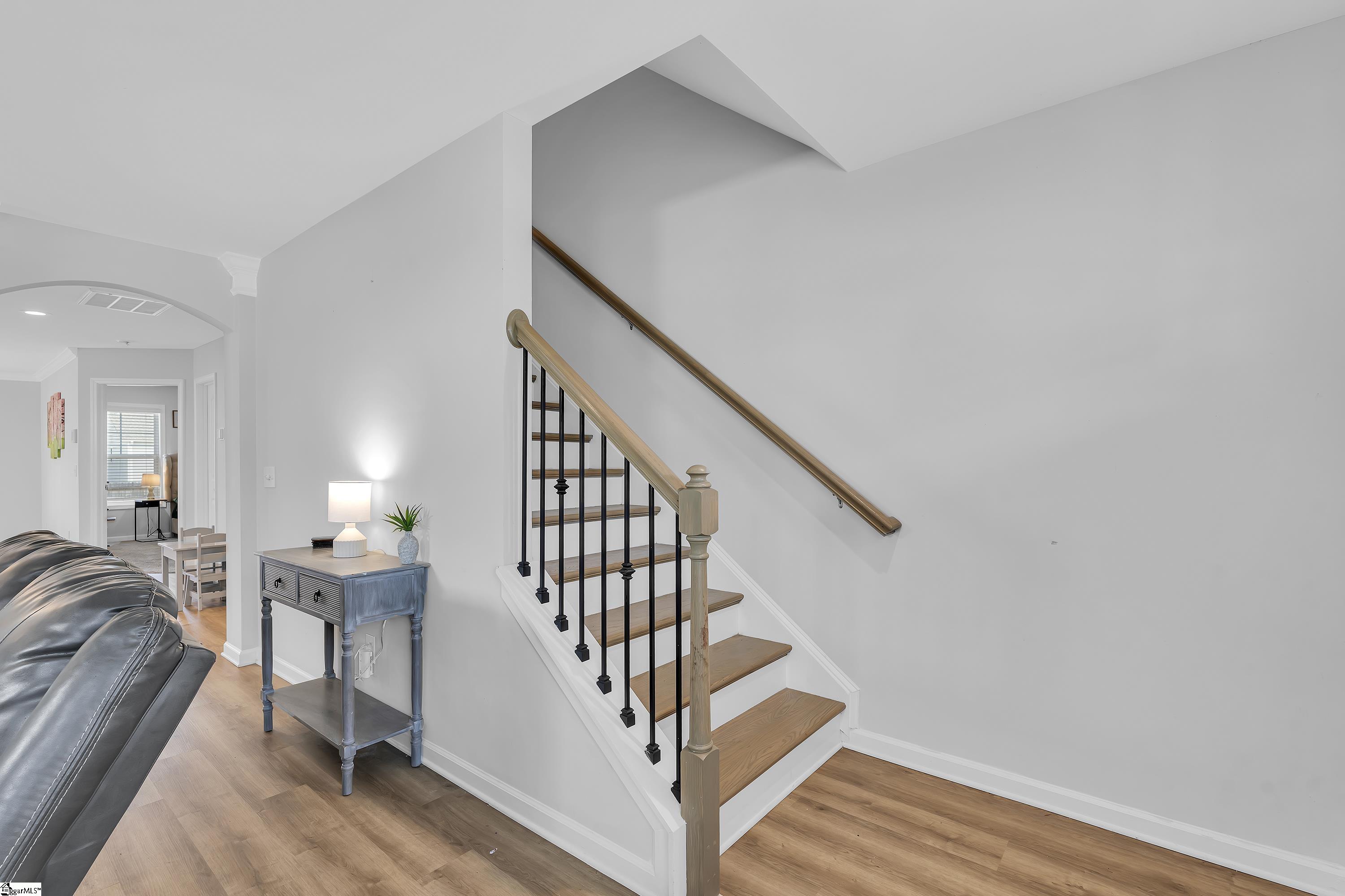 Come tour this Beautiful Craftsman Home nestled in the most private section of "Winterbrook" located in Fountain Inn SC. Only two years old and built by “Great Southern Homes”, the “Buckley” plan features a Primary bedroom on the Main level with two large walk-in closets and the en-suite Primary bathroom has dual sinks plus an xtra wide tiled shower. Luxury vinyl flooring is throughout the main level which includes the large living room with a gas log fireplace, a spacious dining room, a beautifully appointed kitchen with an island, stainless steel appliances, granite countertops, pendant and recessed lighting, staggered cabinets plus a half bath for guests! There’s also a walk-in laundry room and a handy staging area with a bench just off the two car garage. On the second level, there are two spacious bedrooms with a full bathroom between. Each of these 2 bedrooms feature walk-in closets plus there is another finished walk in storage room off the hall for all the extras! Both the front porch and the back patio are covered plus a stained privacy fence was added around the backyard. Some special features from this GreenSmart builder are; a Natural Gas Tankless hot water heater, Radiant Barrier roof sheathing and full yard sprinkler system. Possible USDA eligible and assigned to the new Fountain Inn High School. Ask your Real Estate agent to schedule your tour today!