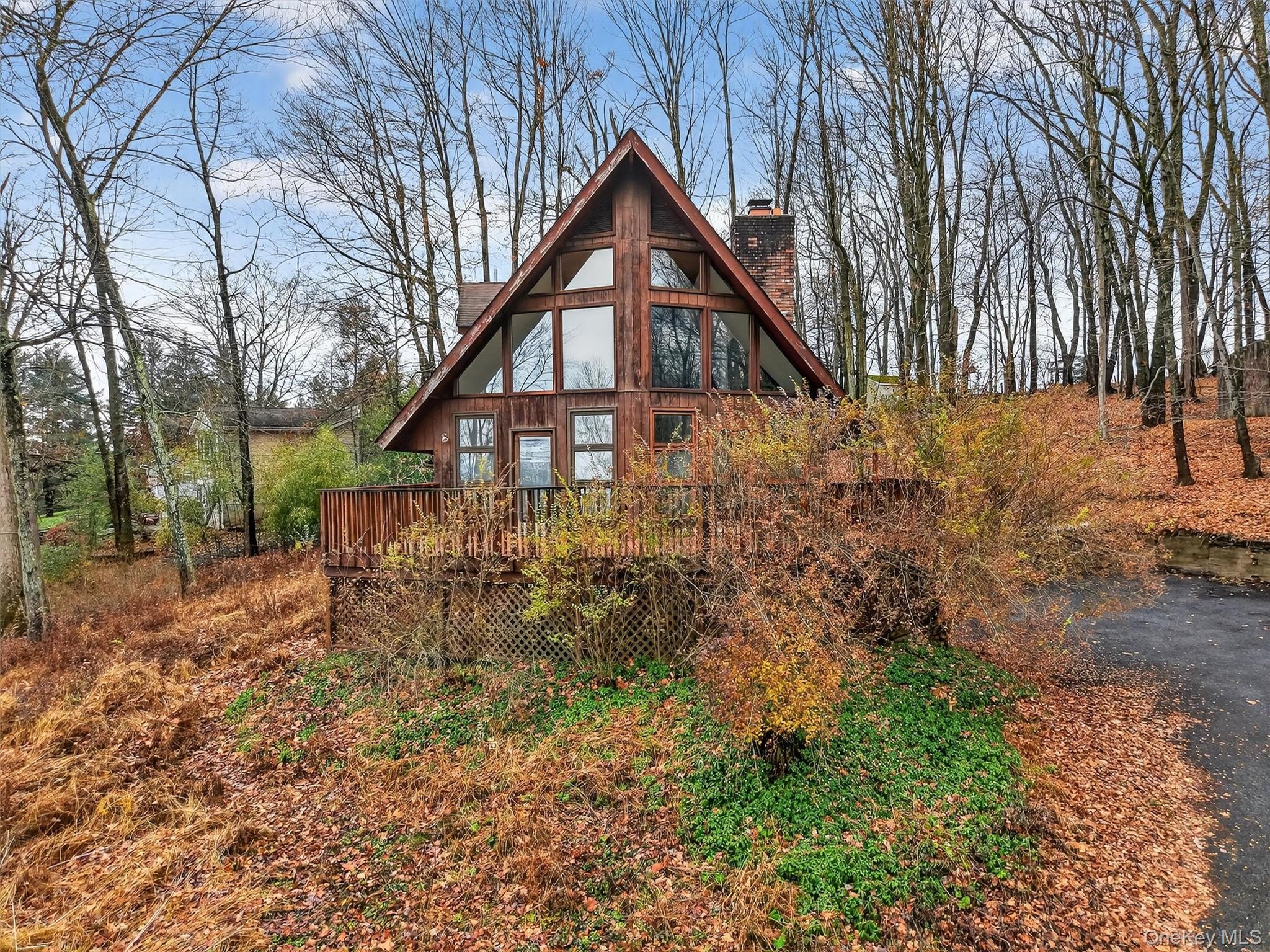 In a town full of familiar silhouettes, this A-frame is something entirely different. Set on 1. 2 elevated acres, it stands proudly above the landscape—bold, striking, and impossible to confuse with anything else on the market. This is a property for someone who wants character, presence, and a home that refuses to blend in. From the moment you arrive, the architecture pulls you in: soaring lines, dramatic angles, and a volume of natural light you simply don’t find in traditional layouts. Sunrise pours directly into the living room and onto the deck, creating a daily moment that feels more like a ritual than routine. Inside, the heart of the home is the stunning three-sided fireplace anchoring the main living space—an eye-catching design element that warms the room in more ways than one. Two bedrooms and a beautifully renovated full bath sit on the main level, while the upper floor delivers a loft-style mezzanine space that feels like your private creative zone. It’s flexible enough to be an office, den, studio, meditation area… whatever the next chapter of your life demands. The primary suite sits just beyond, complete with another renovated full bath. Downstairs, the fully finished lower level adds even more usable space, plus a separate laundry room and an attached one-car garage. The land surrounding the home is peaceful and private, with plenty of room to wander, gather, or simply breathe. And then there’s the location—one of the biggest aces up this home’s sleeve. Tucked on a quiet street but minutes from everything, you’ll have seamless access to Route 9, shopping, restaurants, grocery stores, parks, hiking trails, Hudson Valley entertainment, and Metro-North stations for easy commuting. It’s the perfect blend of tucked-away tranquility and real-world convenience. 74 Brandy Lane isn’t for someone who wants ordinary. It’s for someone who wants their home to feel like an experience—distinctive, uplifting, and unapologetically different. If you’ve been searching for a property that stands out in all the right ways, this is your moment.
