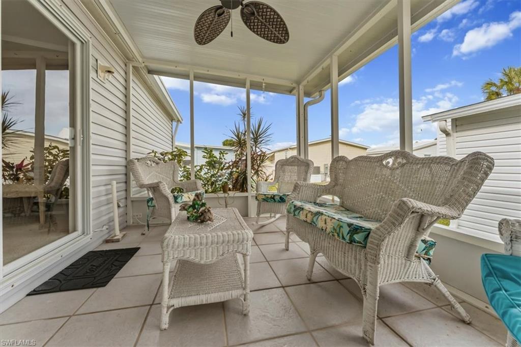Discover resort-style 55+ living in the vibrant, pet-free co-op community of Enchanting Shores, nestled along Henderson Creek in Naples, FL—just minutes from Marco Island’s pristine beaches and the upscale allure of downtown Naples. This beautifully maintained 2003 modular home, boasting a brand-new 2025 roof, spans 1, 269 sq ft across 2 bedrooms and 2 baths, with bright, open living spaces, a spacious kitchen, and seamless indoor-outdoor flow—perfect for entertaining friends or savoring quiet sunsets. Embrace the low quarterly HOA fees, covering water, sewer, trash removal, lawn care, and full access to resort-level amenities: direct Gulf of Mexico access via a private boat ramp, fishing pier, and kayak launch; on-site boat and trailer storage; newly renovated heated pool; and courts for pickleball, tennis, shuffleboard, bocce, horseshoes, and basketball. Dive into a lively social scene at the community clubhouse, where weekly fitness classes, line dancing, billiards, poker, arts & crafts, and bingo keep things buzzing. Your included spacious shed/workshop adds practical storage for hobbies or gear, and many homes here offer optional private docks for effortless waterway adventures to spots like Keewaydin Island. Conveniently located at the edge of the protected Rookery Bay Reserve, you’re steps from nature trails and bike paths. Fully furnished and move-in ready—don’t miss this slice of paradise!