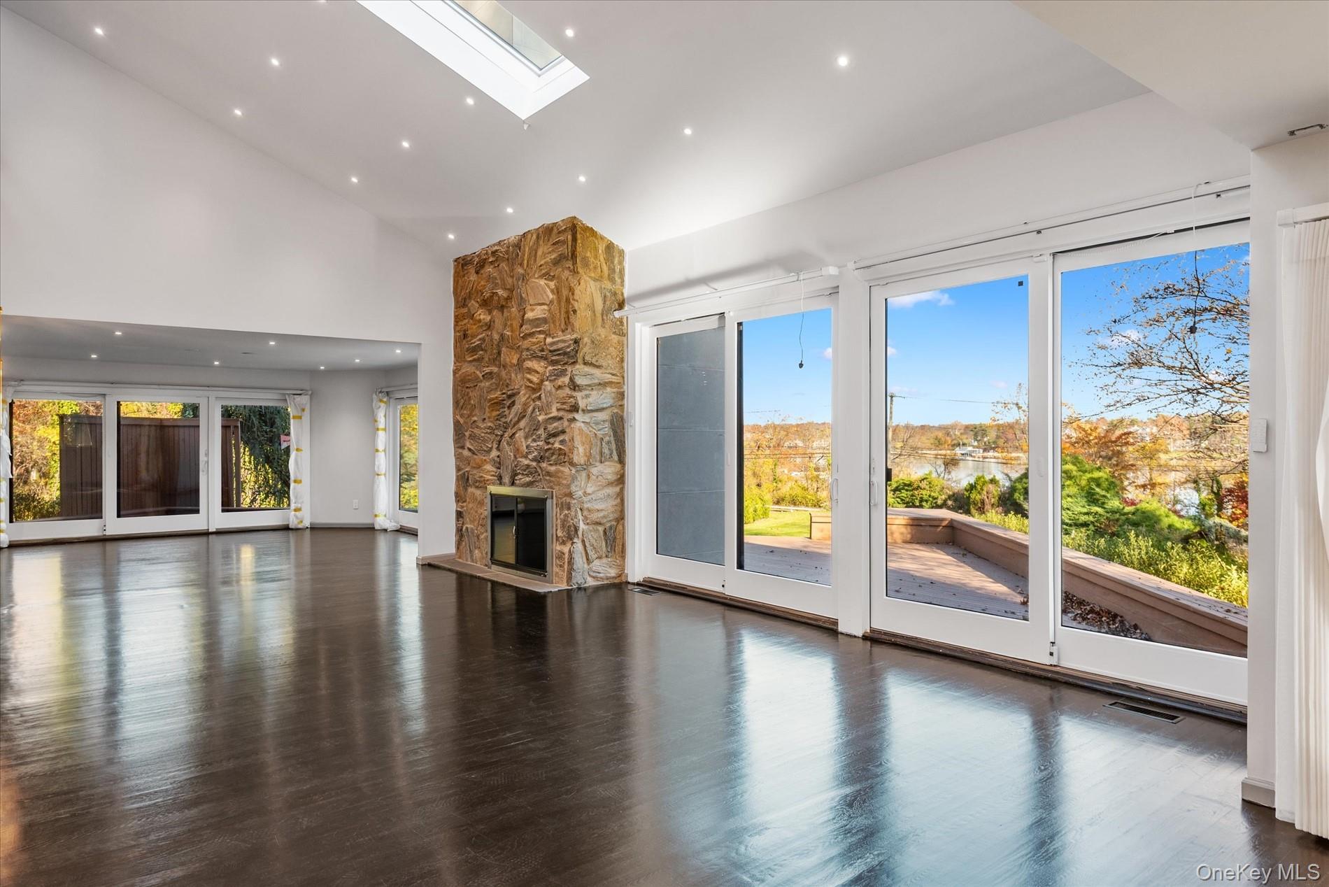 A long private driveway leads to this custom, fully renovated contemporary residence, perfectly nestled on a picturesque acre in the heart of Kings Point. Designed to maximize natural light and embrace its tranquil surroundings, the home showcases dramatic walls of glass that capture breathtaking sunrises and panoramic views of Manhasset Bay. The inviting entry foyer opens to a series of expansive, open-concept living spaces that flow effortlessly from one to the next, creating an ideal setting for both intimate gatherings and large-scale entertaining. The brand-new modern eat-in kitchen with German Leicht cabinetry and state of the art Gaggenau appliances serves as the true heart of the home—offering sleek finishes, generous workspace, and a welcoming atmosphere. A main-floor bedroom with a full bathroom provides comfort and flexibility for guests or multi-generational living. The second floor features a spacious primary suite complete with a luxurious ensuite bathroom and custom walk-in closets. Five additional bedrooms and four full bathrooms complete this level, ensuring ample space and privacy for all household members. The finished basement adds even more lifestyle options, featuring a recreation room, home theatre, and additional areas perfect for relaxation or hobbies. Set in a prime Kings Point location, the property offers both privacy and convenience—with close proximity to parks, transportation, and major highways. This exceptional contemporary home combines modern elegance, generous living spaces, and stunning water views—an extraordinary opportunity in one of the area’s most prestigious neighborhoods.