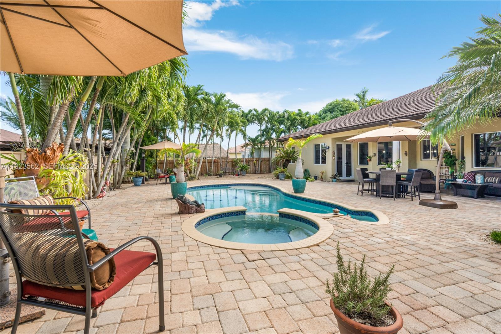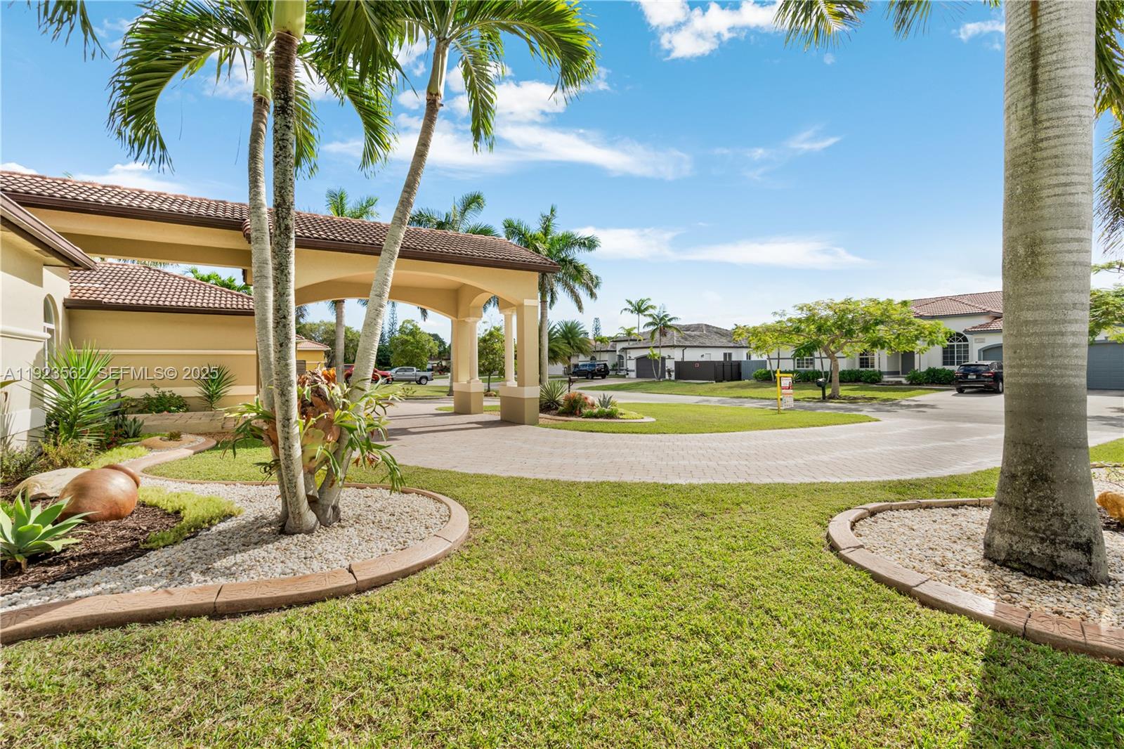 Beautiful home situated on a spacious 16, 025 s/f lot featuring a circular driveway, porte cochere, and a 2-car garage. This property offers 4 bedrooms and 3 bathrooms across 4, 579 total s/f, plus an additional 1/1 apartment. Upgrades include impact windows and doors, porcelain floors, and a kitchen equipped with granite countertops and wood cabinetry. The home also features 2 central A/C units and 4 mini-splits. Enjoy a heated saltwater pool with spa in a family-friendly neighborhood. No HOA.