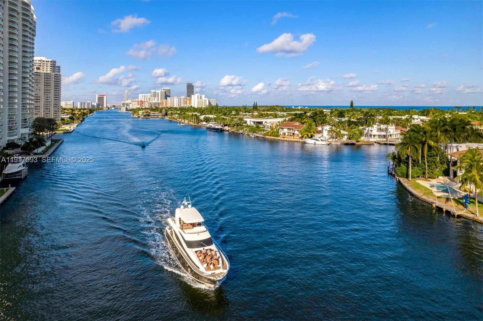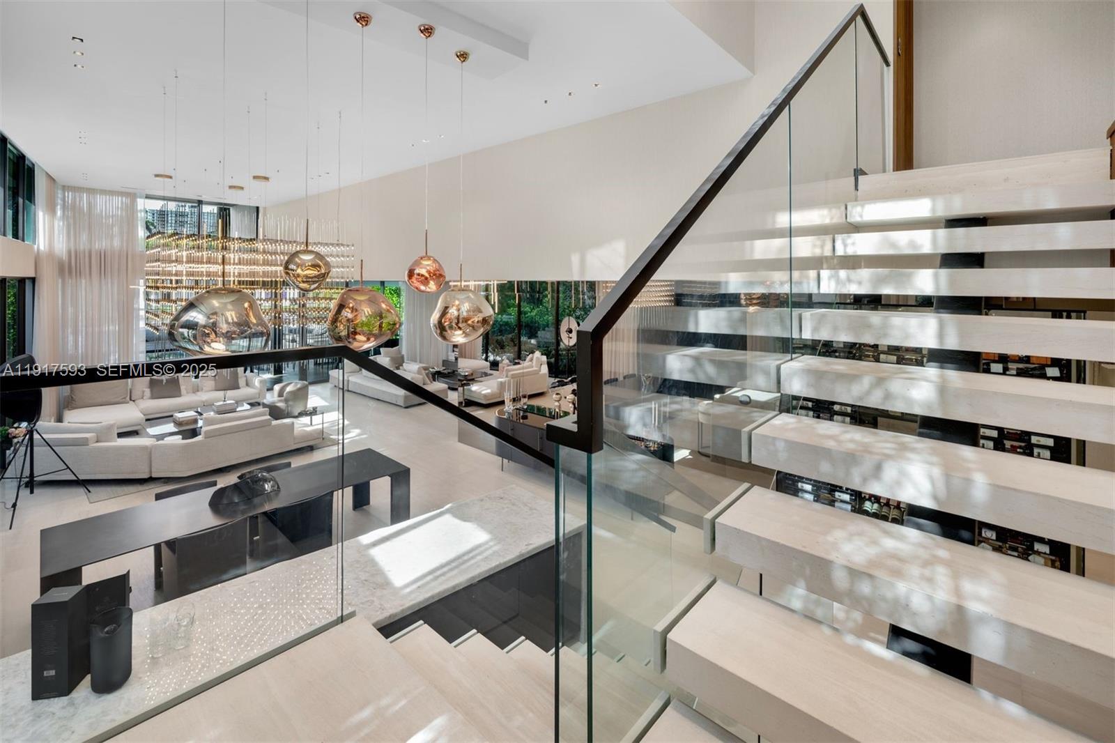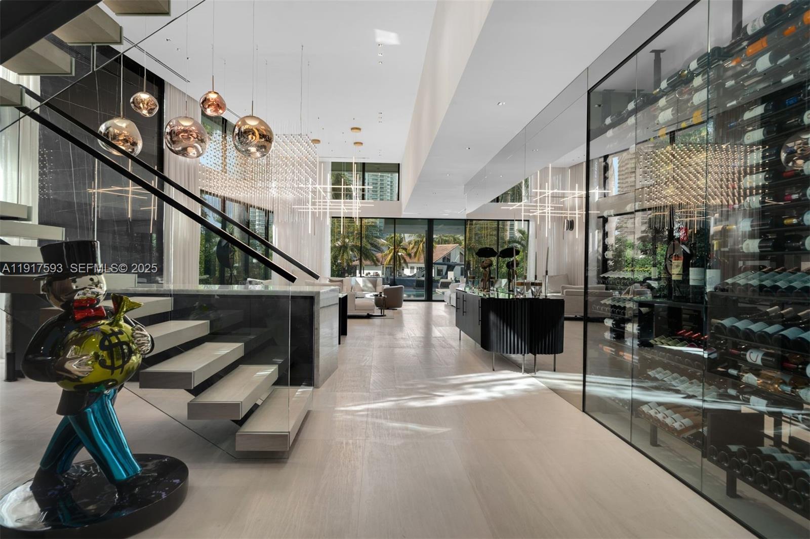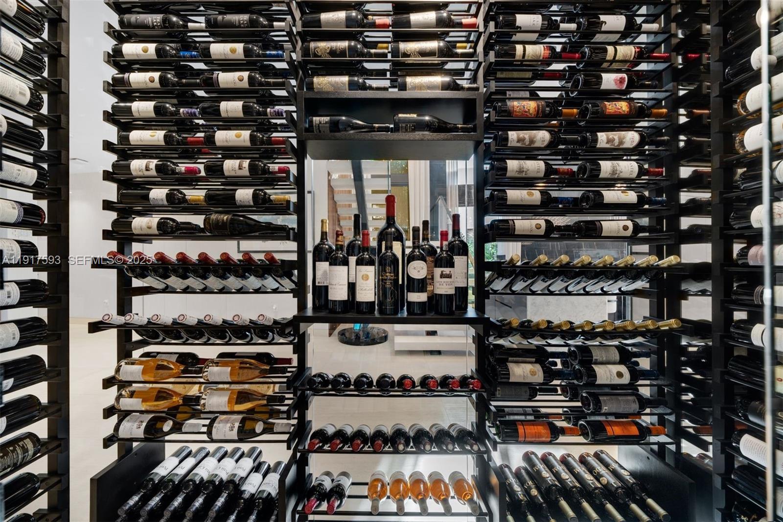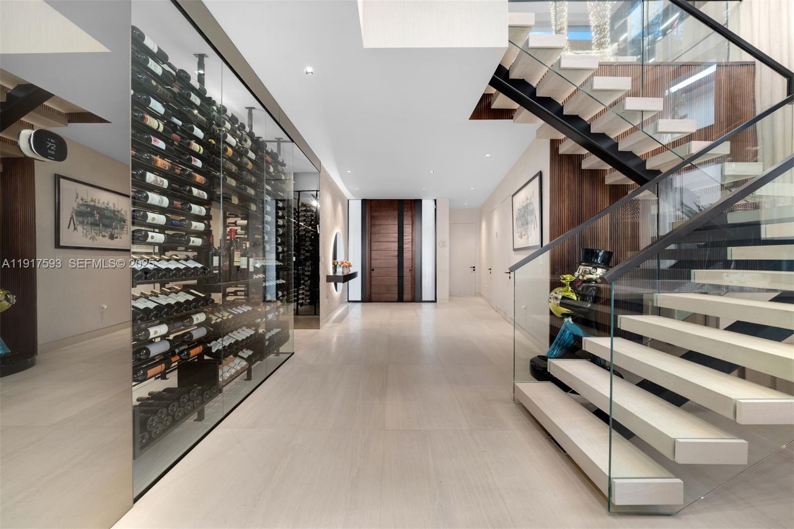 Completed in 2024, this newly built modern masterpiece in coveted Golden Beach offers exceptional craftsmanship, striking design, & a tranquil outdoor oasis created for waterfront living. Sitting on a 10, 476 SF lot, this 6, 773 total SF residence welcomes you with an oversized driveway & grand architectural entry framed by floating steps. Inside, features a Mia Cucina kitchen w/ Taj Mahal stone, limestone floors on the main level, warm wood upstairs, frameless doors, high end light fixtures, Cristallo stone bar, and Control 4 smart home system w/ Lutron lighting. The spacious primary suite showcases dual walk-in closets and large terrace capturing stunning sunsets. Elevator, pajama lounge & wine room complete the sophisticated interior. 45 feet of water frontage, private dock, Sub-Zero & Wolf summer kitchen, & outdoor shower create a true resort setting.