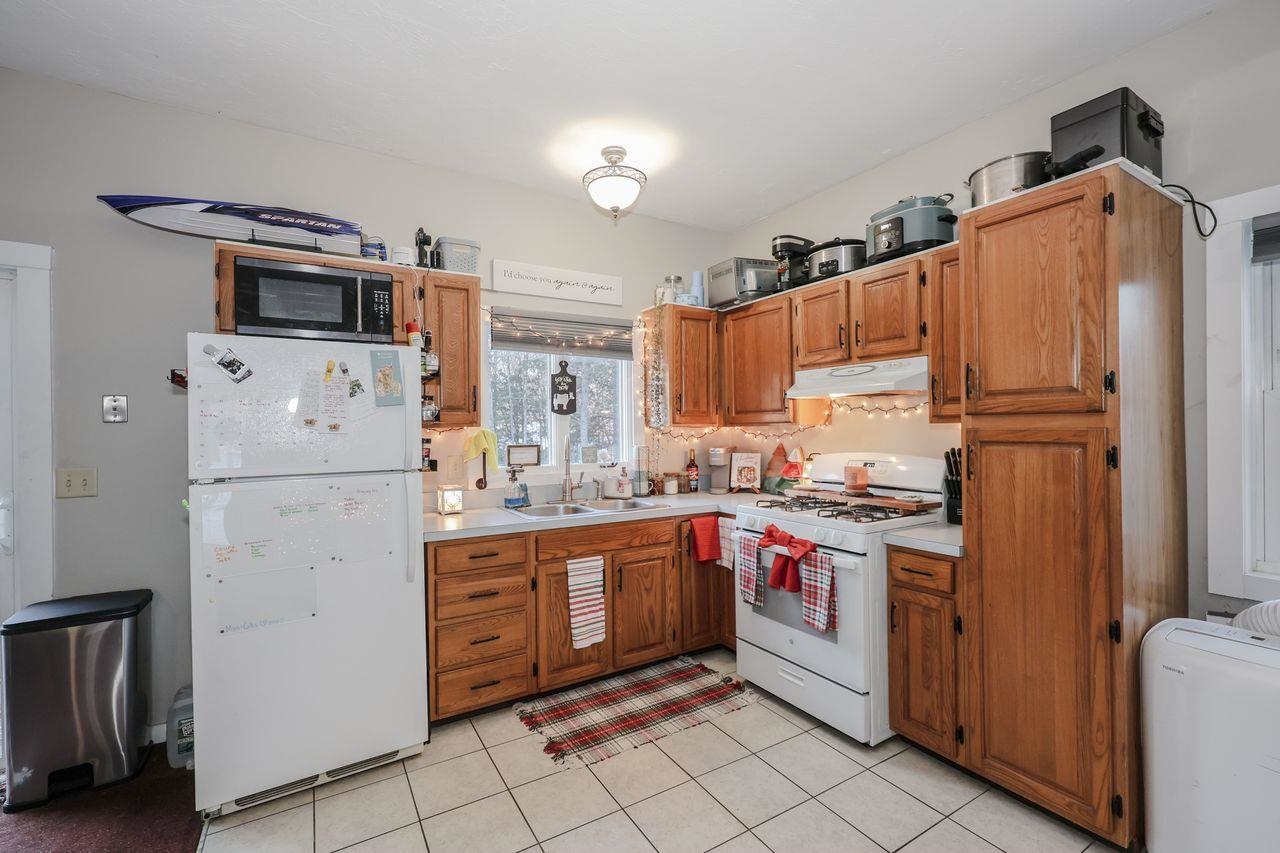 Stunning 3-bedroom, 3-bath Cape in Sanbornton, NH, ideally located just minutes from I-93! The main house welcomes you with a light-filled, spacious kitchen that opens to a large living area—perfect for everyday comfort and entertaining. A versatile bonus room and convenient first-floor laundry connected to a half bath offer excellent potential to convert into a full bath if desired. Upstairs, you’ll find two bedrooms, a full bathroom, and an additional flexible room ideal for guests, a home office, or creative space. The lower level you'll get to enjoy a versatile, partially finished basement that makes the perfect den or hangout area This property also includes an attached one-bedroom, one-bath in-law suite, providing flexibility for multi-generational living or a great income opportunity. Set on 2. 45 acres, the property offers privacy, space to enjoy the outdoors, and a detached garage equipped with a wood stove—an ideal setup for a workshop or hobby studio Please not all trim will be finished prior to closing! Homes like this rarely come to market. A must-see! Come join our open house this Saturday 10am-12pm.