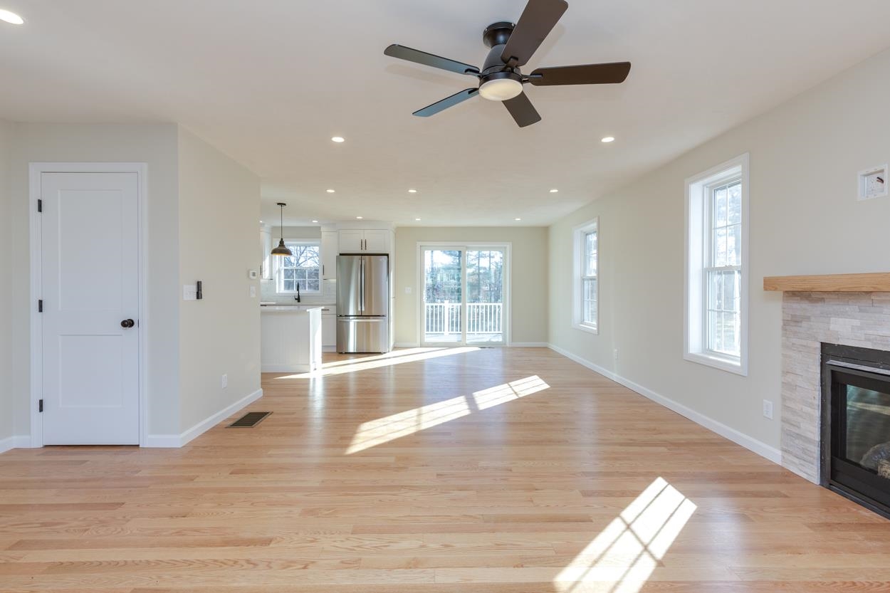 Don't miss your opportunity to own a beautiful, move-in ready home nestled on a large, sunny, level lot! This home is designed for modern living and effortless entertaining. The spacious open floor plan features gleaming hardwood floors throughout the first level, a bright and inviting living room with a gas fireplace, a well-appointed kitchen is perfect for both daily use and hosting, offering ample cabinetry, recessed lighting, stainless steel appliances, under cabinet lighting and a seamless flow into the living room. Upstairs, you’ll find four generous bedrooms and 2. 5 baths, including a primary suite with two large walk-in closets and a double vanity. Enjoy central air, abundant storage, and maintenance-free features like a front farmers porch and rear deck, all set against a peaceful backdrop. This home blends charm, functionality, and comfort—making it the perfect retreat to relax, entertain, and enjoy. Don’t miss this fantastic opportunity to own a brand-new home in a beautiful setting!