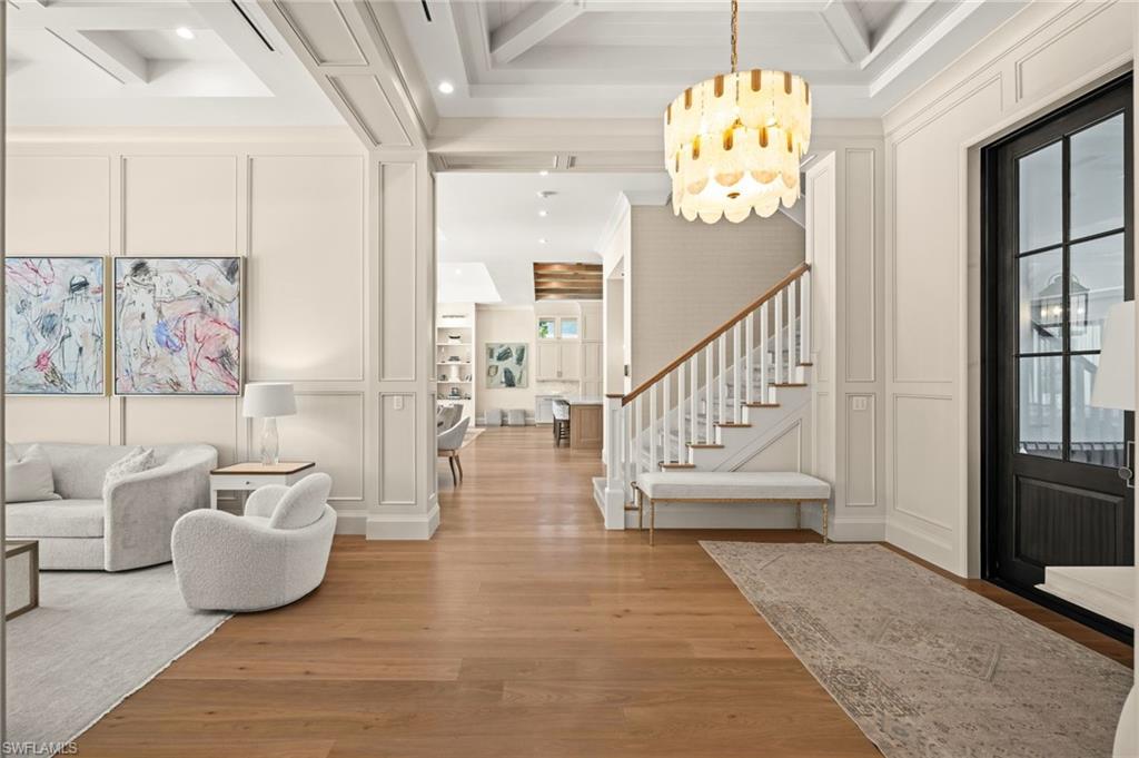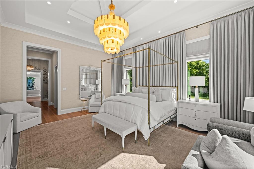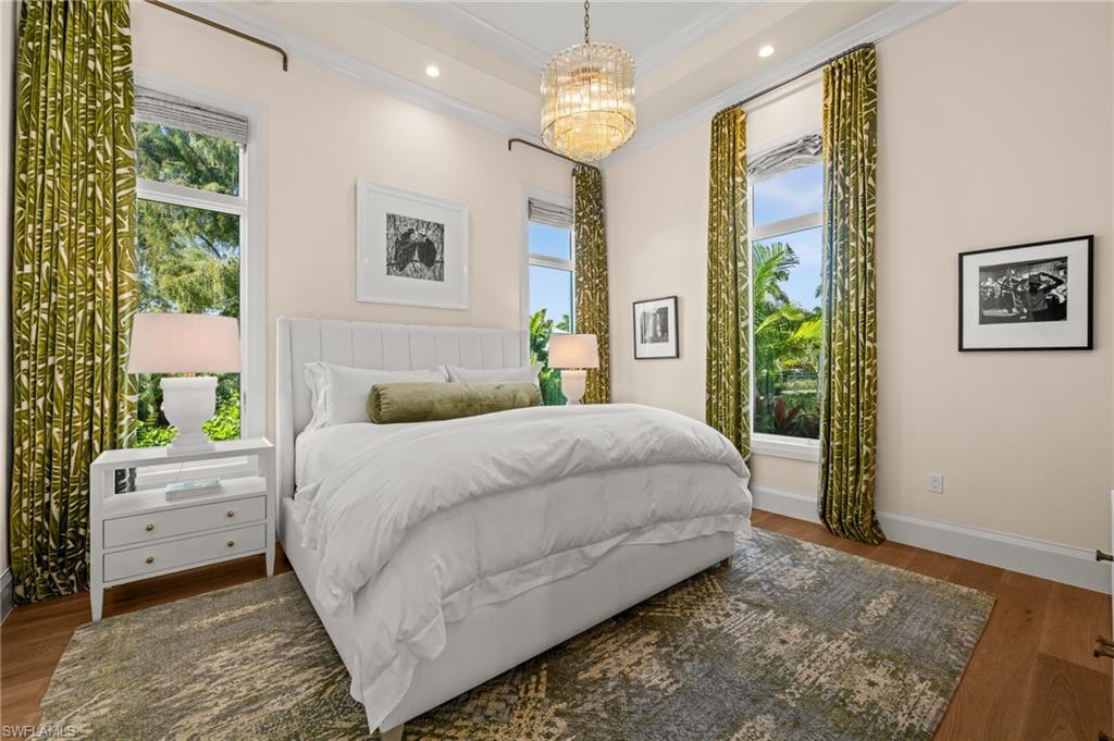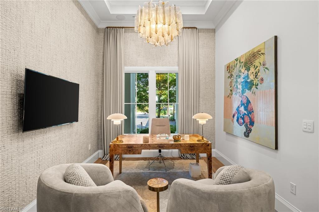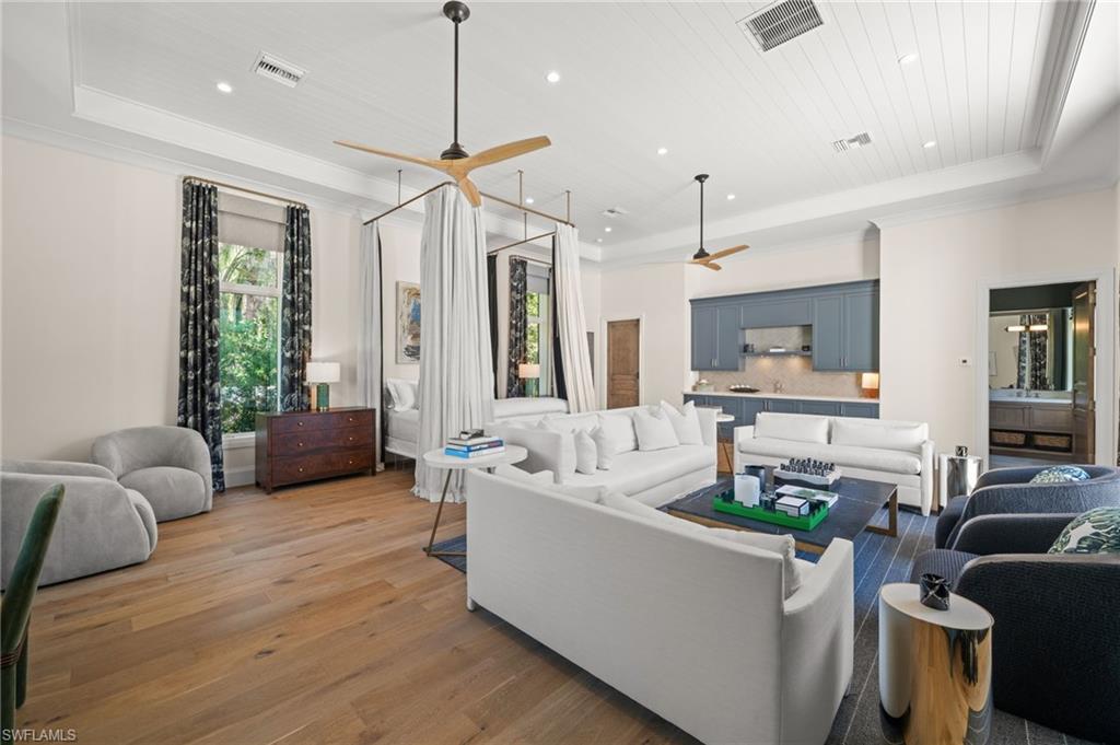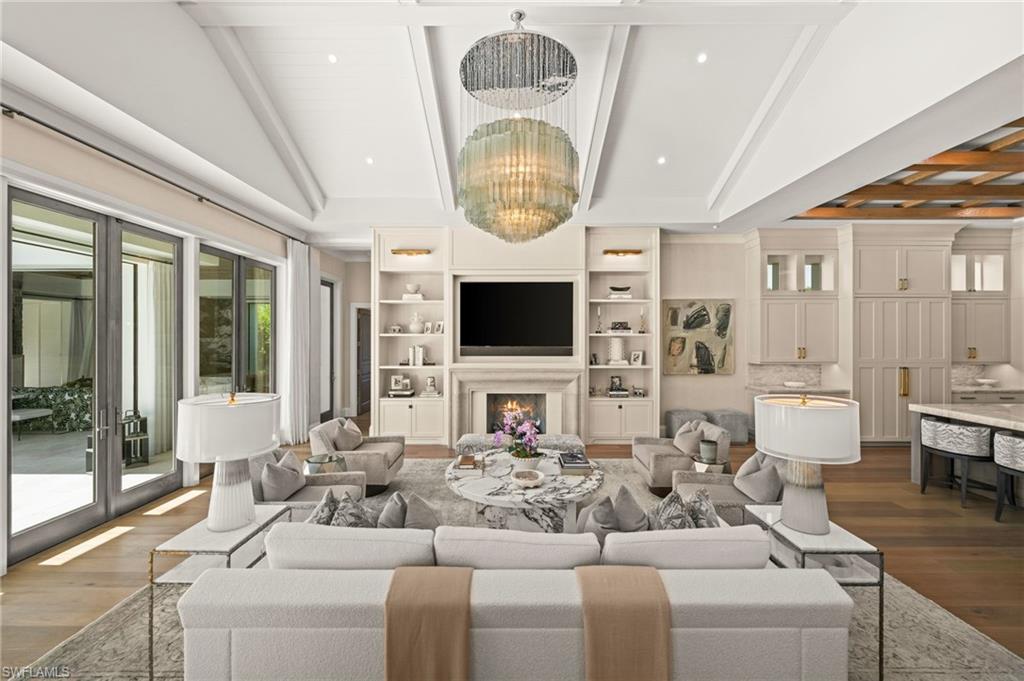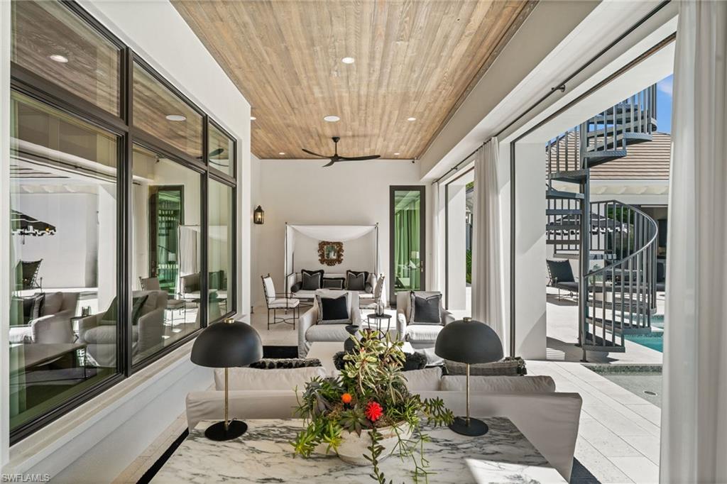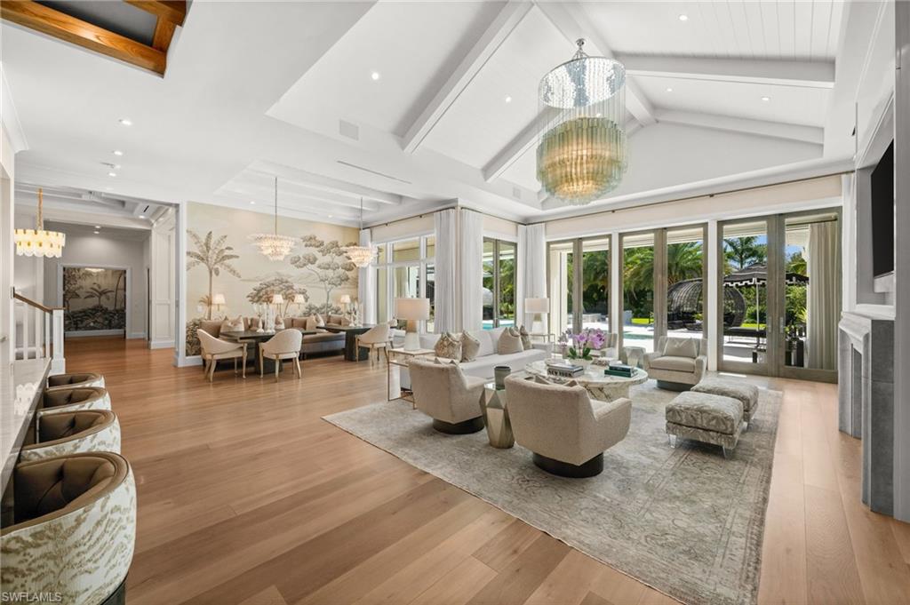 Sophisticated yet effortless, 142 Eugenia Drive will change the way you think about living. The home unfolds with couture wall coverings, rich textures, and curated lighting, each room shaped with its own quiet personality. Every surface, every finish, every detail reflects a thoughtful hand and an unmistakable sense of craftsmanship. At the heart of the home, the wine room becomes an unexpected moment of delight. Wrapped entirely in gold, it shimmers like a jewel box; a place that instantly shifts the energy of the home and reminds you that luxury can be playful, too. The stunning kitchen is warm and inviting, with an oversized Cristallo island, Sub-Zero refrigeration, Walzcraft cabinetry, and an advanced Wolf range. Indoor and outdoor living meet seamlessly here. A twisted-branch artisan sculpture ignites into a dramatic fire feature, casting a warm glow across the pool and patio. The outdoor living area creates a space to gather and features two distinct hand-selected onyx stones, including a fully illuminated onyx bar that transforms evenings into extraordinary experiences. Beyond it, a beautifully appointed one-bedroom, one-bath bungalow offers guests the luxury of privacy and comfort. Though the home feels sculptural and serene, it hums with hidden intelligence. Powered by Control4, lighting, climate, music, and water are orchestrated with quiet precision, letting the moment, not the technology, take center stage. Refined yet welcoming, every aspect of this home is intentional, balancing beauty and comfort. 142 Eugenia Drive is where timeless architecture meets livable luxury.