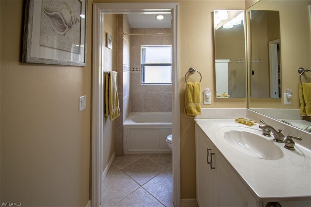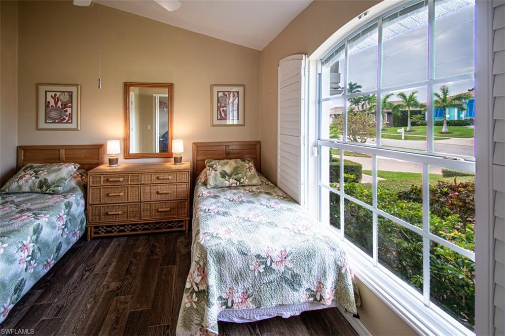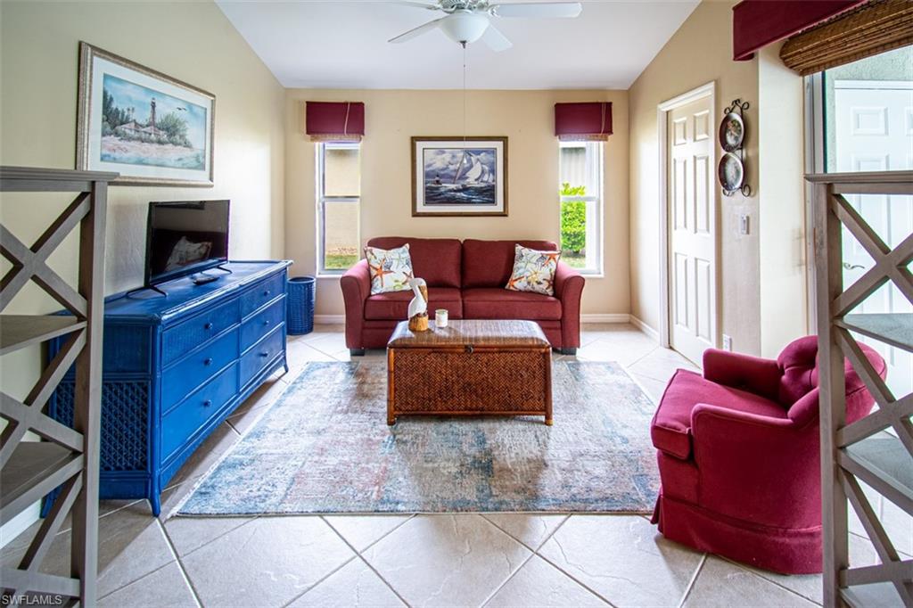 Welcome to this spacious and beautifully maintained 3-bedroom, 3-bath home with a versatile den that doubles as a fourth bedroom, featuring a sofa bed and its own private full bath. This bright 2, 037 sq. ft. home is ideal for guests or multi-generational living. Thoughtfully designed with vaulted ceilings and abundant natural light, enjoy indoor–outdoor living with multiple sliders leading to a lush tropical patio, complete with a large waterfall pool and an oversized, private lanai perfect for relaxing or entertaining.