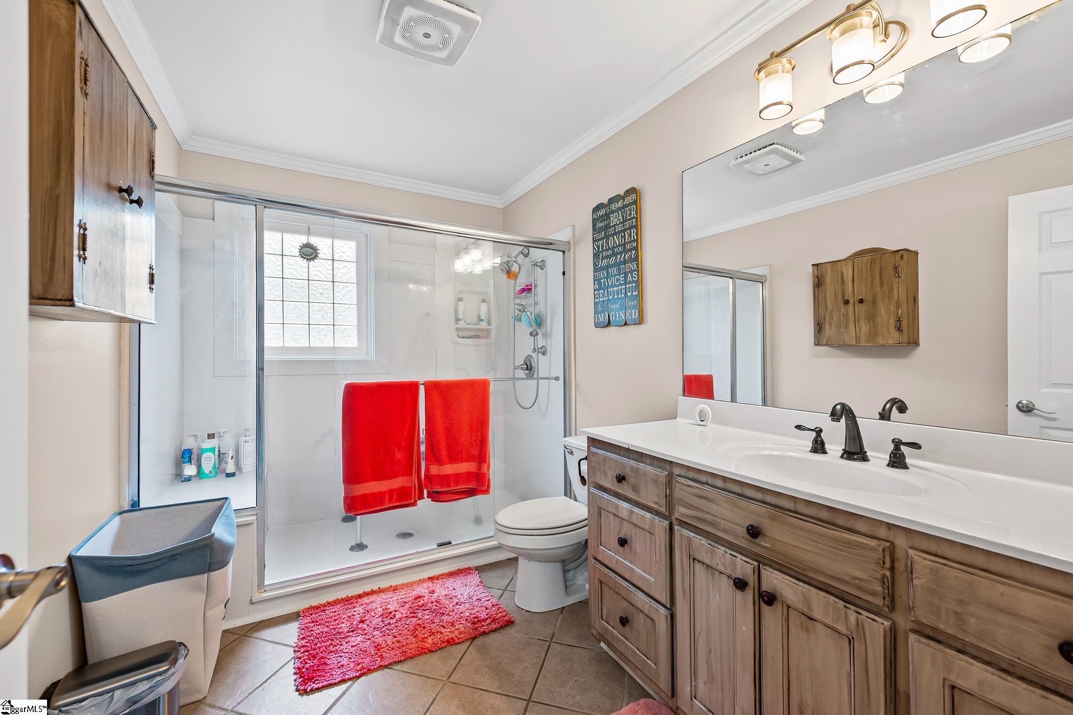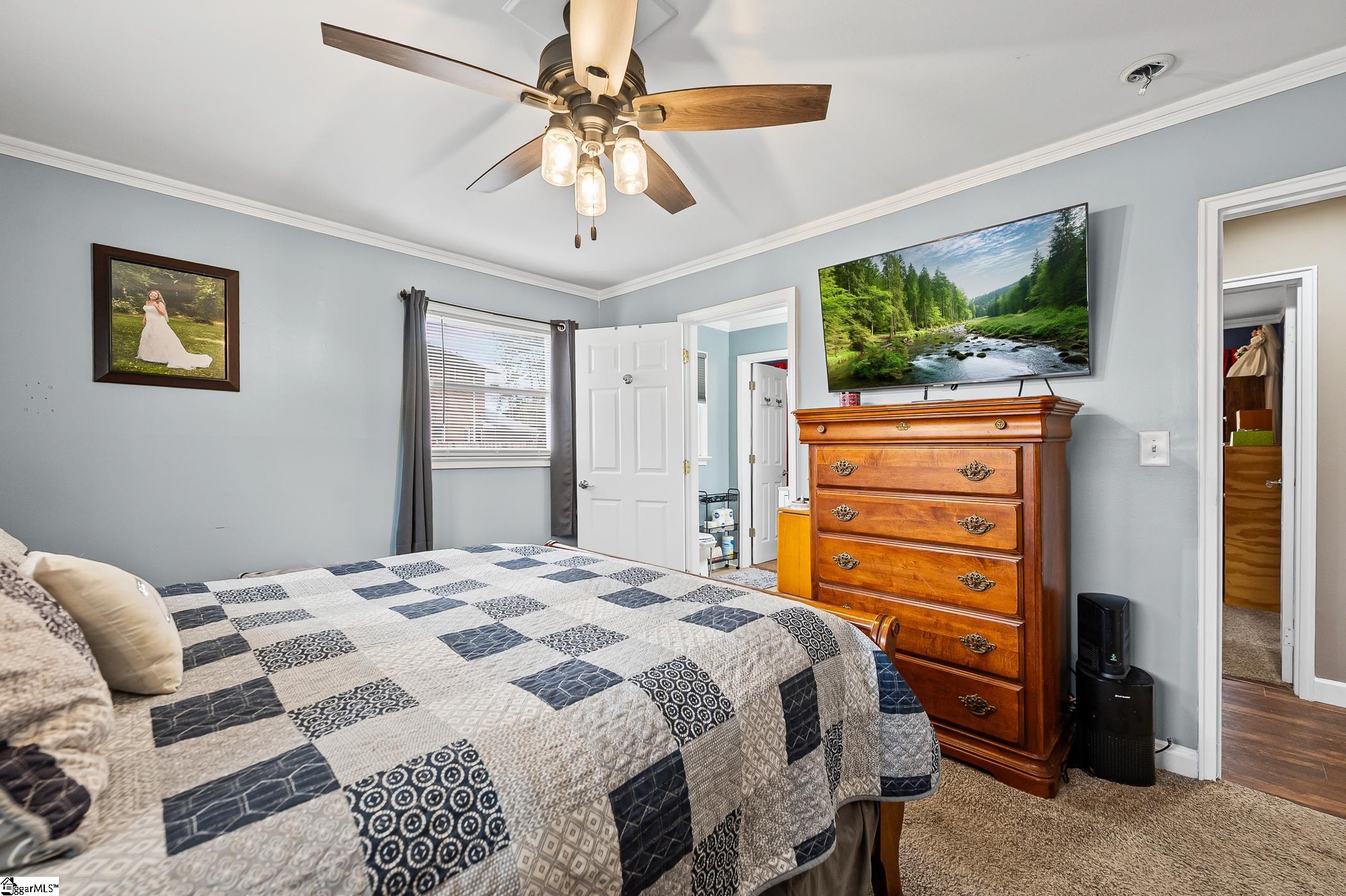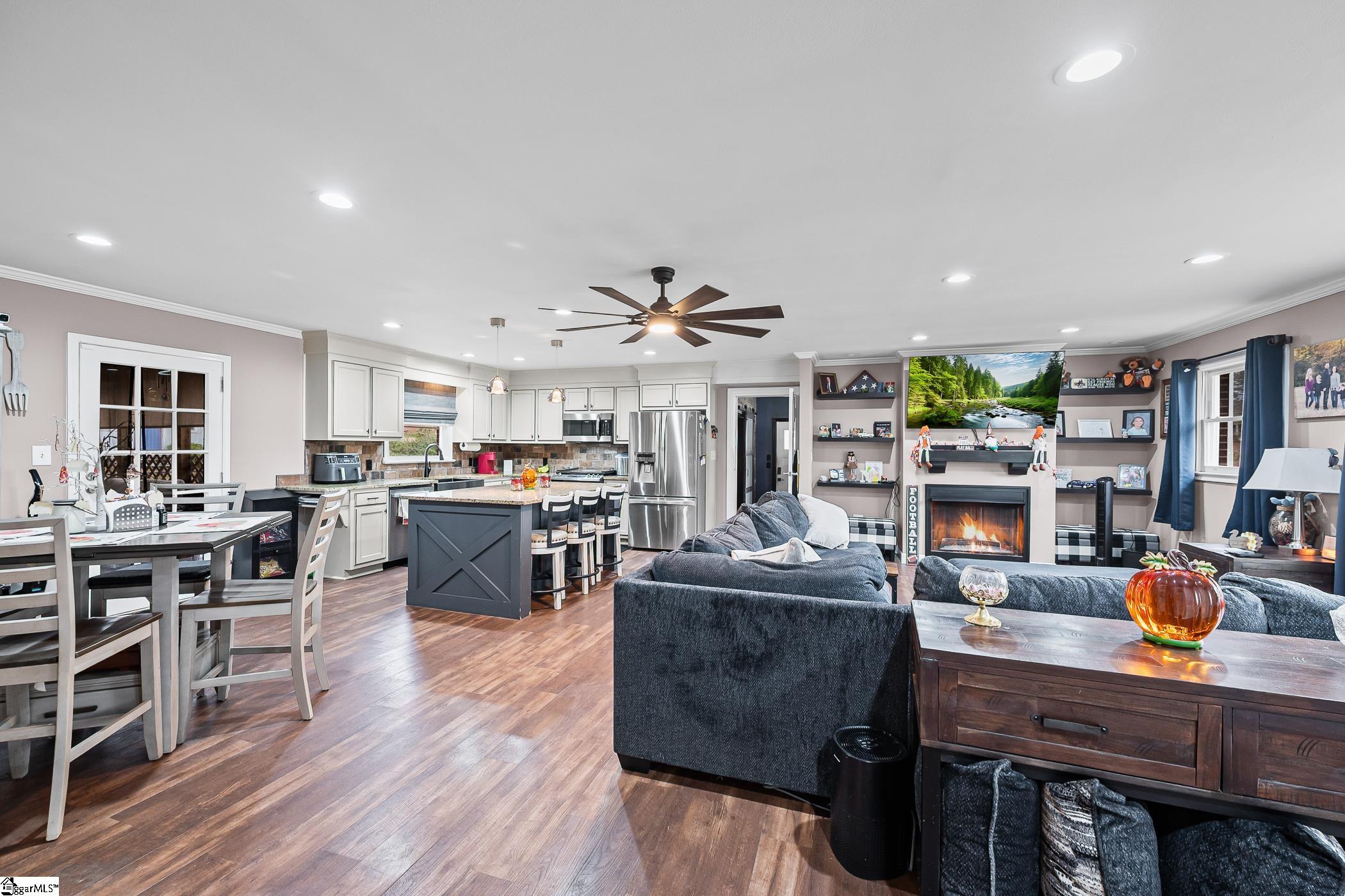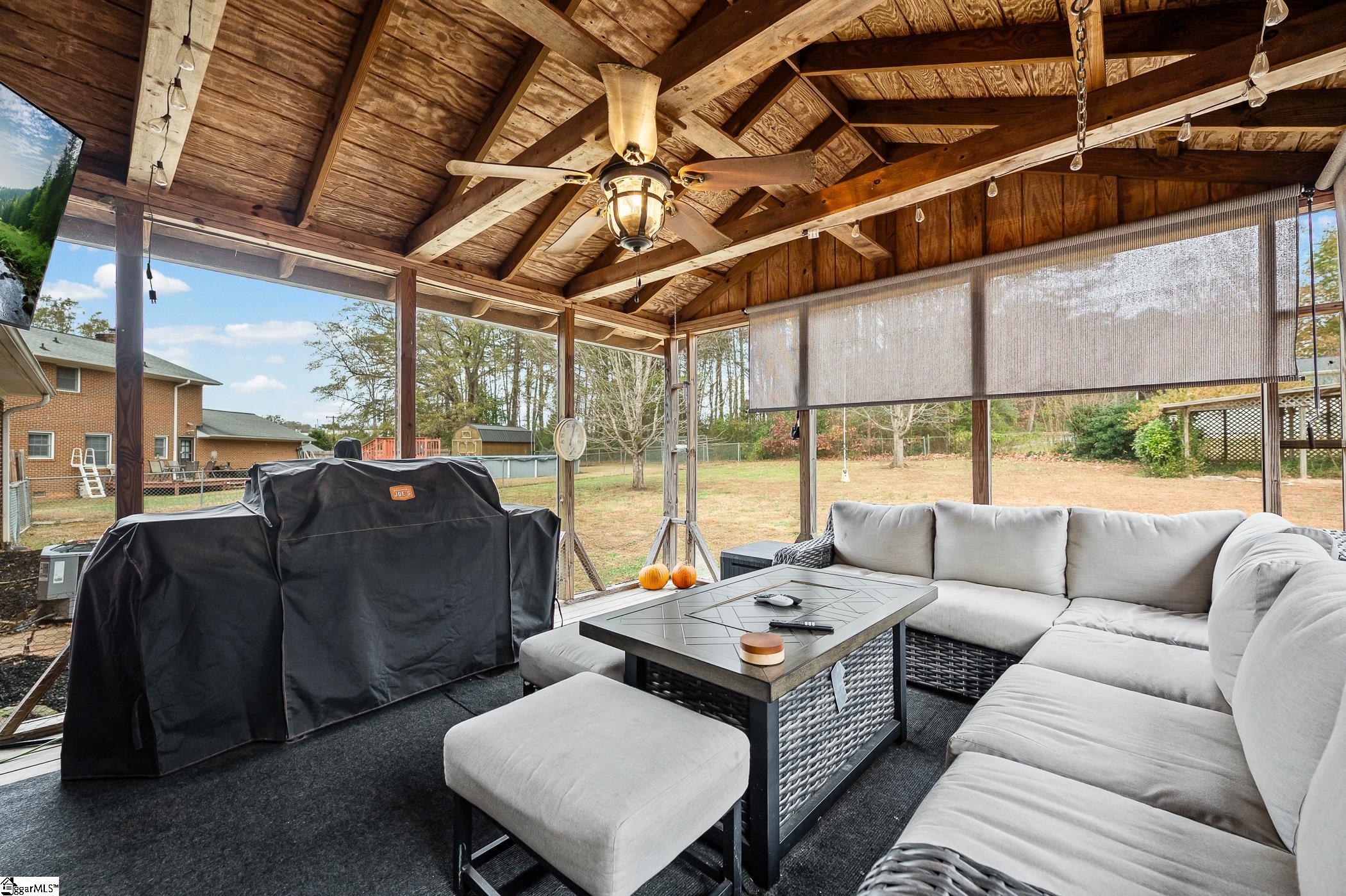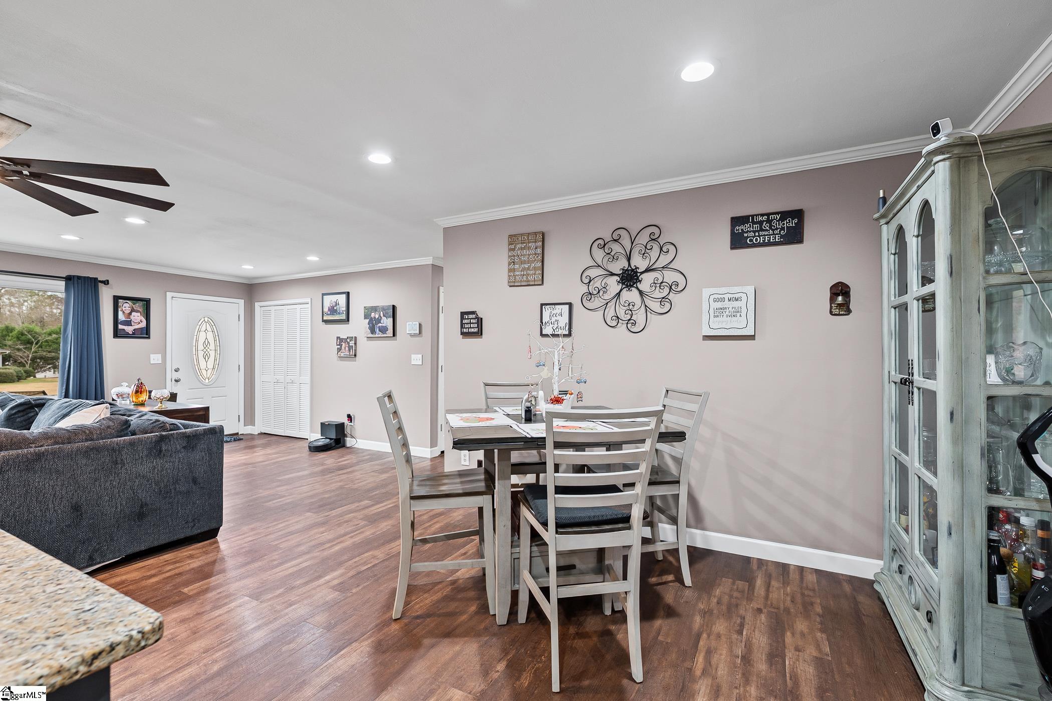 Space, style, and an unbeatable location—this beautifully updated Forest Acres home checks every box! Welcome home to this meticulously maintained 4-bedroom, 2-bath all-brick beauty, perfectly situated on a generous ½-acre lot just minutes from Easley’s shopping, dining, and entertainment, with easy access to Highway 123 and Powdersville Road. From the moment you arrive, you’ll be charmed by the freshly landscaped front beds, featuring soft-touch hollies and colorful seasonal blooms, setting the tone for what awaits inside. Step through the door and bask in the natural light streaming through the triple front windows, reflecting off the sparkling laminate floors and highlighting the custom built-ins and warm masonry fireplace in the inviting living room. The bright, open white kitchen is both functional and stylish, offering crisp cabinetry, a contrasting island, stainless gas range, and plenty of prep space—perfectly positioned beside the spacious dining area for effortless entertaining. Both bathrooms have been thoughtfully remodeled with tile floors, counter-height vanities, and updated fixtures. The hall bath steals the show with its oversized Roman-style shower with seating, creating a spa-like experience at home. All four bedrooms are generously sized, and a versatile flex room (or optional 5th bedroom)—with its own private entrance from the carport—makes an ideal home office, gym, playroom, or guest space. Outdoor living truly shines here. Enjoy quiet mornings or evening gatherings on the screened porch or spread out across the two-tiered deck overlooking your fully fenced backyard. Two storage buildings with electricity—including a 28’ x 14’ outbuilding—offer endless possibilities for hobbies, workshop space, or additional storage. Mature oak trees add charm and tranquility to the outdoor setting. With brick construction, vinyl trim, tilt-out windows, and updated interiors, this home offers both durability and modern comfort—plus a location that makes daily life effortless. Homes like this don’t come around often. Schedule your private showing today and see why this Forest Acres gem deserves your attention!