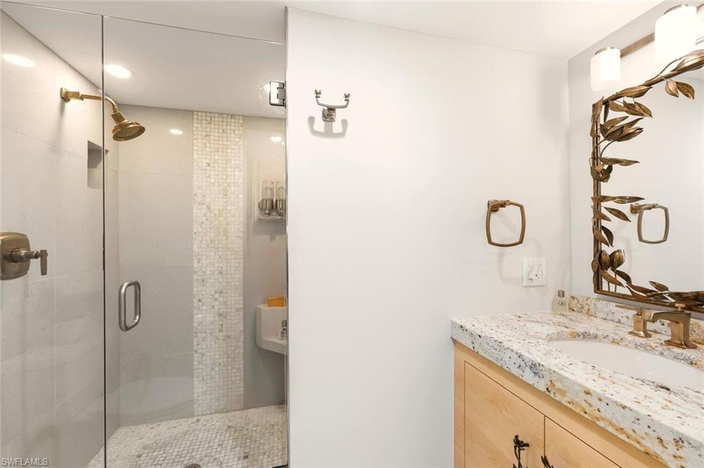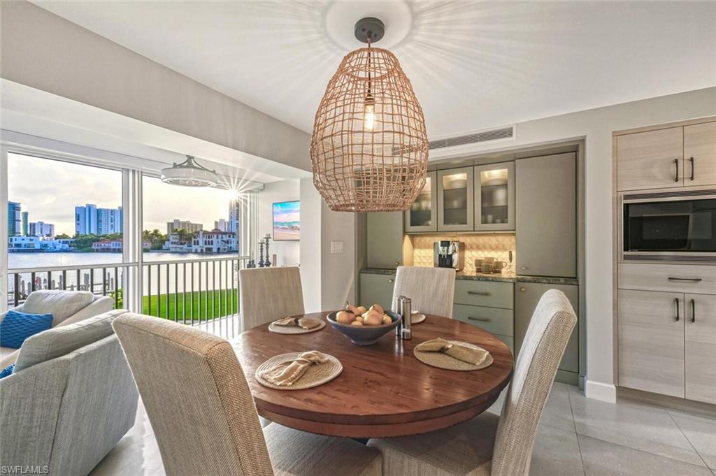 Enjoy stunning Venetian Bay views from this beautifully updated Park Shore condo. Located directly next door to the charming Venetian Village shops and dining, this residence offers unmatched walkability and waterfront living. Upgrades include new electric shades, whole-home filtered water, tankless water heater, plantation shutters, recessed lighting, custom cabinetry, and impact windows/sliders. The kitchen features Wolf and Sub Zero appliances and refrigerator drawers. The open layout offers 3 bedrooms and 3 full baths, with one bedroom easily serving as a home office thanks to a custom Murphy bed and zero-corner doors. Additional highlights include in-unit laundry, a covered carport space, a deeded boat slip with quick Gulf access, and the option to join the Park Shore private Beach Park just down the street. A refined coastal residence with thoughtful upgrades and effortless bayfront living.