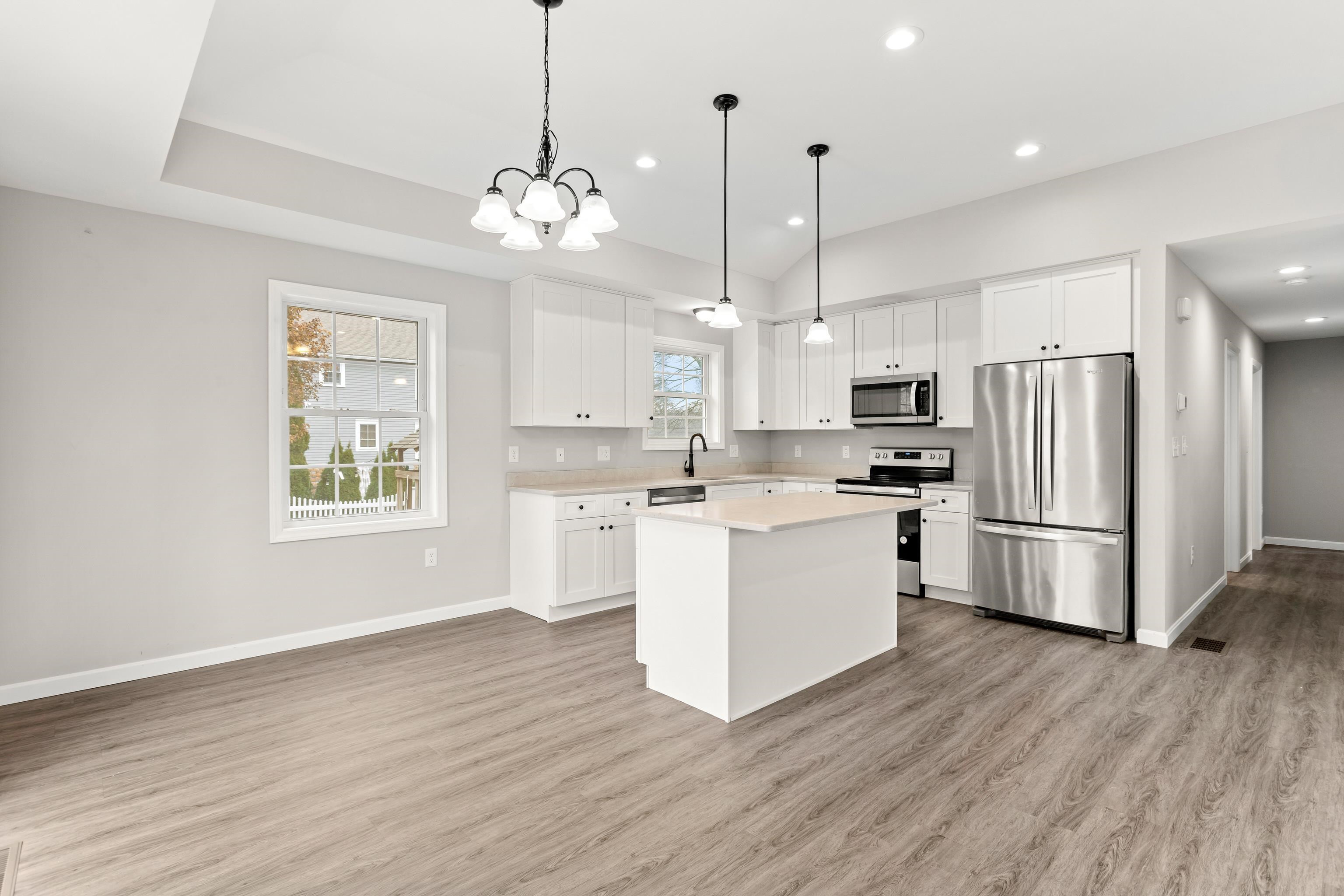 This move in ready North End home was built in 2023 and still feels new. Inside, the split entry layout opens to a living area with tray ceilings that add a clean, finished look. The kitchen is both practical and inviting, with shaker cabinetry, granite counters, stainless steel appliances, and an island that works well for cooking, gathering, or spreading out a project. A slider off the main living space leads to the deck and a private backyard that is simple to enjoy. The lower level offers a wide open area that can be shaped to fit your needs, whether you imagine a place to work, exercise, or create a comfortable extension of your living space. The location keeps day to day errands easy, with schools, shopping, restaurants, parks, and highway access all close by. It is a newer home in a convenient part of the city, ready for its next chapter. Showings begin at the open houses, Saturday, December 6th, and Sunday, December 7th, from 11 am - 1 pm.