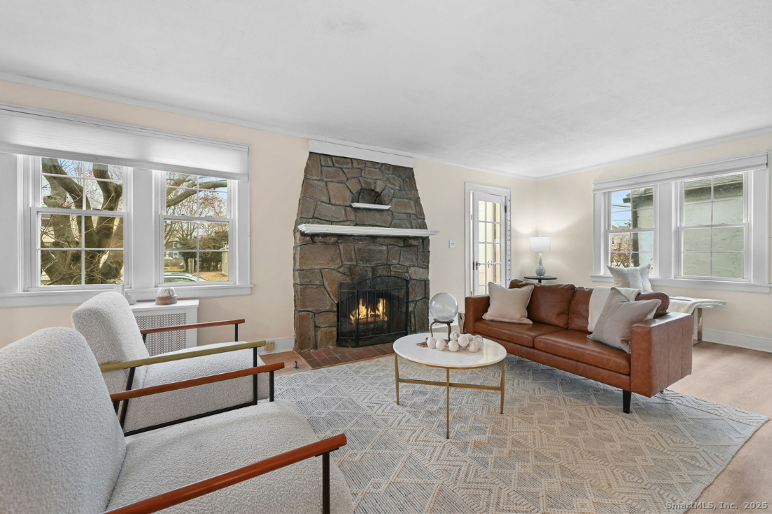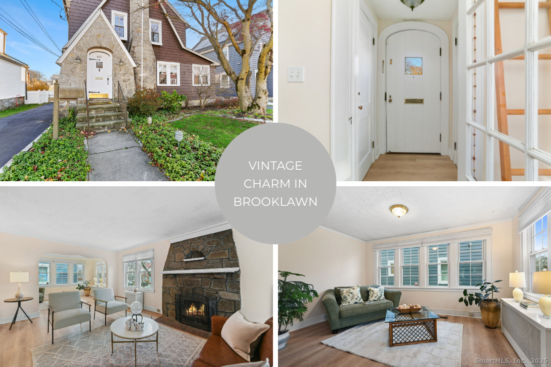 Surprise! A MAIN LEVEL PRIMARY suite-or versatile studio-steals the show in this charming Tudor-style stone and shingle home. Located in the desirable Brooklawn neighborhood, this beauty exudes curb appeal. The home offers character-rich details, modern updates, restored baths, and an easy, open flow throughout. The first-floor suite features soaring ceilings and generous natural light, ideal for an in-law setup, private office, or artist's workspace. Also found on the main level are formal living and dining rooms, a bright sunroom/office, a powder room, and a spacious kitchen that opens to the rear porch. Upstairs, you'll find two additional bedrooms with hardwood floors, a walk-in closet, and a beautifully renovated spa bath with soaking tub and wood open-shelved vanity. Exposed stairs leading to the upper level add charm and personality. With central air, a terrarium-style garden area, fenced and landscaped yard, gated driveway leading to a 2-car garage, and abundant storage, this home delivers comfort, character, and versatility.