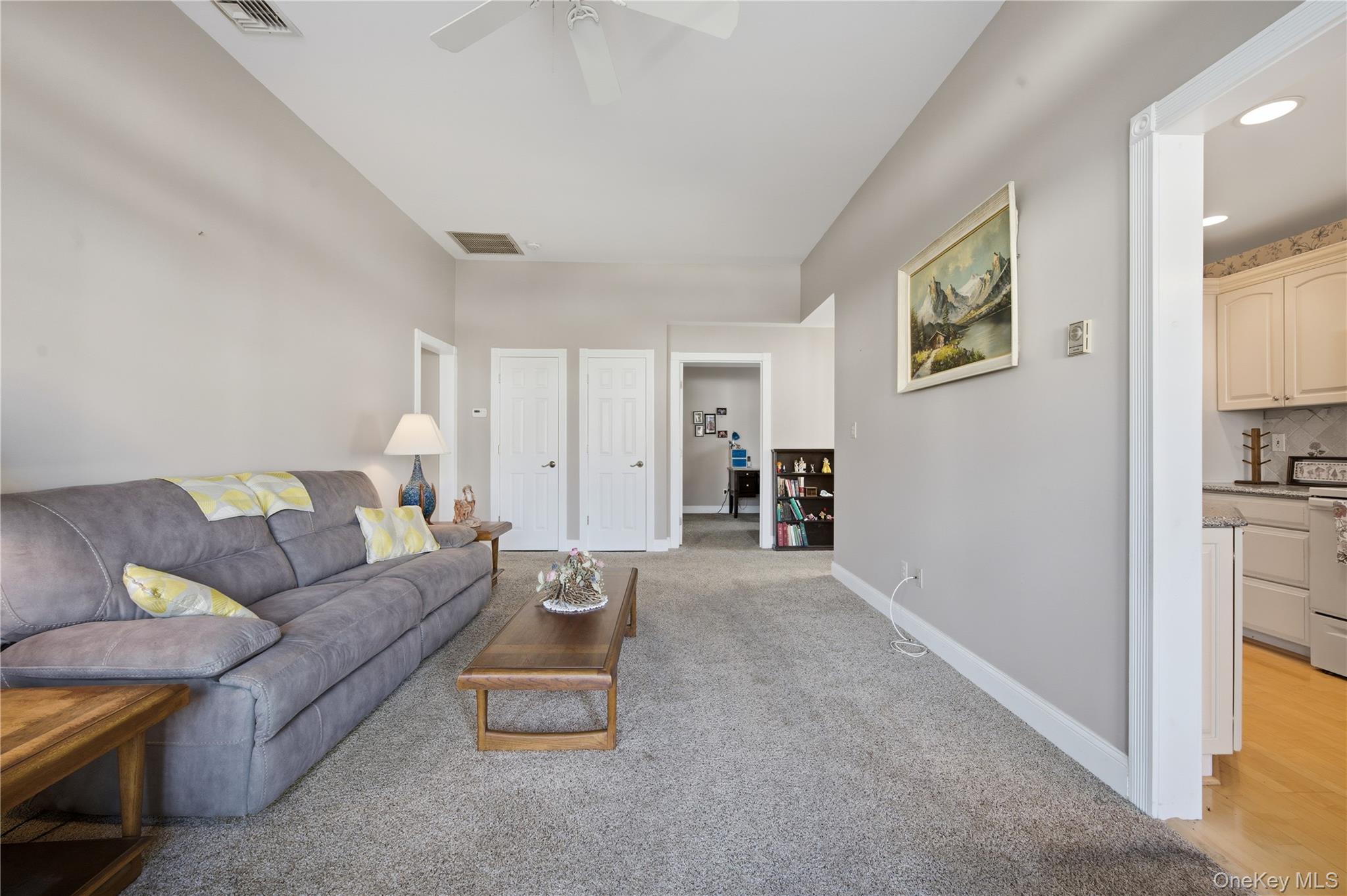 Gated Community, 55+ Senior Community, Fairfield St. James, 1 Bedroom, Den, Living Room, Bathroom with Stall Shower, Bathroom with Walk-In Jacuzzi Style Spa Tub, Eat In Kitchen, 1st Floor No Steps, Garage, Outdoor Patio Courtyard, Central Air, Washer Dryer, Low Taxes $3561 without STAR, Low HOA $279 Monthly (includes water internet cable), Community Club House, 2 Pools, 2 Tennis Courts, Shuffle Board and Pond and Gazebo, Clubhouse Indoor Pool, Furniture and Contents Included Turn-Key, Close to Smithaven Mall and Shopping and Movie Theater. Wide range of adult social activities and community bus service is available.
