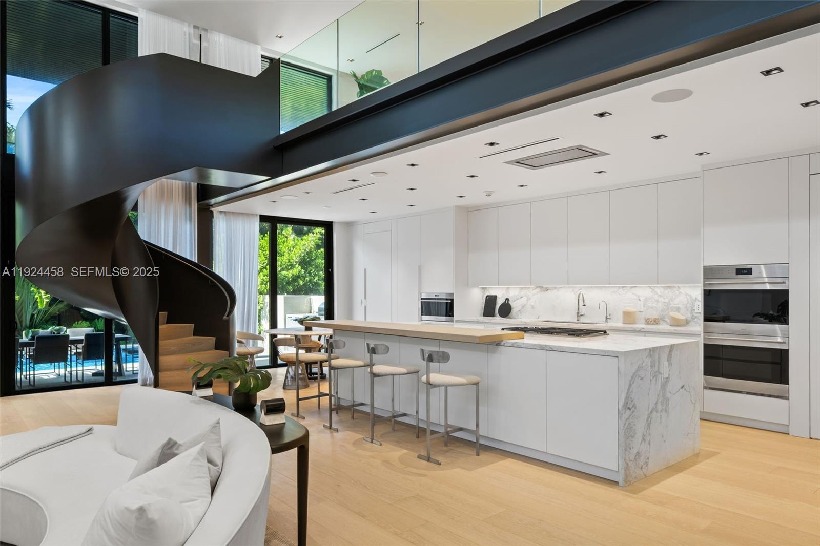 Discover this one-story modern masterpiece in the prestigious guard-gated community of Golden Beach. Set on an oversized 14, 645 SF lot, this newly constructed residence offers 6 bedrooms, 9 bathrooms, and 5, 457 SF of refined living space. A dramatic 21-foot entry foyer, Italian kitchen, built-out closets, and white oak floors elevate the design. Expansive glass walls fill the home with natural light and connect to the lush outdoors. Enjoy a resort-style pool, summer kitchen, covered terrace, and al fresco dining. Additional features include smart-home technology, a full-house generator, high-end finishes and electric vehicle charging outlets in the garage. Located in one of South Florida’s most exclusive seaside neighborhoods, Golden Beach offers private beach access, tennis courts, playgrounds, and a close-knit sense of community.