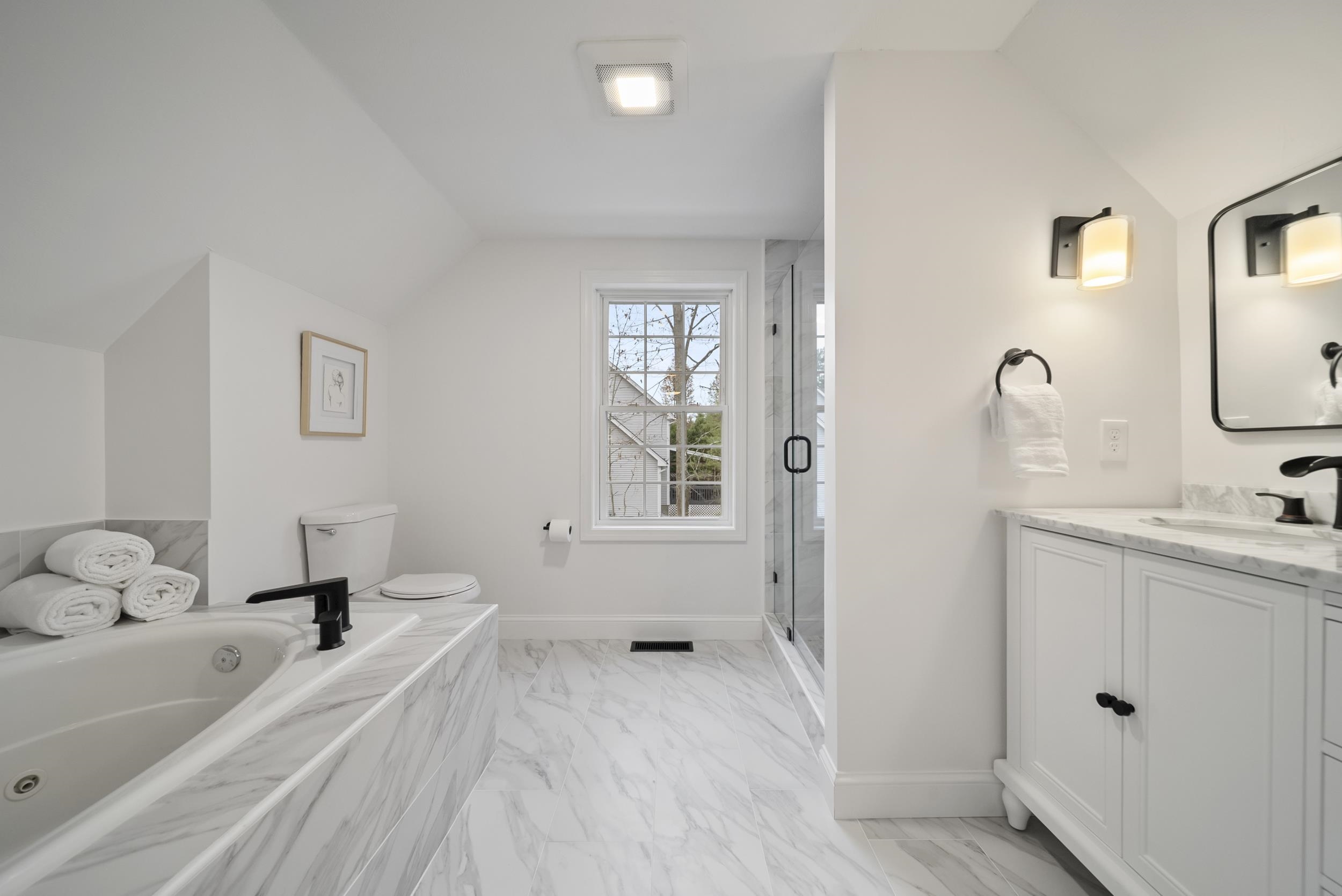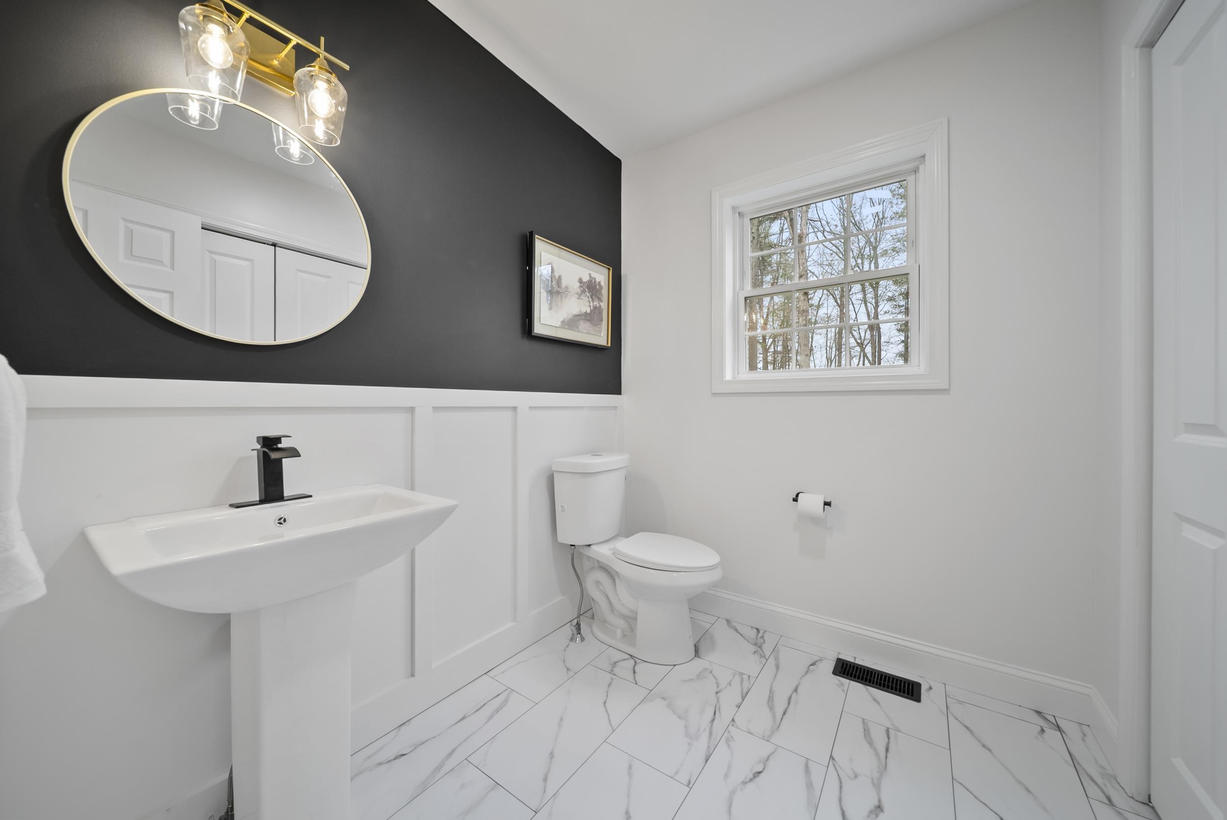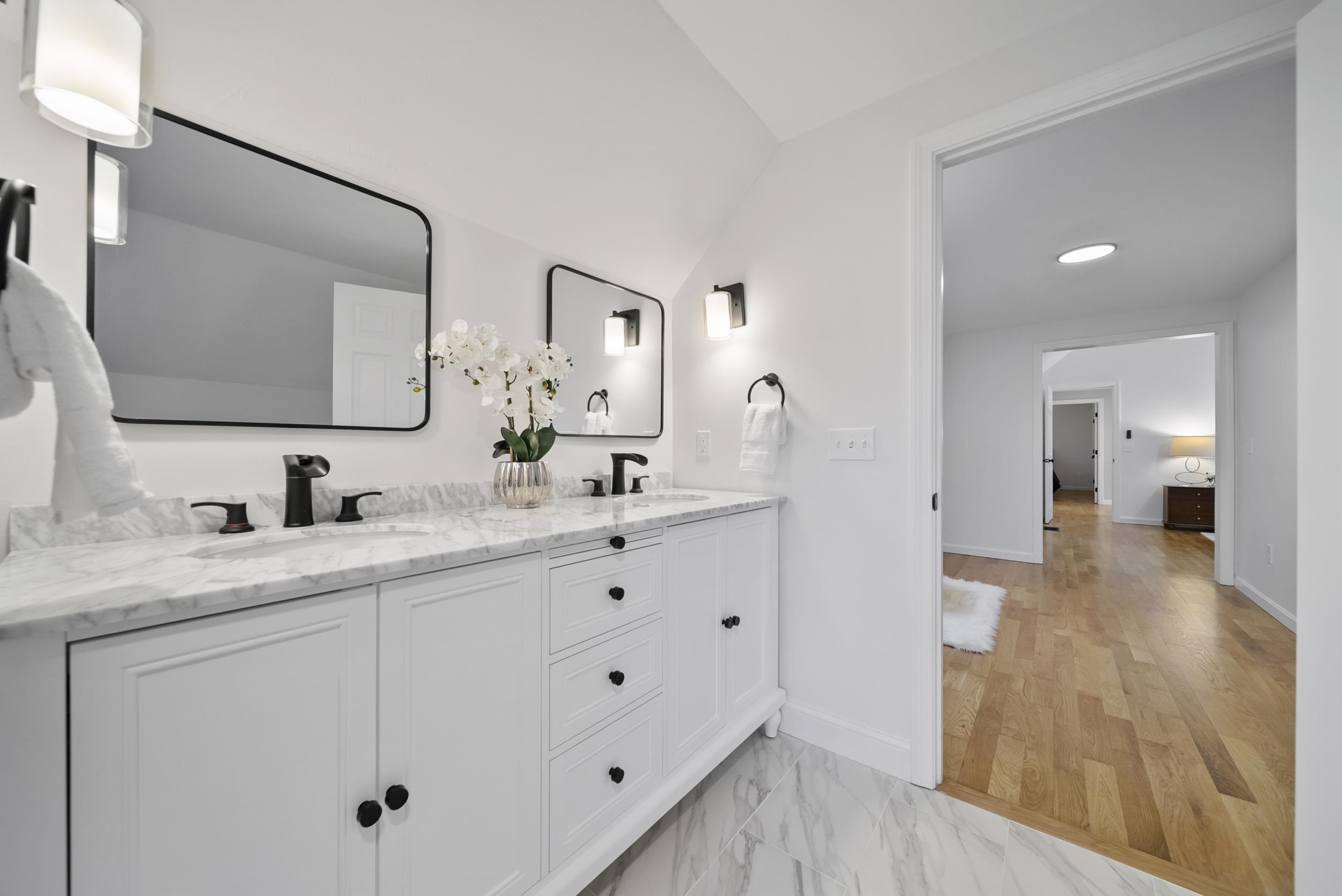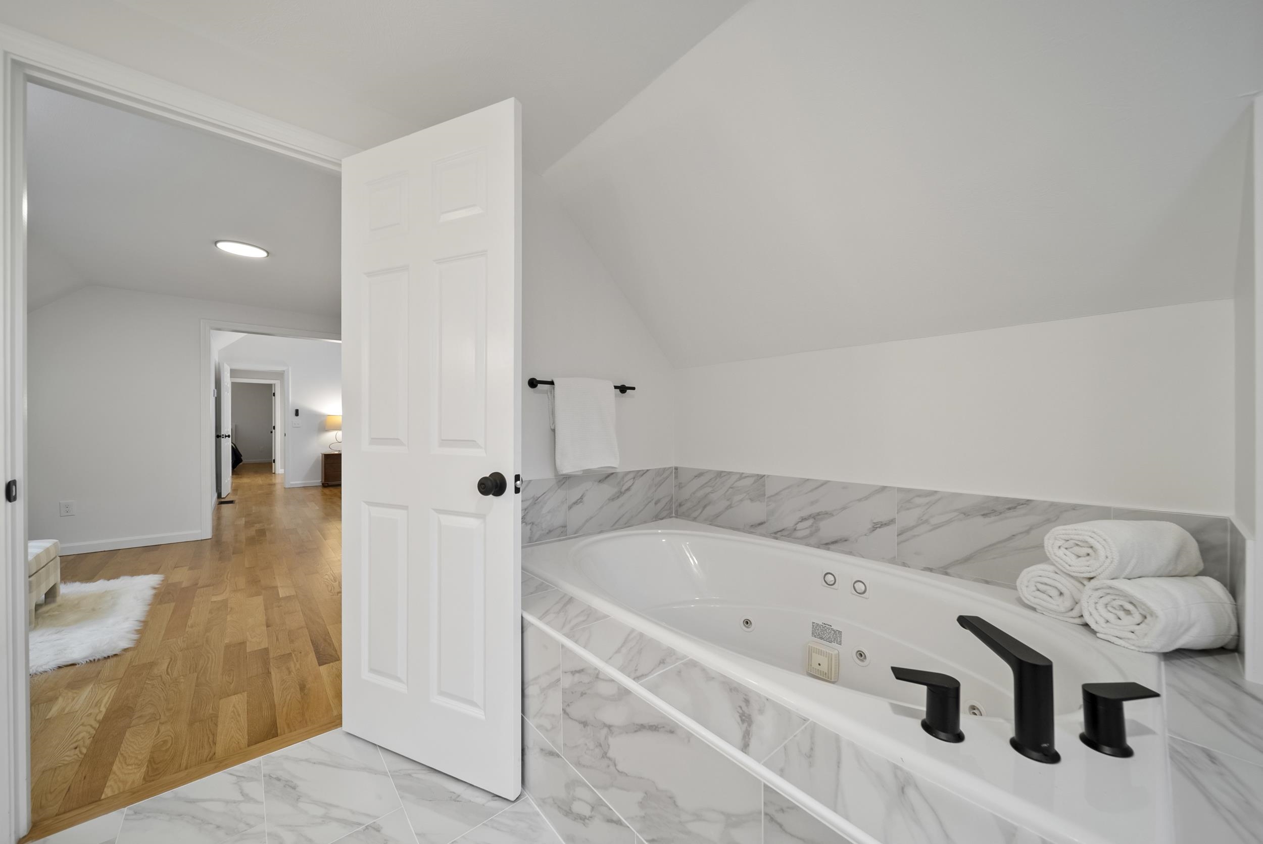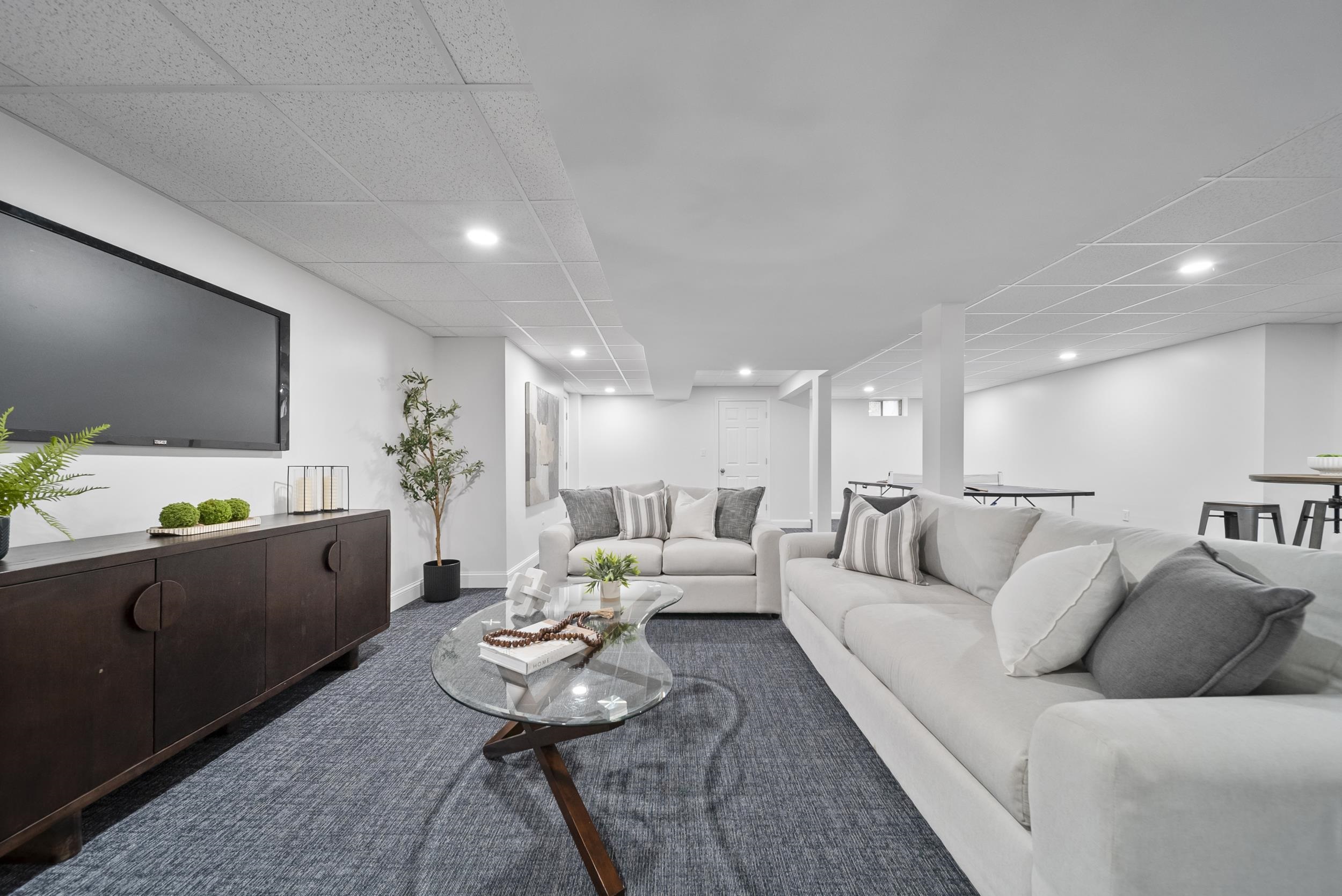 Tired on waiting for new construction but want the peace of mind that comes with it? Look no further than 27 Buckingham! This home has been masterfully renovated from top to bottom in a highly desirable community. Enjoy maintenance free living with a brand new roof, HVAC system & public utilities (water, sewer, natural gas). Step through the light filled foyer and into the heart of the home: the chef-inspired kitchen. It features an 8-ft island, granite countertops, stainless steel appliances and an elegant coffered ceiling. The eat in area provides seamless access to the deck where you can overlook your private backyard. The adjacent living room boasts vaulted ceilings, a cozy wood fireplace & custom accent wall. The first floor is completed by a home office, a formal dining room and convenient half bath. Upstairs, your private escape awaits in the spacious primary suite. Indulge in the spa-like en-suite, featuring a jacuzzi tub, a custom tile shower and double vanity. All complemented by a seating area & walk in closet. Three additional generous bedrooms and a full bath complete the second level. The finished basement space delivers limitless potential with a large bonus room. Complete with a 2 car garage and unbeatable location—close to highways, great schools, shopping & the airport—this home is turn key perfection. Just unpack and settle into your stunningly renovated residence. Delayed showings until the open house on 12/6 from 11am-2pm. Agent interest.