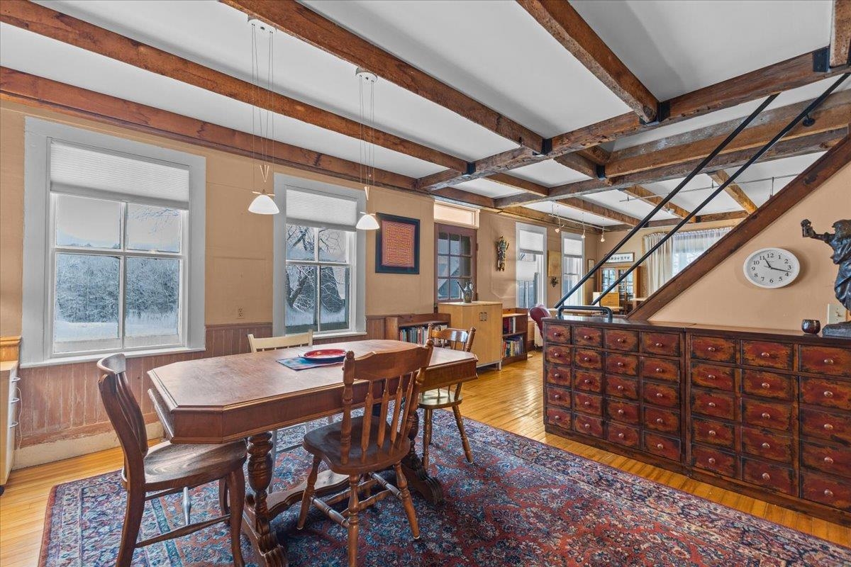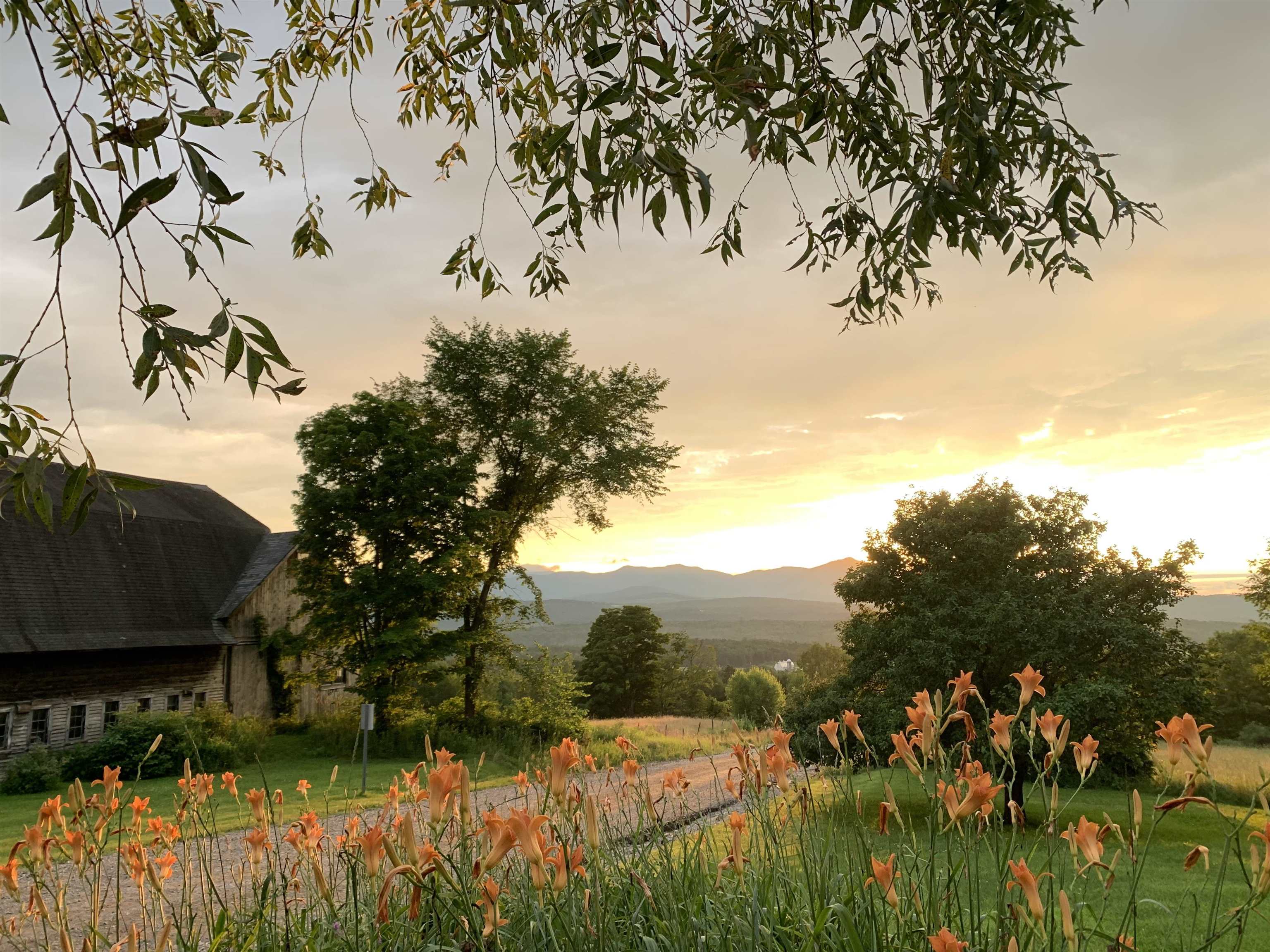 Experience the best of Vermont living at this beautifully updated 1863 farmhouse, set on 52. 9± acres with sweeping, unobstructed views of the Green Mountains and Mount Mansfield. Once a working farm, the property still showcases its heritage with open fields, a large wooded lot, and a home that has been lovingly maintained to preserve its classic farmhouse character and energy efficiency. Inside, warm wood floors, abundant natural light, and hand-hewn beams create an inviting, timeless atmosphere. This 3BR/2BA home features a relaxing whirlpool tub, a charming 3-season porch, and an attached 2-car garage. A remarkable 1850 hand-hewn post-and-beam barn—with a solid 1950 addition—offers exceptional versatility. Whether you envision an artist studio, event space, workshop, or agricultural use, this sturdy historic structure is ready for your creativity. Outdoors, enjoy rolling pasture, wooded trails, and direct access to Elmore State Park—perfect for year-round recreation including skiing, hiking, biking, and swimming. A beautiful stone, moon-shaped patio provides the ideal spot for summer evenings. The property also offers excellent subdivision potential with strong view corridors for an additional homesite. Ideally located just 30 minutes from Stowe Mountain Resort, 10 minutes to amenities, 5 minutes to Lake Elmore, and 1 hour to Burlington. A rare and scenic Vermont farmstead with history, beauty, and outstanding potential.