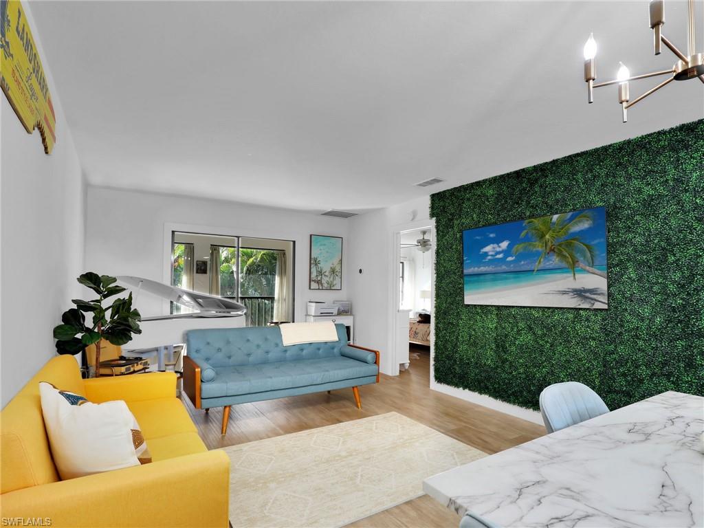 THIS STUNNING, "TURNKEY" FURNISHED REMODELED ($150, 000+/-) 2 BEDROOM, DEN, 2 BATH UNIT HAS IT ALL INCLUDING A VERY LOW HOA FEES. EVERYTHING IN THE UNIT WAS REMODELED. BRAND NEW FLOOR TO CEILING TILED BATHROOMS, ALL NEW TILE FLOORING FOR EASY MAINTENANCE THROUGHOUT THE UNIT. ALL NEW KITCHEN WITH GRANITE TOPS AND FIXTURES, NEW CABINETS AND FIXTURES, AND STAINLESS STEEL APPLIANCES. NEWER WASHER AND DRYER. BARN DOOR INSTALL FOR A COASTAL FEEL. UNIT ALSO HAS NEW A/C (2024) W/WARRANTY, NEWER WATER HEATER. NEW PAINT, AND MUCH MORE! YOU'LL FALL IN LOVE WITH THIS VERY PRIVATE, VERY QUIET UNIT YET IT IS IN THE HEART OF TOWN. CLOSE TO THE BEACHES, MAJOR SHOPPING, CHURCHES, HOSPITALS, RSW-INT'L AIRPORT, RESTAURANTS AND ENTERTAINMENT IN SW FLORIDA.