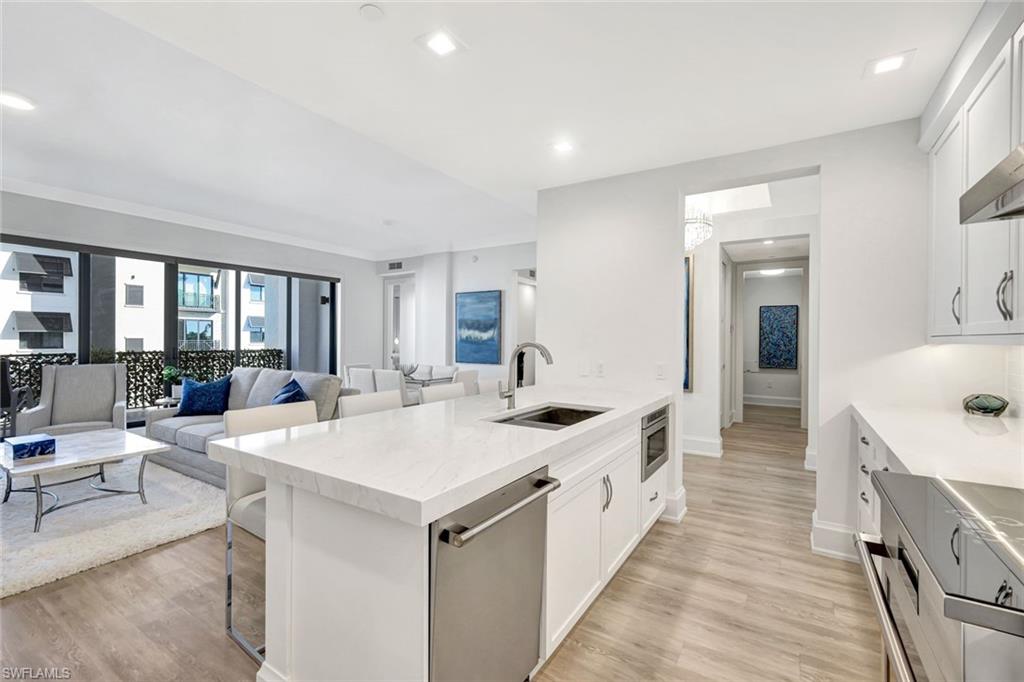 This stunning, fully reimagined luxury residence in the heart of the Naples Design District showcases a top-to-bottom renovation with premium finishes and impeccable craftsmanship. Every surface and system has been thoughtfully redesigned to create a sophisticated, better-than-new living experience. The spacious floor plan includes two bedrooms, a den, two full baths, and an elegant powder room, while the east-facing lanai offers serene mornings and vibrant city views.