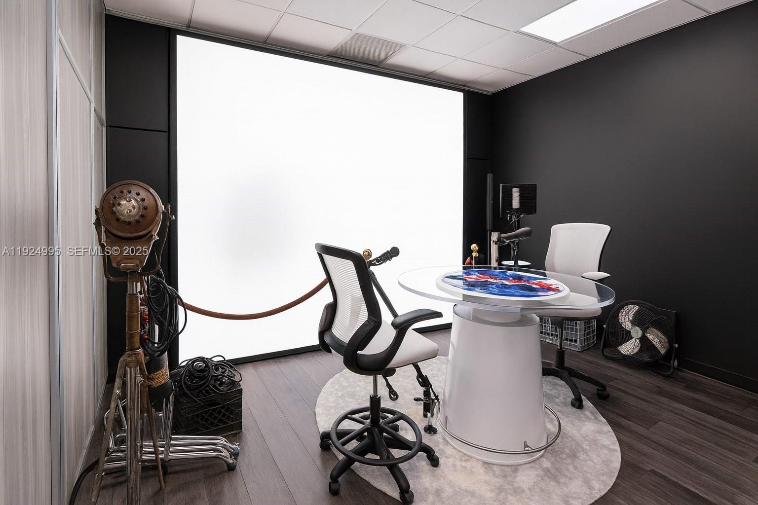 Turnkey podcast and media production studio located in Riviera Point Business Center in Doral. This 964 sq. ft. office condo features a complete professional buildout with two video walls, four studio speakers, along with additional production equipment and inventory included in the sale. The interior offers a reception area, open production space, and three enclosed rooms suitable for editing, recording, or office use. The unit has upgraded lighting, modern finishes, and a flexible layout to accommodate various media or business uses. Convenient location near major highways, shops, and services, with ample parking and professional building amenities. A ready-to-use space ideal for content creation, media services, or businesses seeking a fully equipped creative workspace.
