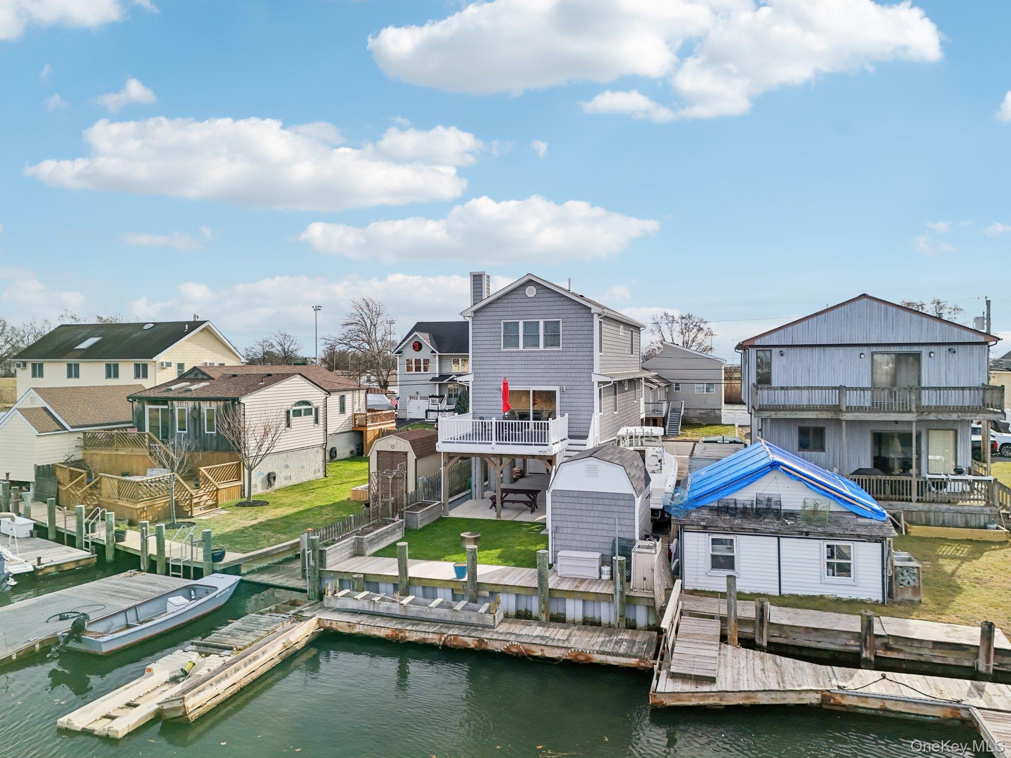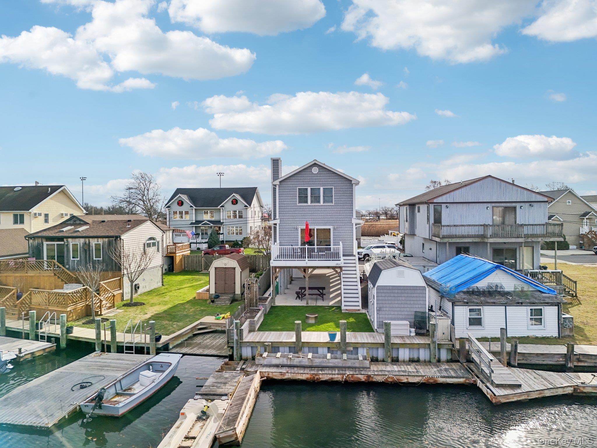 Are you ready for those SUMMER nights in your waterfront retreat? This newly constructed (2018) 3 bed 2 bath home is ready to provide you with the carefree living you have been waiting for! This raised home offers waterfront living with peace of mind and low maintenance, low flood ins and low taxes in the perfect location! Just sit back and enjoy the views of the Great south bay from the front deck or the private canal and Seaman's neck park from the back deck! This home offers a comfortable layout with Kitchen, Dining room, Living room, full Bath and Bedroom or office on the main level with access to the front and back decks to sit and relax and watch the sunsets. Upstairs you will find 2 extra large bedrooms, bath and laundry room along with incredible views and lots of closet space. Home offers gas and radiant heat, 200 amp electric service, 4 zone heating, full fire sprinkler system and pull down stairs with additional attic storage. Outside you will find a 34 ft bulkhead and floating dock for your boat and or jet ski, a large shed and an outdoor sink to complete your day of fishing. Under the house you will find Belgium bordered blacktop for either parking, storage or to host your family parties. Close to all by land or by sea! This beauty is waiting for the perfect family to unpack and relax!!