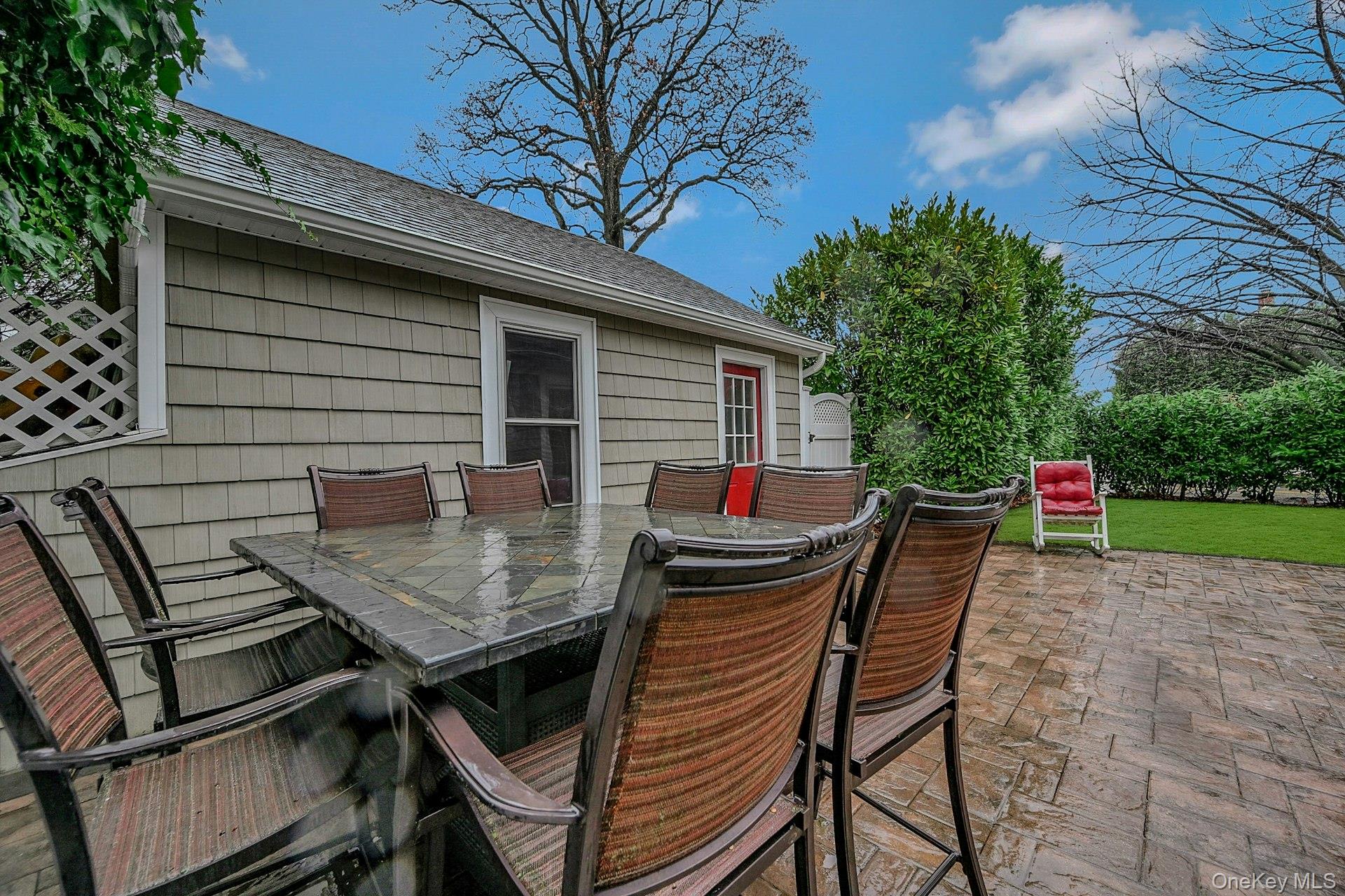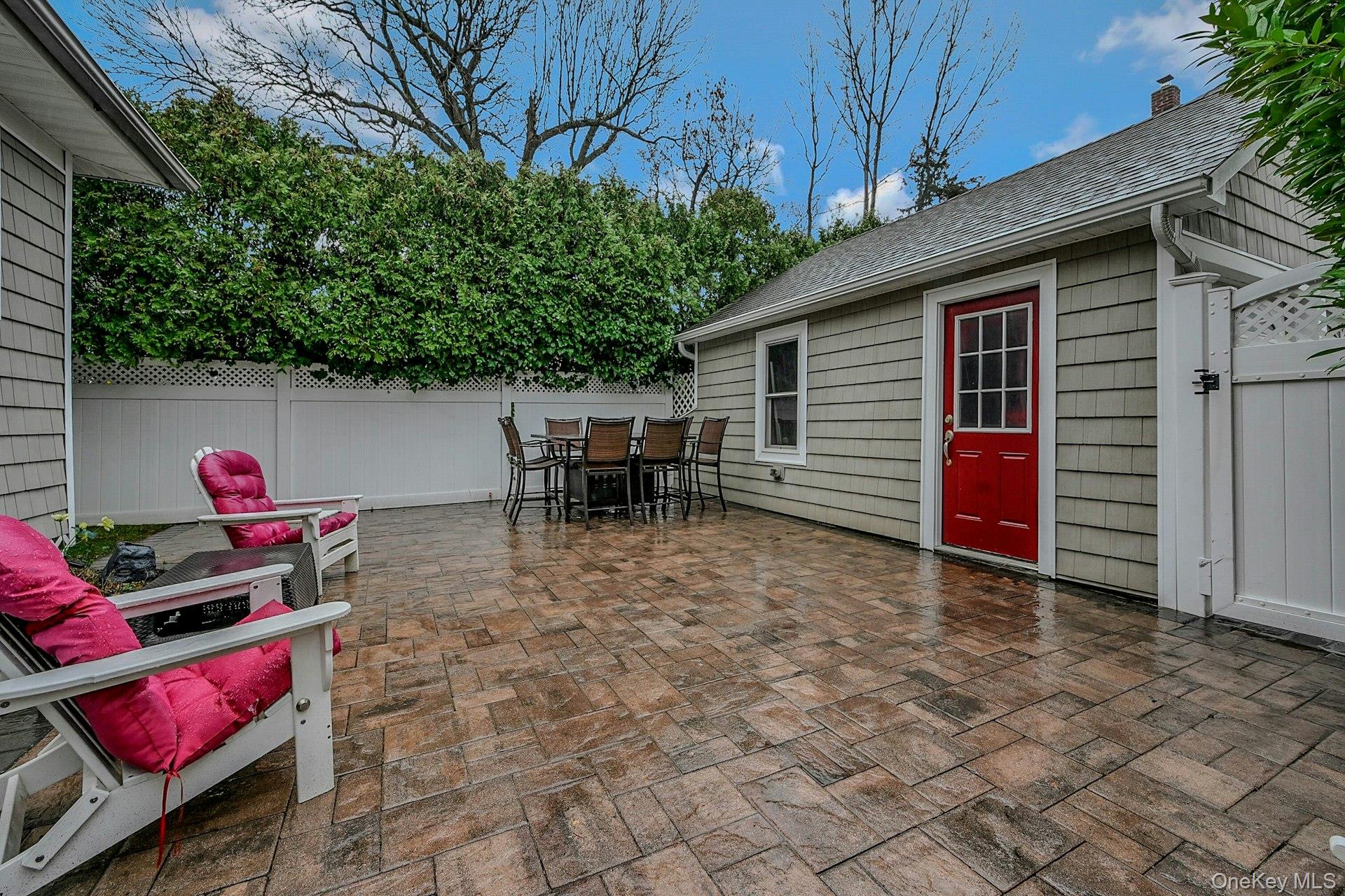 Experience warmth and abundant natural light as you enter this inviting three-bedroom Colonial, perfectly nestled in the heart of Rockville Centre. The spacious living room features an oversized window that floods the space with sunlight, seamlessly connecting to an adjacent office or TV room. This versatile area is highlighted by an enormous bay window and elegant pocket French doors, creating an ideal setting for relaxation or productivity. The gourmet kitchen is equipped with modern stainless-steel appliances and a skylight, offering a bright and functional space for cooking. It opens directly to a generous dining area, making it perfect for hosting large family gatherings or entertaining guests. Convenient pocket doors provide access to a tiled mud room, which can also serve as a small playroom. Half bath located off of mud room. French door sliders lead to a private, lushly manicured backyard. The expansive paver patio offers ample space for multiple seating arrangements, allowing you to enjoy outdoor living in comfort and style. The double detached garage is thoughtfully tucked away behind beautiful landscaping, ensuring both convenience and curb appeal. Upstairs, you will find three comfortable bedrooms and an updated hall bathroom featuring radiant flooring for added comfort and a sky light. Stairs provide access to a walk-up attic, which can be transformed into an office space or recreation area to suit your needs. The partially finished basement provides additional recreation space, plus laundry, utilities, and additional storage space, enhancing the home's functionality and organization.