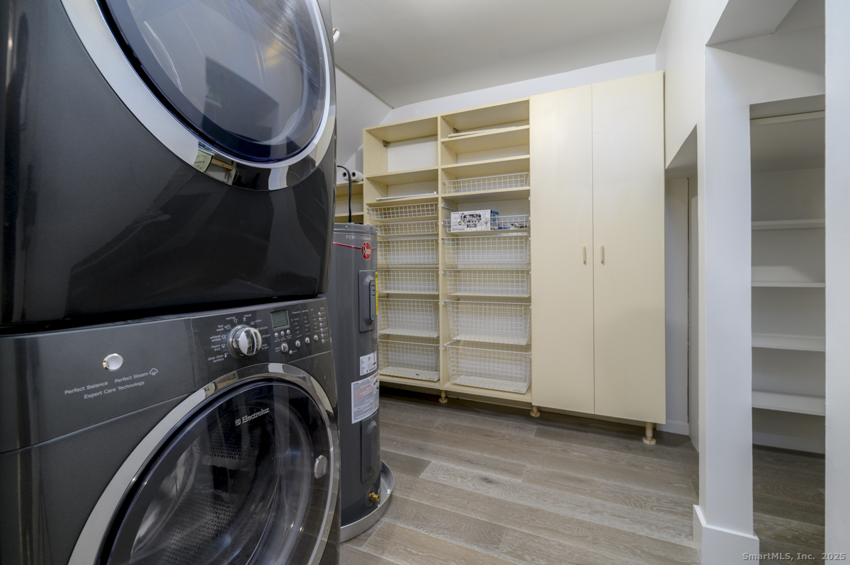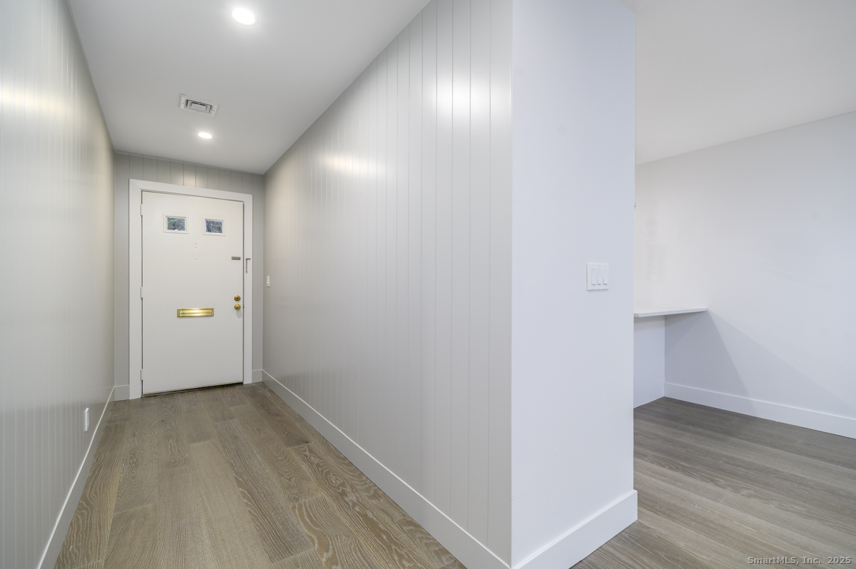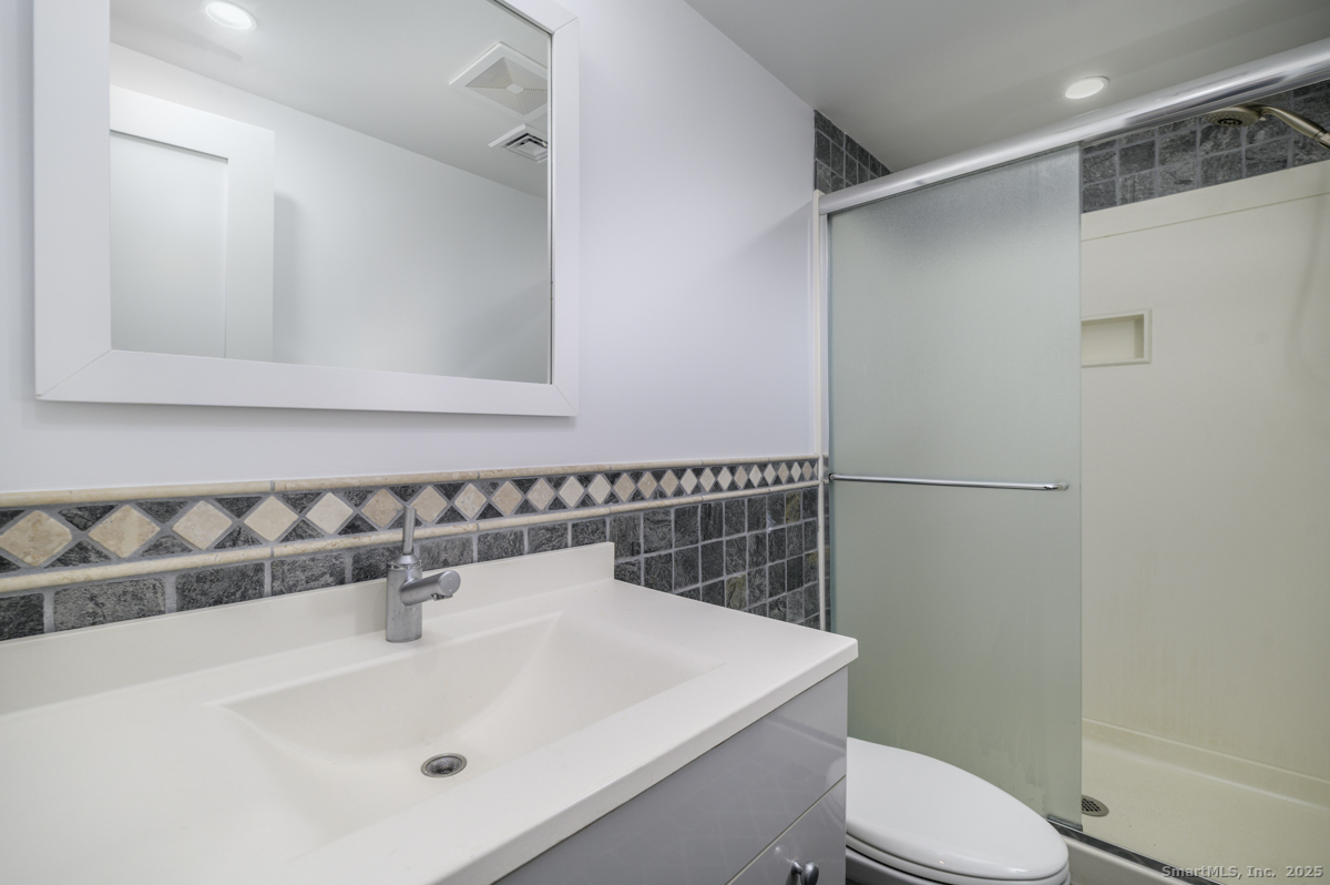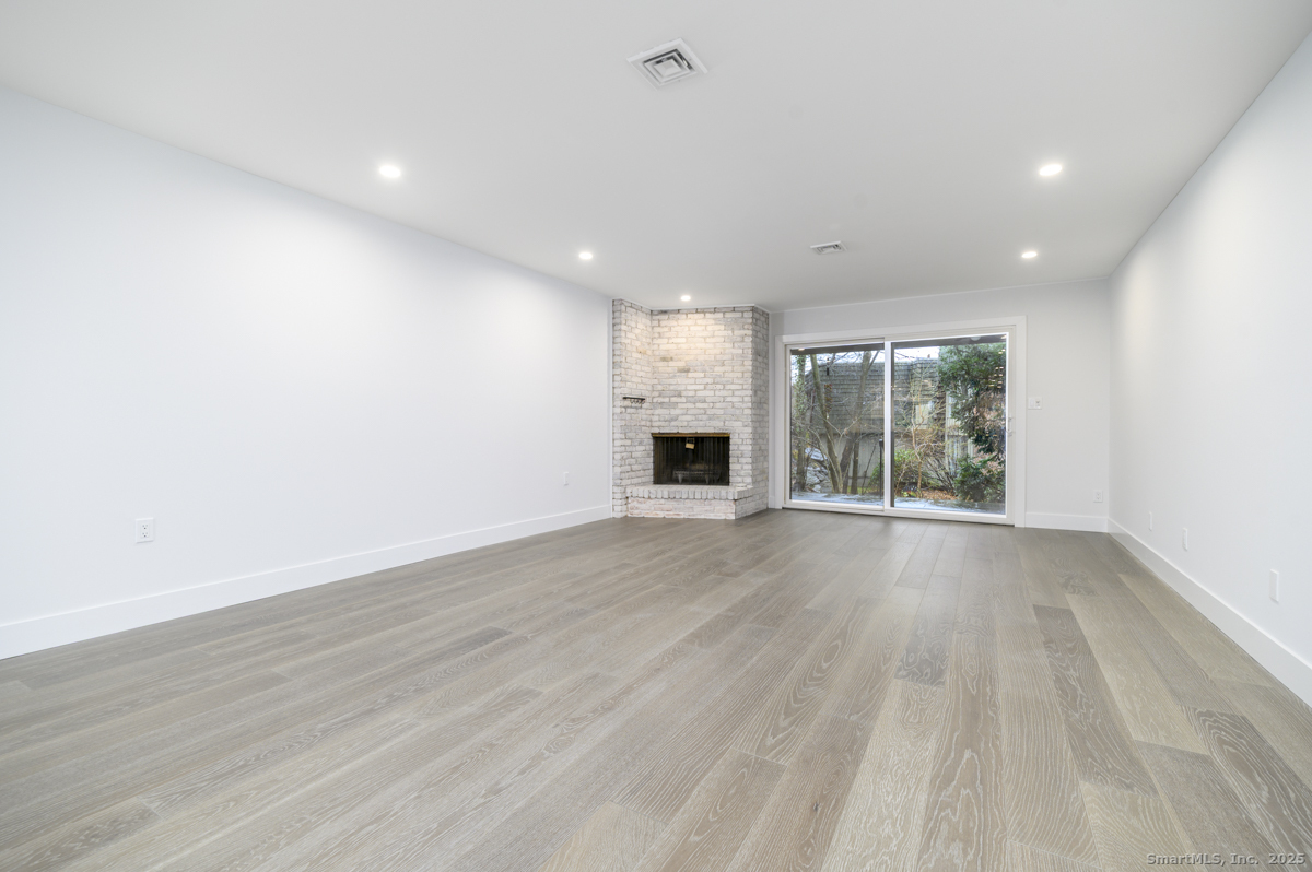 This beautifully remodeled first-floor 2-bedroom, 2-bath condo is set in the sought after Ledgebrook community. Open-concept layout seamlessly connects a totally renovated kitchen with new cabinetry, quartz countertops, tile backsplash and stainless steel appliances with the spacious, sunlit living room/ dining room with floor to ceiling brick fireplace and sliders to a private terrace. The nicely- sized primary bedroom features generous closet space and a en-suite bath, while the second bedroom provides versatility for a home office or guest room. Beautiful new engineered wood flooring. Large utility closet with full size washer and dryer and extra storage. This condo comes with a detached garage. The Ledgebrook complex offers meticulously maintained, park- like grounds and a wealth of amenities, including a clubhouse, pool, indoor hot tub with sauna, and a fitness center. Enjoy a prime location with easy access to highways, trains, shopping, dining, and the vibrant SoNo area. Just move in and enjoy!