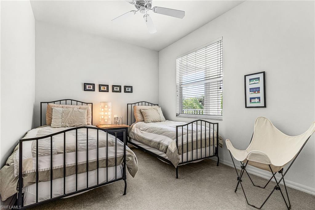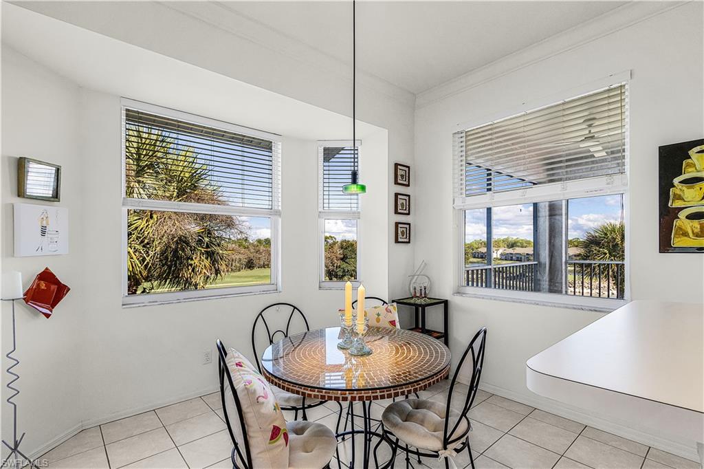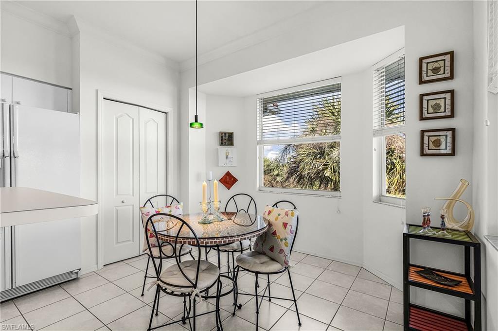 The perfect blend of comfort and resort-style living awaits, with a GOLF MEMBERSHIP. This 2-bedroom, 2-bath end-unit condo offers unobstructed views of hole 11 on the championship course and a tranquil lake. The desirable northeast rear exposure allows for natural light to fill the home throughout the day. The spacious layout is ideal for both seamless entertaining and quiet relaxation, with the added convenience of in-unit laundry and a large storage closet just outside the front door. Offered turnkey furnished, it is ready for you to move in and immediately embrace the Naples lifestyle. Golf enthusiasts will appreciate the Gordon Lewis–designed 18-hole championship course, celebrated for its pristine fairways, strategic water features, and Audubon-certified natural beauty. Beyond golf, Naples Heritage provides a wealth of amenities including a resort-style pool and spa, five additional satellite pools: one within walking distance of the condo, a new fitness center, pickleball, tennis, and bocce courts, as well as clubhouse dining and a vibrant calendar of social events. Set on 550 acres with more than 350 acres of preserves, lakes, and open spaces, Naples Heritage is one of Naples’ most scenic and low-density golf communities. Its central location places you just minutes from 5th Avenue South, world-class shopping, fine dining, and white-sand beaches. This condo is more than a home, it is your gateway to the Naples lifestyle of leisure, activity, and community.