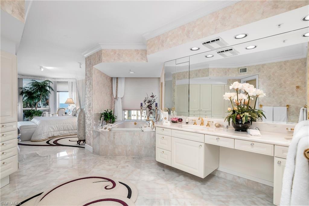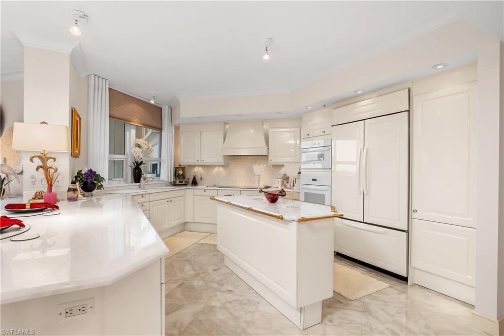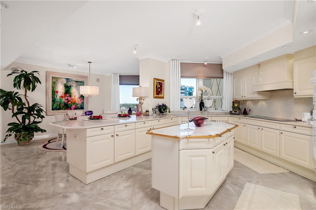 FABULOUS GULF OF MEXICO AND VENETIAN BAY VIEWS. Many Custom and Upgraded Features: Marble and Porcelain Floors. Kitchen quartz countertops, outstanding Custom Backsplash, subzero refrigerator, electric induction glass top range, High End White Poggenpohl raised panel cabinetry throughout, Wet Bar with refrigerator wine cooler, plus more.