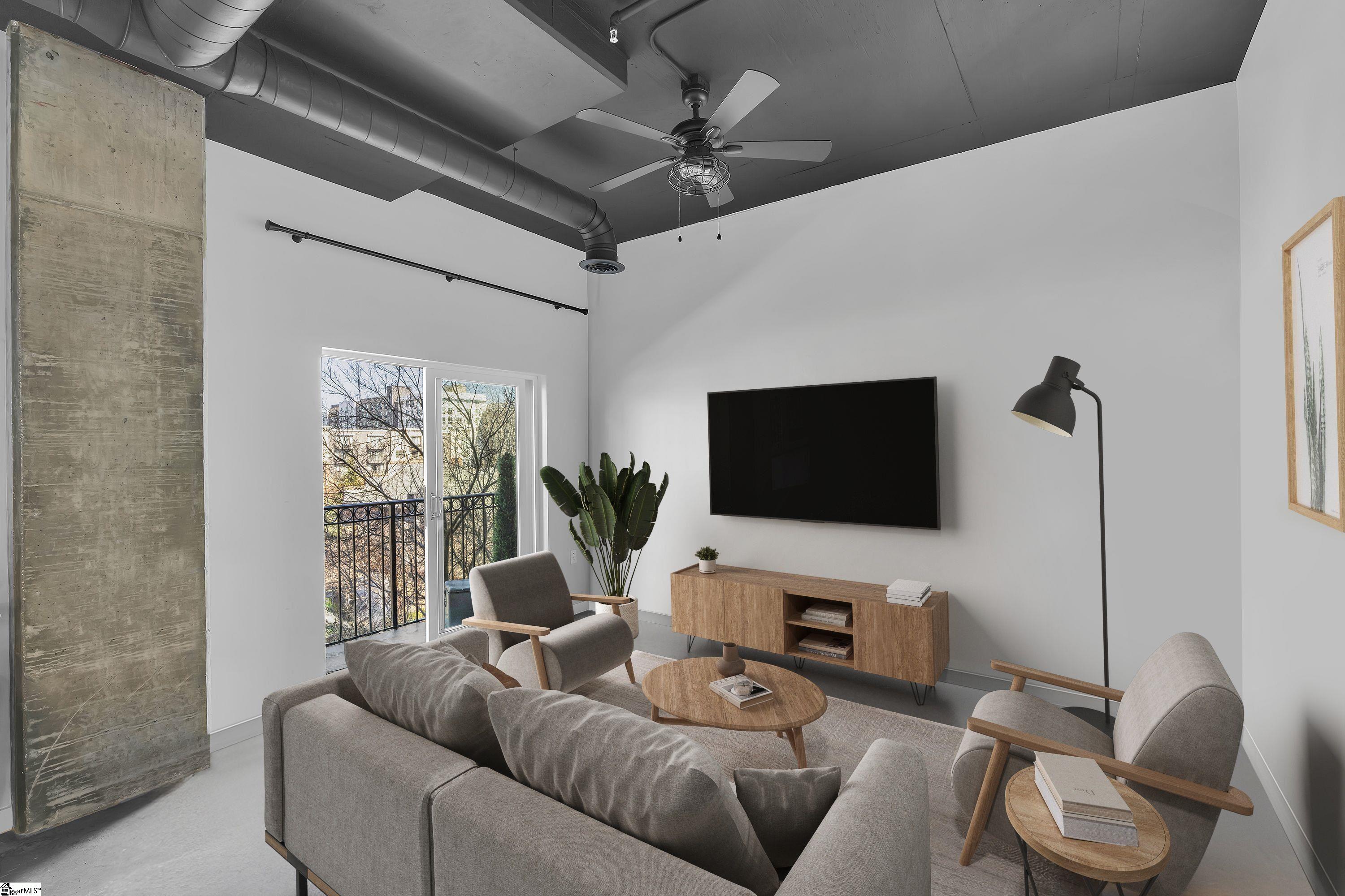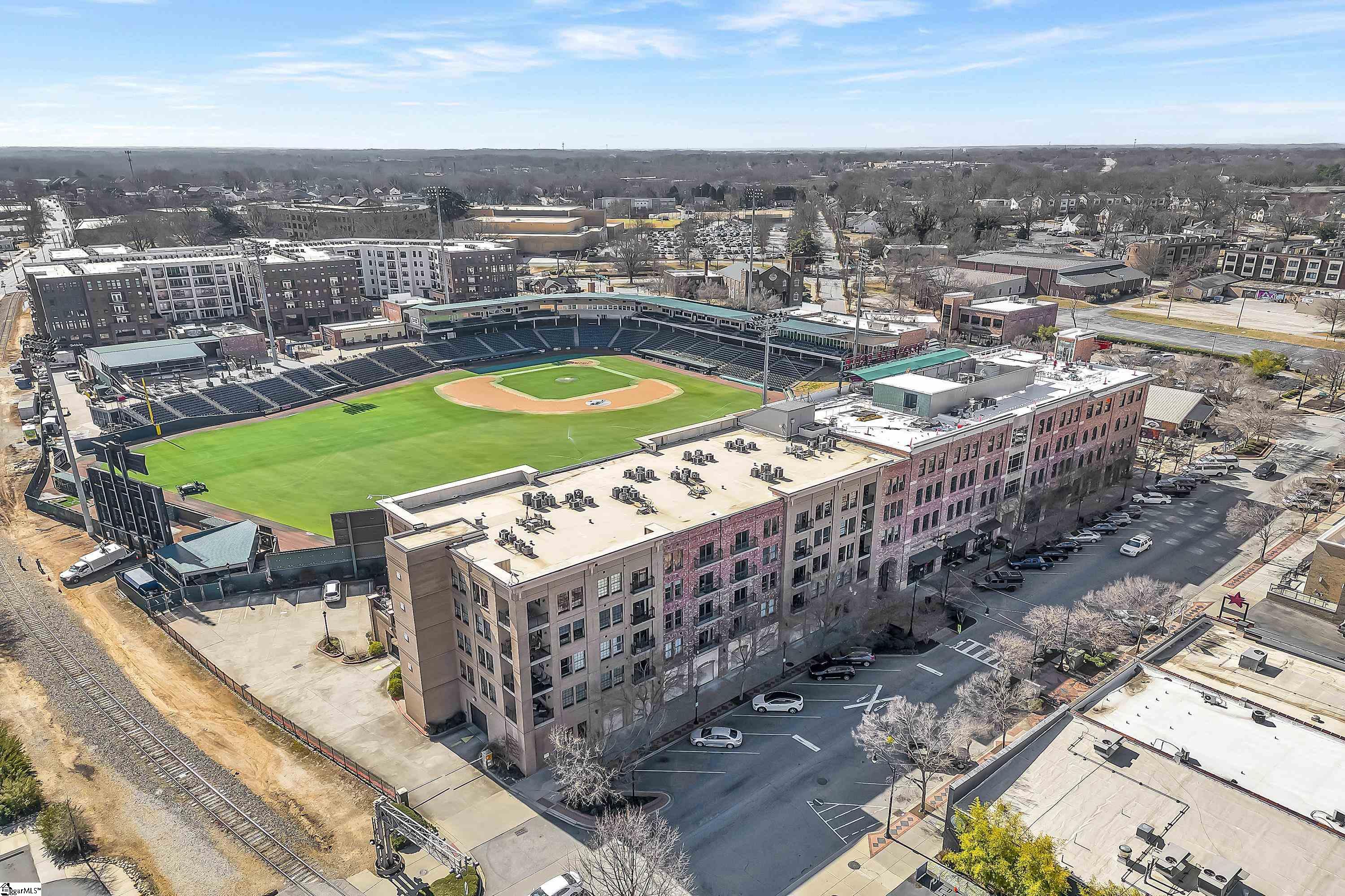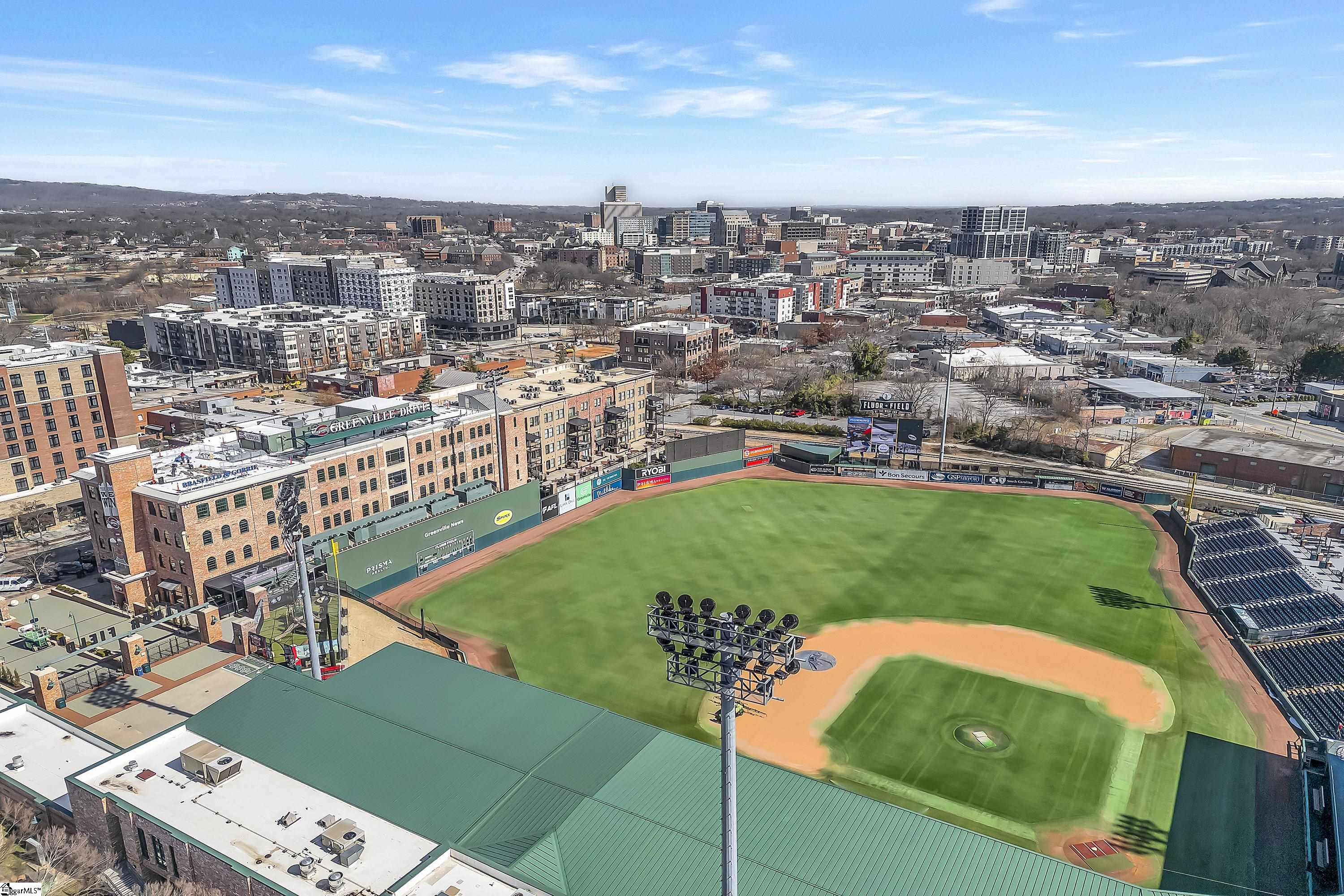Experience upscale urban living at its finest in the heart of Downtown Greenville. Perfectly positioned beside Fluor Field Stadium, this sophisticated 1-bedroom, 1-bath residence offers front-row access to one of the city’s most vibrant and walkable neighborhoods, plus captivating Main Street views that bring the energy of Greenville right to your doorstep. Step inside to an inviting open floor plan adorned with soaring ceilings, expansive floor-to-ceiling windows, and an abundance of natural light that creates an effortlessly airy and modern ambiance. The kitchen is beautifully appointed with premium granite countertops, a chic designer backsplash, and generous cabinet space. A discreet, in-unit stackable laundry elevates convenience without sacrificing aesthetics. Unwind on your charming Juliet balcony, where a refreshing breeze and glimpses of the city skyline set the tone for perfect mornings and enchanting evenings. Live steps away from Greenville’s finest dining, boutiques, cafes, and entertainment venues, all while enjoying the comfort and privacy of a contemporary condo designed for those who appreciate both luxury and lifestyle. This is more than a place to live, it’s a chance to embrace the very best of Downtown Greenville living. Don’t miss your opportunity to call this exceptional condo home. Some photos have been digitally staged using ai technology.