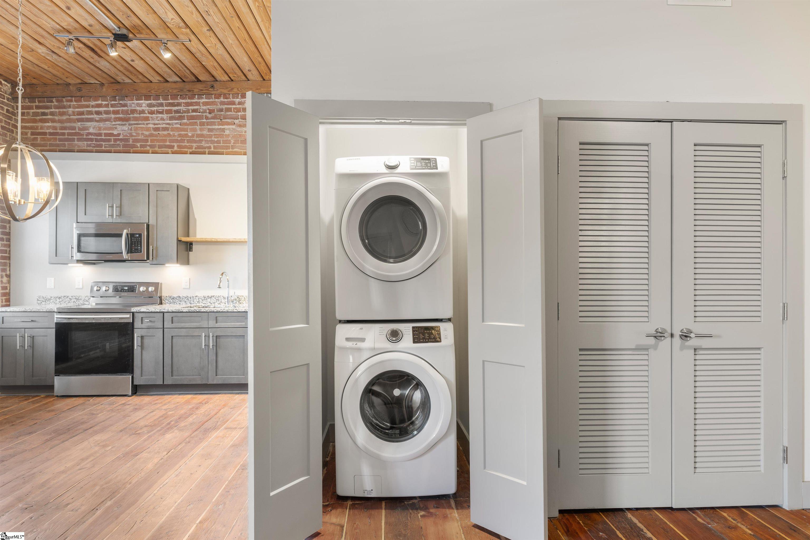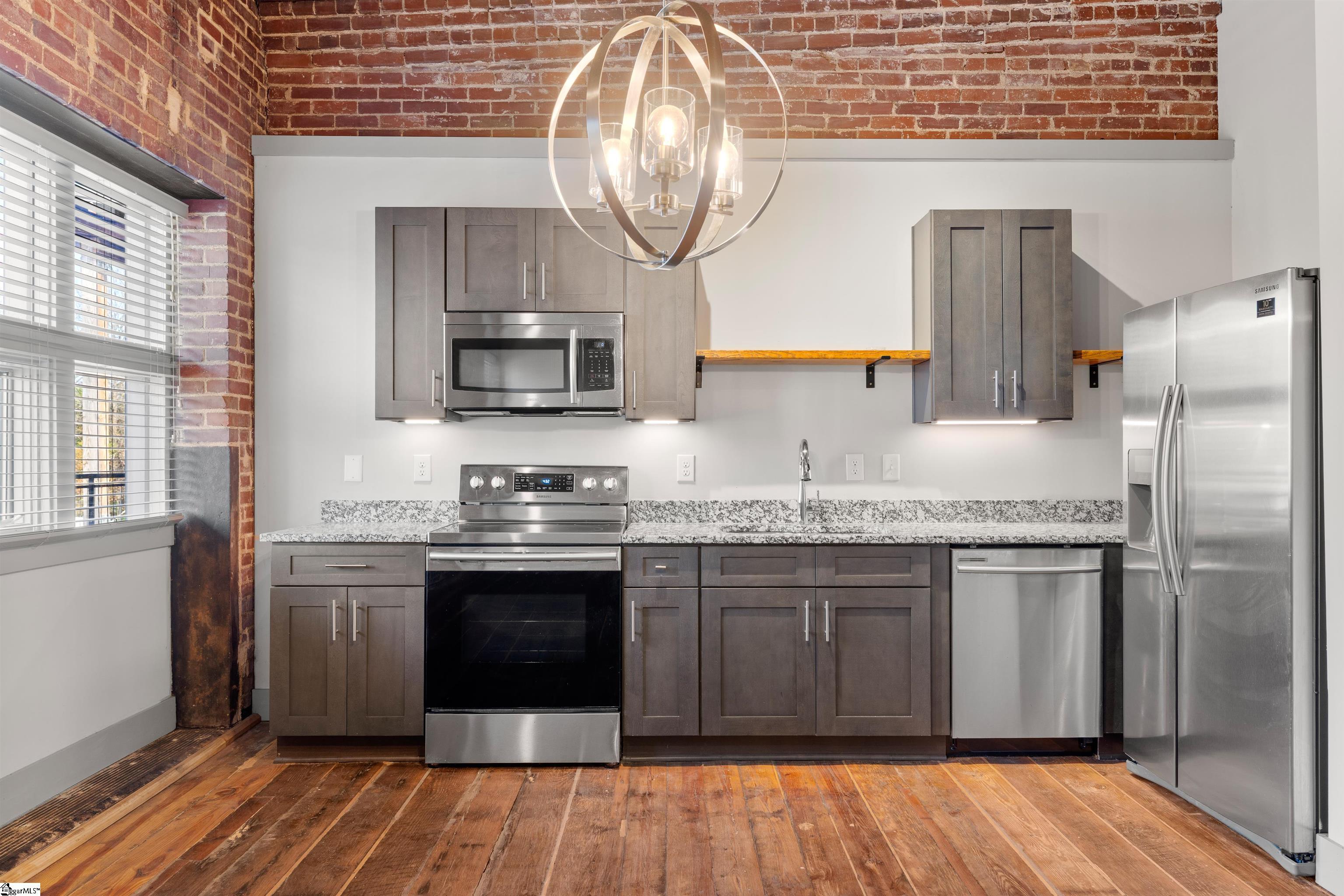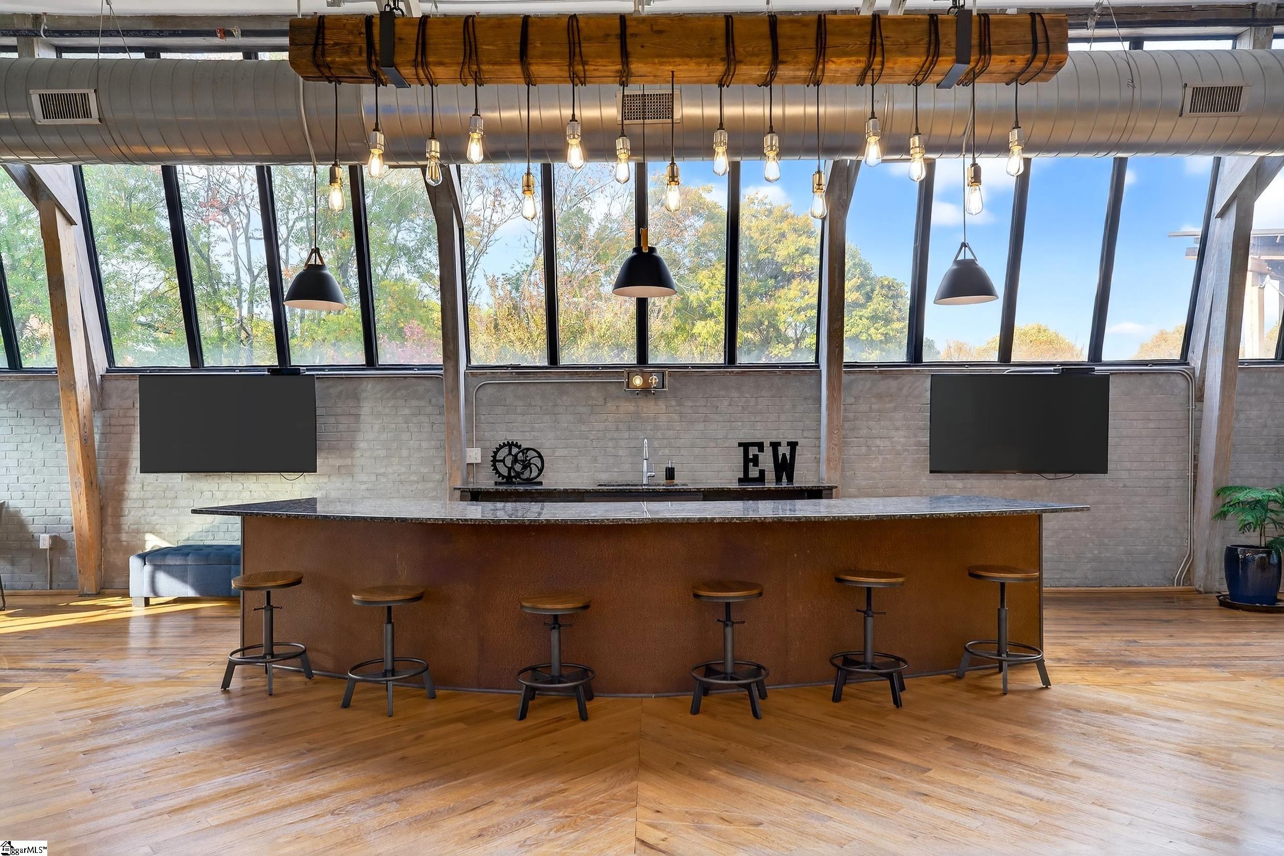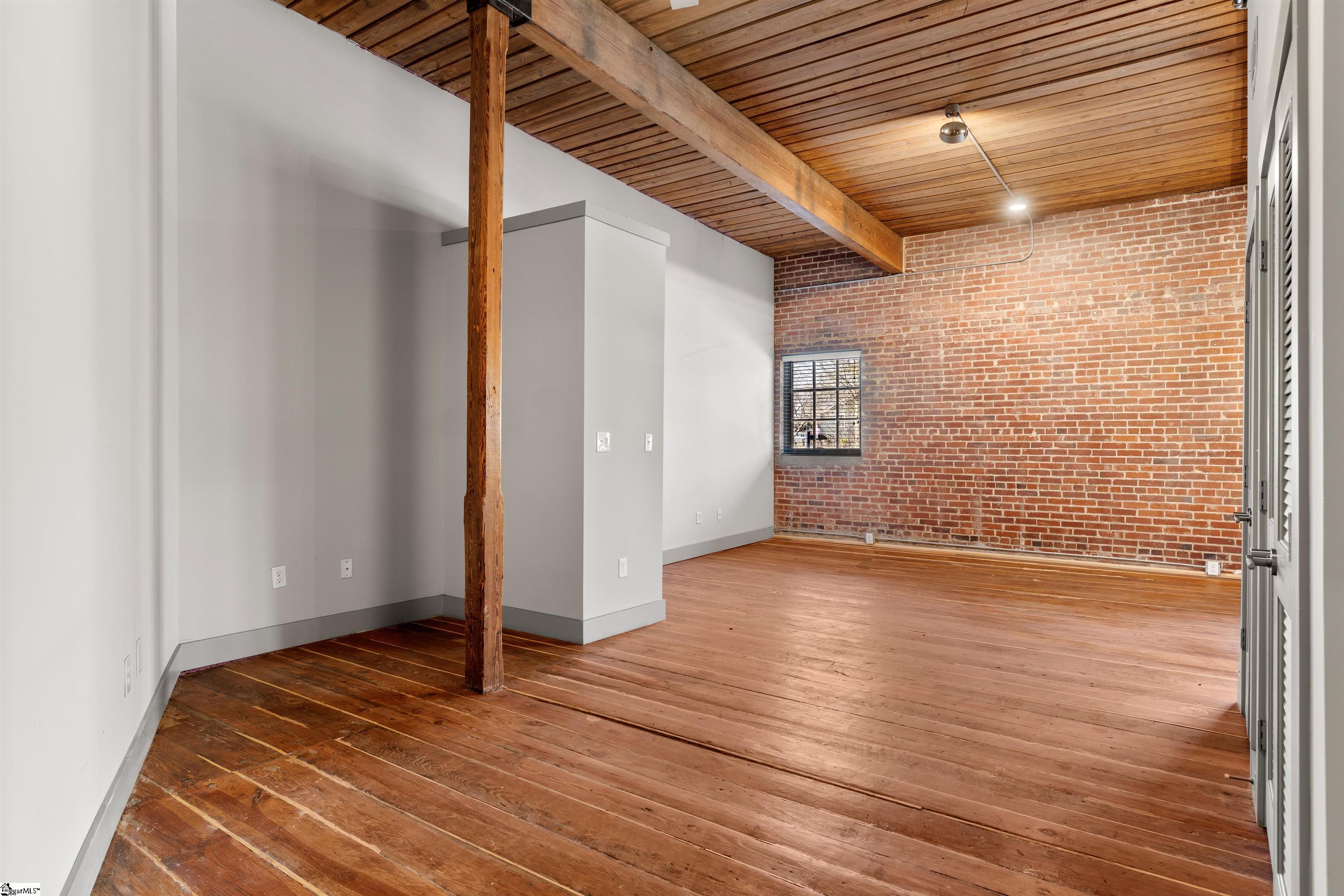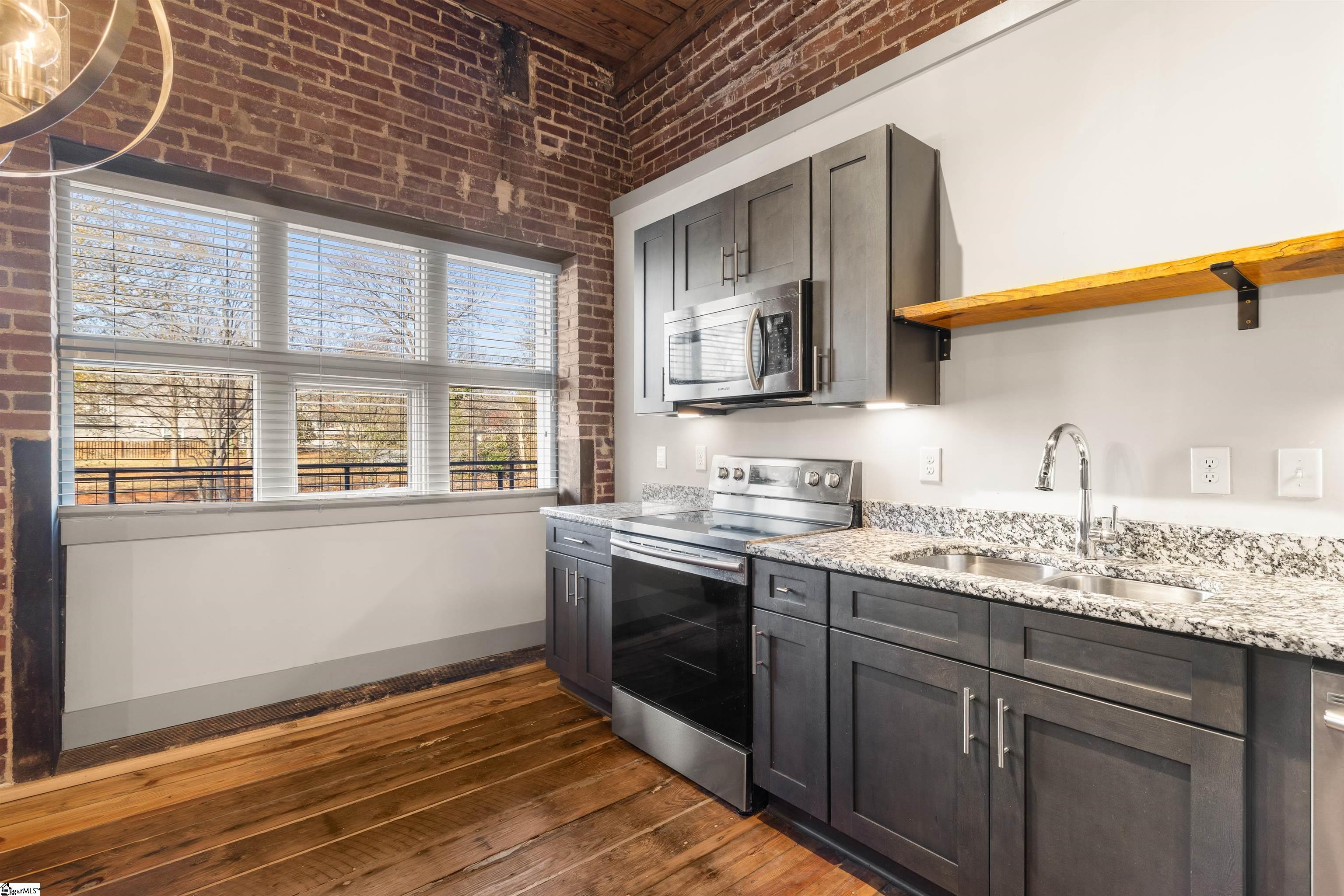 Discover elevated urban living at Elements West, just minutes from vibrant Downtown Greenville. This impeccably updated studio condo is nestled within an exclusive gated community, offering refined finishes paired with the timeless character that makes this development so sought after. Inside, the space impresses with soaring ceilings, exposed wood beams, rich hardwood floors, and beautiful brick walls—delivering an elegant, loft-inspired atmosphere. The thoughtfully designed layout maximizes functionality with exceptional storage, while the updated kitchen and full bath blend modern style with everyday comfort. At Elements West, residents enjoy premium amenities including stylish community gathering areas, a well-appointed fitness facility, and secure access throughout. Perfectly positioned near Greenville’s premier dining, boutiques, medical centers, and cultural destinations, this residence offers the ideal combination of upscale living and low-maintenance convenience. A rare opportunity to own a sophisticated studio in one of Greenville’s most distinctive communities.
