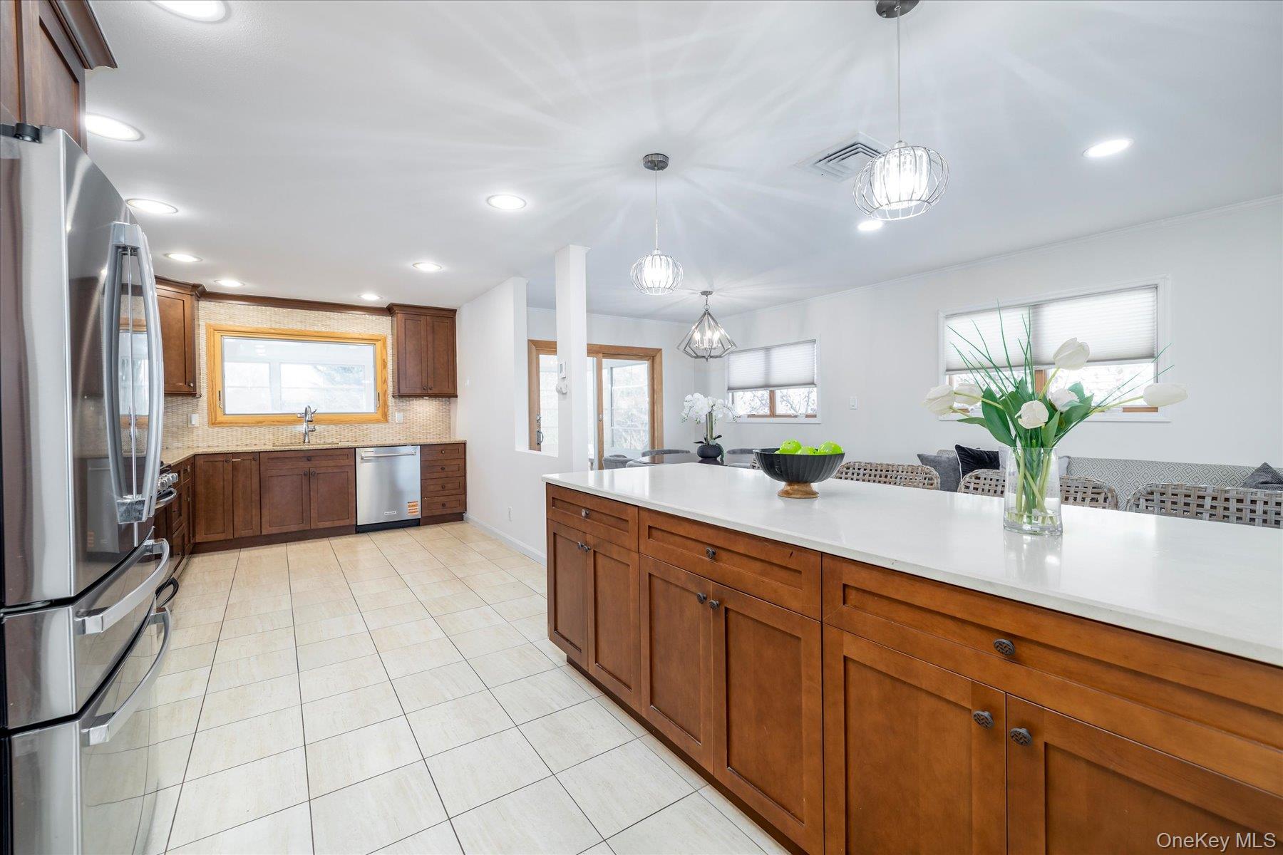 Welcome to this beautifully expanded 3/4 BR Hi-Ranch nestled in one of South Merrickās most sought-after neighborhoods. This home is a true gem, thoughtfully designed, beautifully styled and perfect for every gathering. The surprisingly spacious and open-floor plan seamlessly connects the living and dining areas, creating a warm and inviting atmosphere. The kitchen boasts stainless steel appliances, radiant-heated floors and abundant storage, featuring an expansive, dining peninsula that cohesively connects the adjoining spaces. Adjacent to the dining room, you can relax in the 3-season sunroom, where abundant natural light pours in, making it the perfect spot for morning coffee or evening gatherings. The main level is completed with three bedrooms, including the primary bedroom and a full hall bathroom. Head downstairs to discover even more space to relax or entertain. The lower level offers a den, a full bathroom, and a bonus room currently used as an office also with heated flooring or customize to your needs as a playroom, yoga room, or guest quarters. Finally, that fourth bedroom that you may need can easily be created by converting the adjacent den space back to a fourth bedroom, if desired. Outside, the fully-fenced rear yard is complete with a jetted hot tub for ultimate relaxation. Utilities include gas heat, central A/C, and a 200-amp electric system. This move-in-ready home is equipped for modern living and is truly a must-see before the holidays!