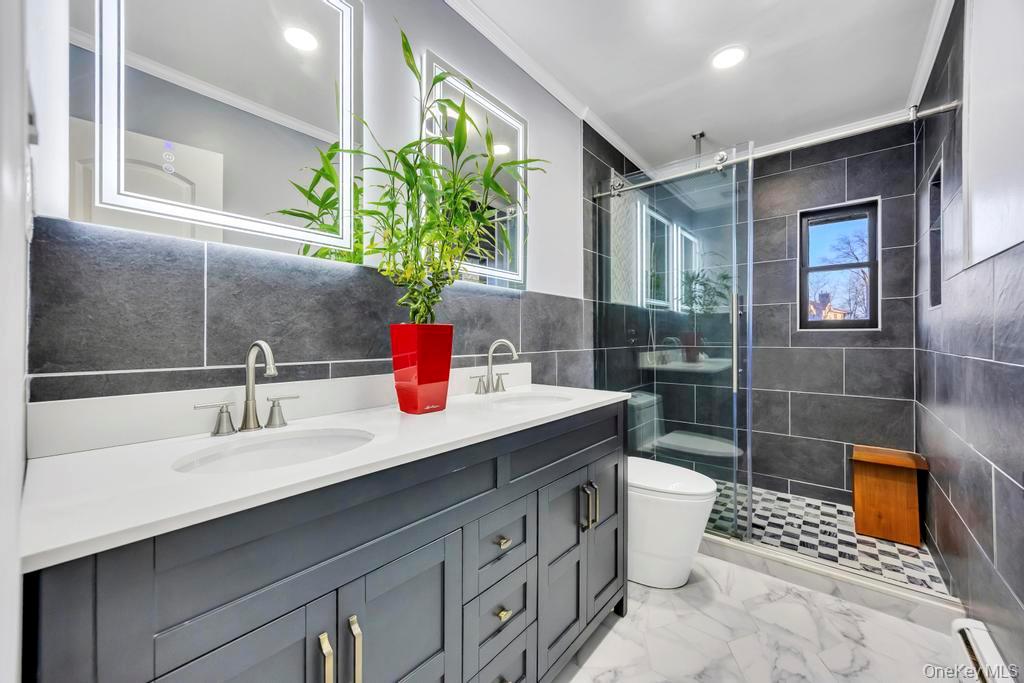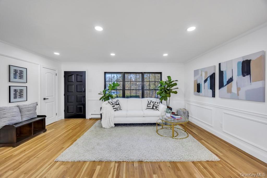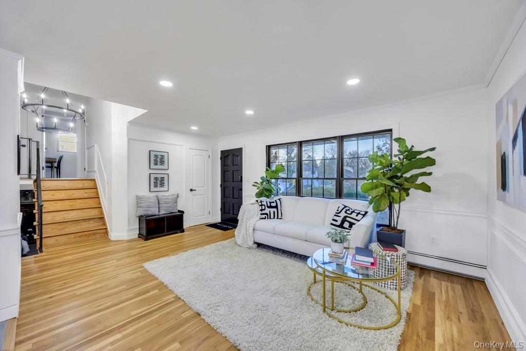 Welcome to this beautifully updated home that seamlessly blends modern design, comfort, and functionality. This spacious residence features 4 bedrooms and 2 fully renovated bathrooms with an airy, open-concept main level filled with natural light. The living and dining areas include sleek finishes and recessed lighting, flowing into a brand-new chef’s kitchen with elegant dark cabinetry, quartz countertops, stainless steel appliances, a stylish breakfast bar, and vaulted ceilings. All bedrooms offer new flooring and ample closet space, while both bathrooms have been remodeled with contemporary tilework and premium fixtures. Smart home features include Samsung smart appliances, Ring security, smart locks, and Nest heating, complemented by a new hot water tank, gas boiler, chimney liner, HVAC central air system, and updated plumbing and electrical. A versatile first-floor bonus room is ideal for guests, a home office, or a gym, and the finished basement provides additional living or recreational space. The private fenced backyard includes a vegetable and fruit garden, along with an extra-large garage with a power door and beautiful landscaping that enhances the home’s curb appeal. Move-in ready with thoughtful upgrades throughout, this home is truly a must-see.