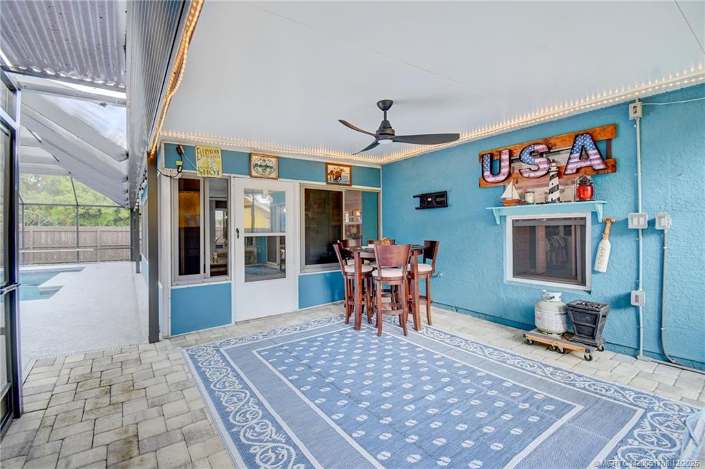 Welcome to this beautiful 3-bedroom, 2-bath home offering exceptional indoor and outdoor living. The property features a large, fully fenced yard with mature trees for privacy and enjoyment. Inside, laminate wood flooring flows throughout, complimented by an open kitchen with Samsung appliances. The spacious primary suite includes a walk-in closet and step-in shower. Major upgrades include a brand-new roof (2024), water heater, updated electric with two 50-amp RV hook-ups. The recently built pool is screened-in, plus there is a sunroom and two covered patios adding valuable living space. The exterior has two storage sheds, ample boat and RV parking, and a wide paver driveway for multiple vehicles. This move-in-ready home combines comfort, functionality, and impressive outdoor amenities. Live on a quiet street, east of US1 and close to beaches and shopping.