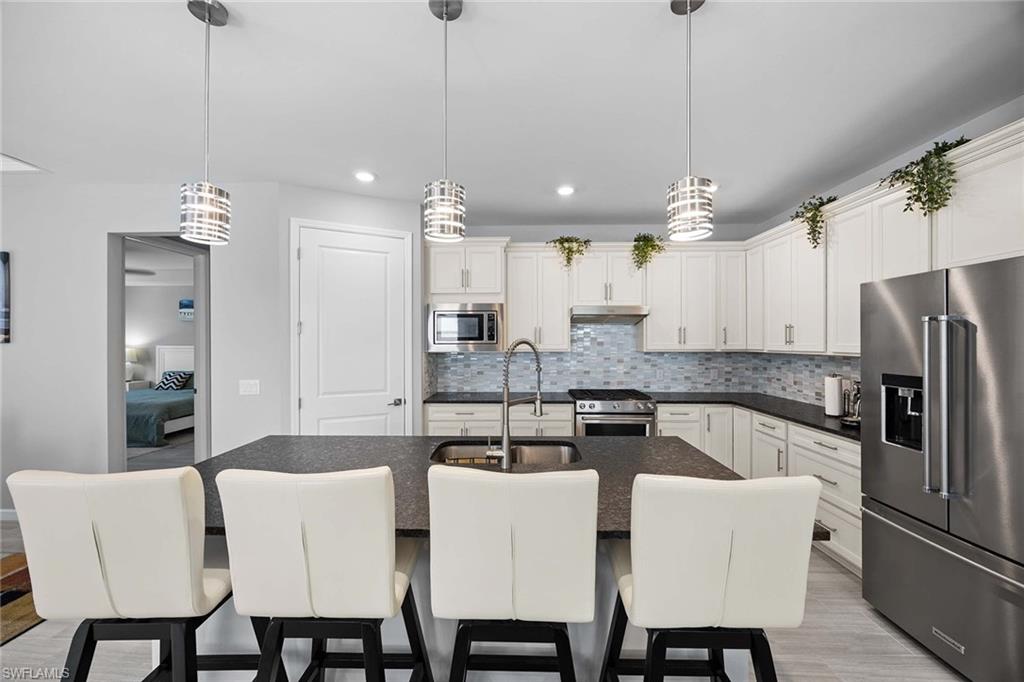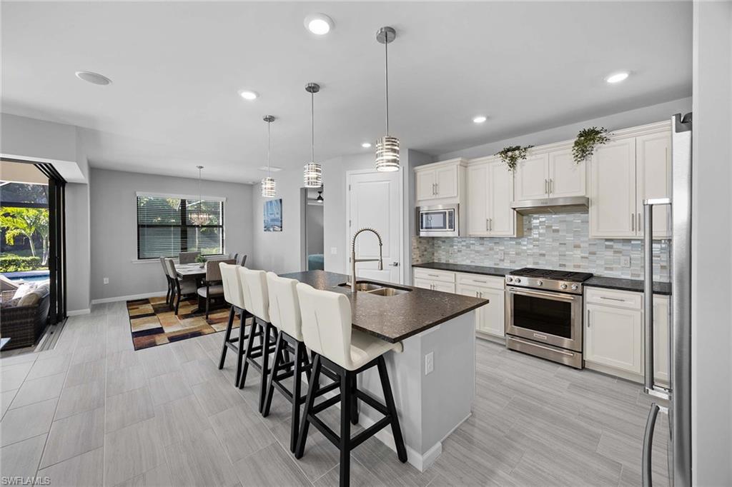 Discover resort-style living in this rare three-bedroom plus den, three-bath natural gas home in the highly sought-after community of Winding Cypress. Designed for privacy and effortless indoor–outdoor living, it features an oversized fully custom pool with integrated seamless spa and a panoramic barless screen lanai, integrated home theater sound, all overlooking lush, tranquil landscaping. The great room opens with a dramatic zero-corner disappearing slider, and the home is nearly brand new with 2022 construction still under the renowned DiVosta builder warranty. Located on a private cul-de-sac, this home offers peaceful living while keeping you close to world-class amenities. Winding Cypress boasts private nature trails, community gardens, and an impressive 18, 000-square-foot resort clubhouse with a poolside restaurant, full-time activities director, lap lanes, zero-edge resort pool with waterfall, fire pit, pickleball, tennis, and more. The community now features two grand entrances/exits on both Tamiami Trail (U. S. 41) and Collier Boulevard (951), offering exceptional convenience.