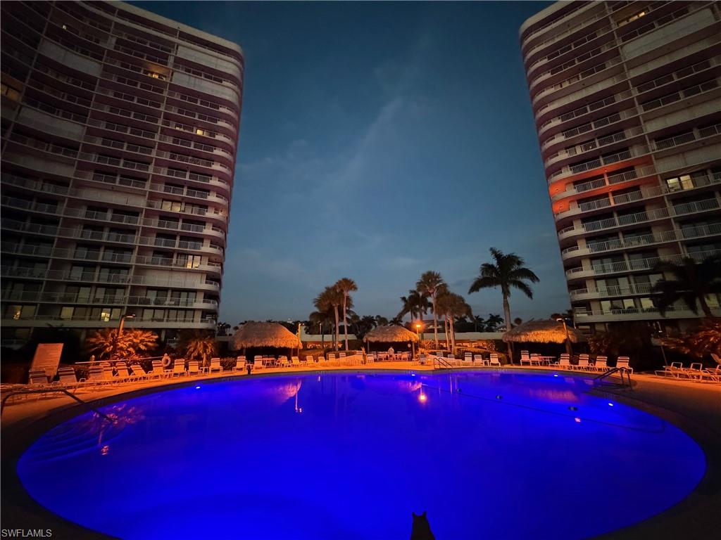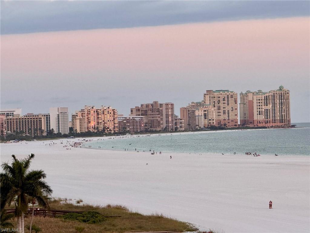 Recently updated South Seas West Tower 2, front unit, mid-floor (T2-712) with wraparound balcony and 270° views. Occasional owner use / never rented. Building was completely renovated in 2023. All improvement assessments have been paid in full. Incredible Gulf Views spanning all of Marco Beach from the Southern tip up to the North tip of Tigertail Beach. From this advantage, you can see the fireworks, sunsets and wildlife at Tigertail along with the City lights on Old Marco. Two bedroom, two bath. All artwork is included. All fixtures have been updated, including both toilets, shower trims, bathroom faucets, kitchen faucet, garbage disposal, new side-by-side refrigerator with ice and water in the door, microwave, toaster oven, and coffee maker. All new glassware, flatware, plates, utensils, pots, pans, baking sheets, cutting boards etc. Master bedroom new Baer's furniture with two nightstands, mattress, boxspring, headboard, and large dresser. Living room has new Macy's furniture recliner and sofa. Dining table with 6 chairs (2 in storage), glass coffee table and 2 glass end tables. All new lamps (5). All new lighting fixtures, including dining room, hallway, bedrooms, including ceiling fan in the guest room and kitchen fan with light, guestroom has queen (I believe) Murphy bed, two computer monitors with docking station and printer. New desk and chair for those of you on the go that just want to plug your laptop into the workstation. All new bedding, including sheets, pillowcases, and bedspreads. Completely stocked with bathroom towels, bathroom carpets, beach towels, and gym towels. Convenient owner storage at floor level with beach buggy (large wheels), two chairs, windsail umbrella with auger and cordless drill for planting sail in the ground. Two new 65-inch Samsung TVs and sound bar. Two Wi-Fi security cameras, Wi-Fi thermostat, and Schlage keyless entry. Apps for the building include keyless entry/exit, gym and App for security gate to provide guest access. Black entry console for use as a liquor cabinet. Laundry room recently renovated with owner laundry cabinet. Verticals in dining room/living room are with all new veins. There are four chairs that rock and swivel for the patio, including a round table and an end table. Freshly painted, popcorn ceilings removed, and all new closet doors. Offered turnkey & priced to sell.
