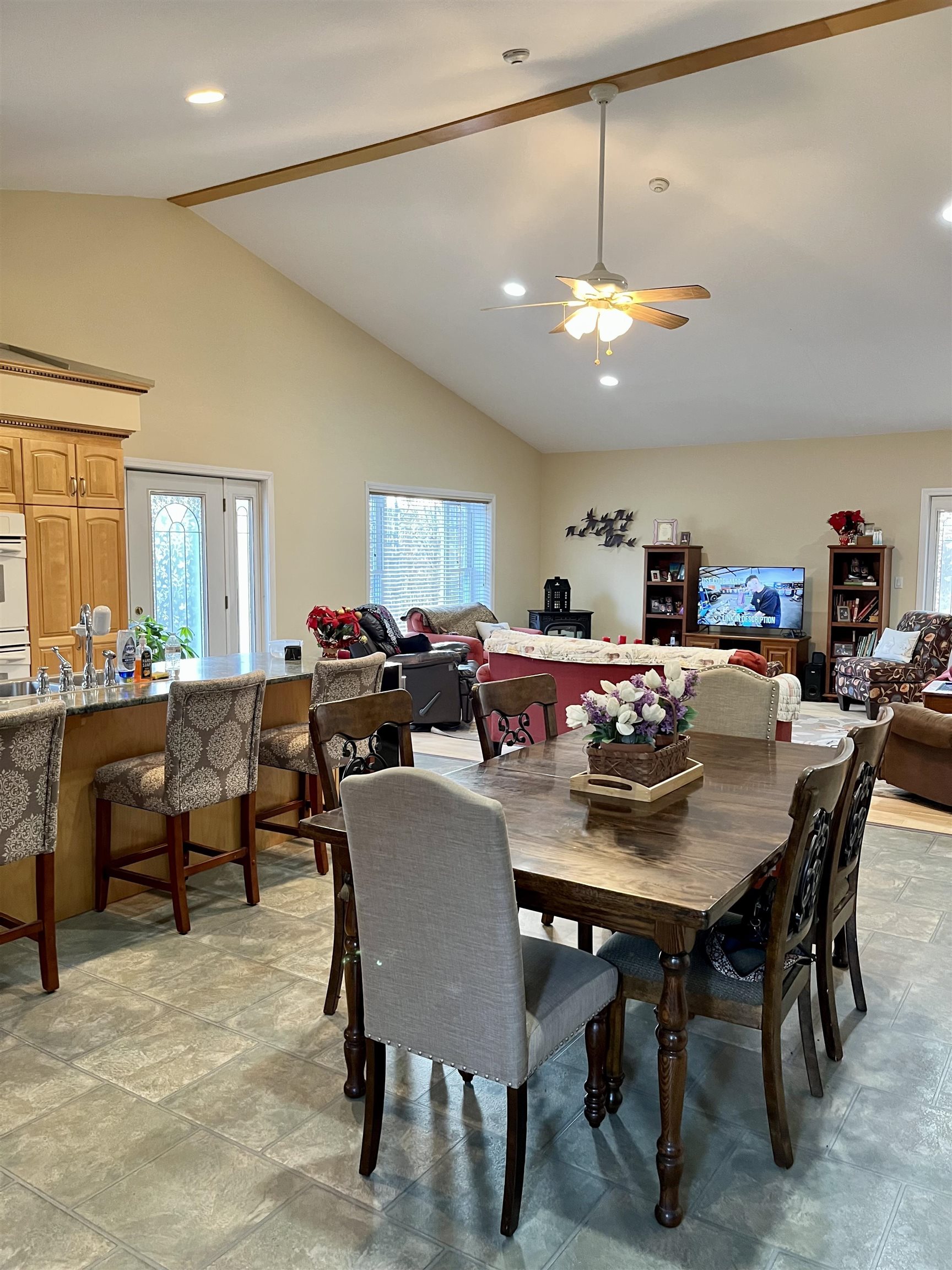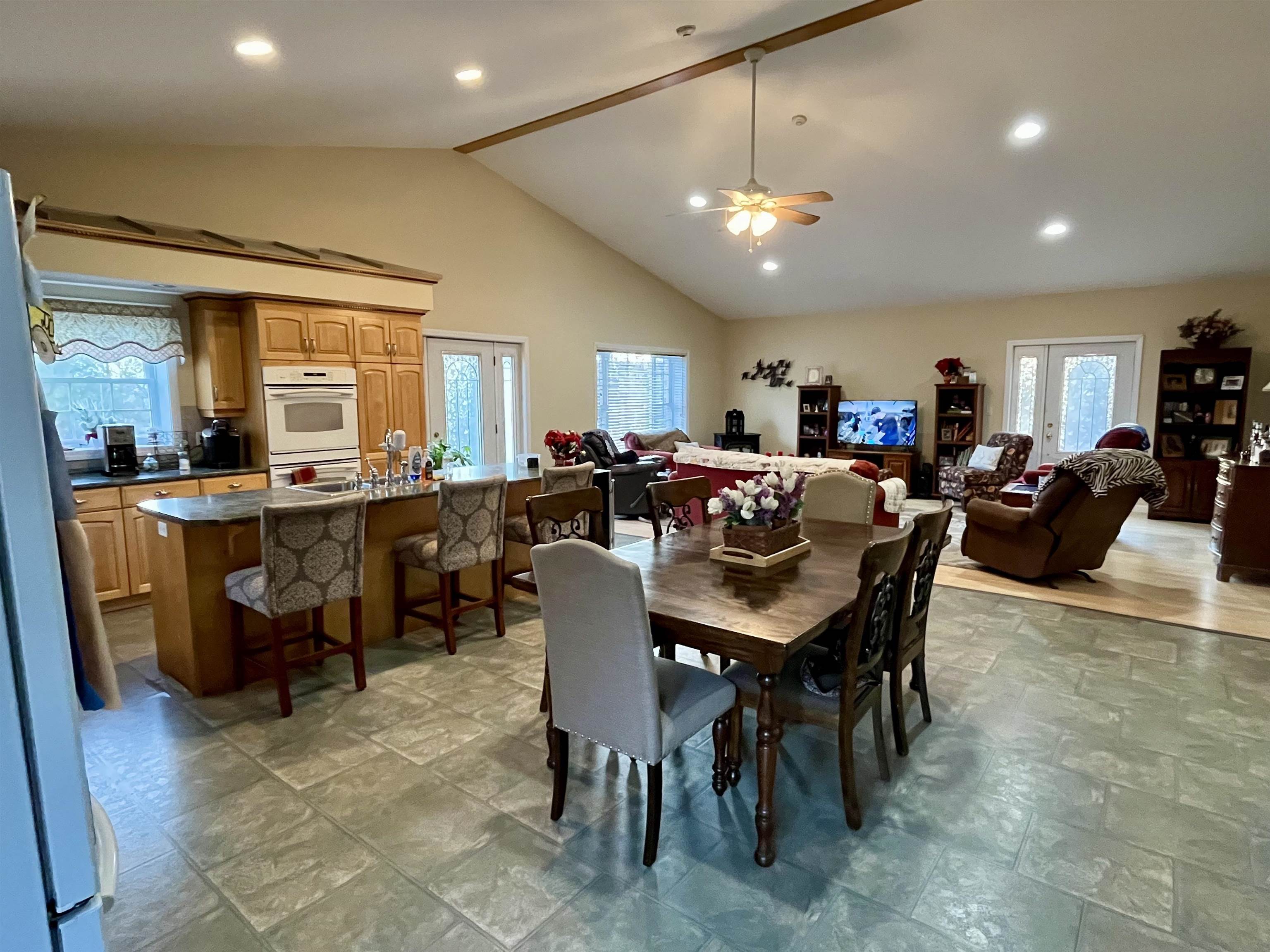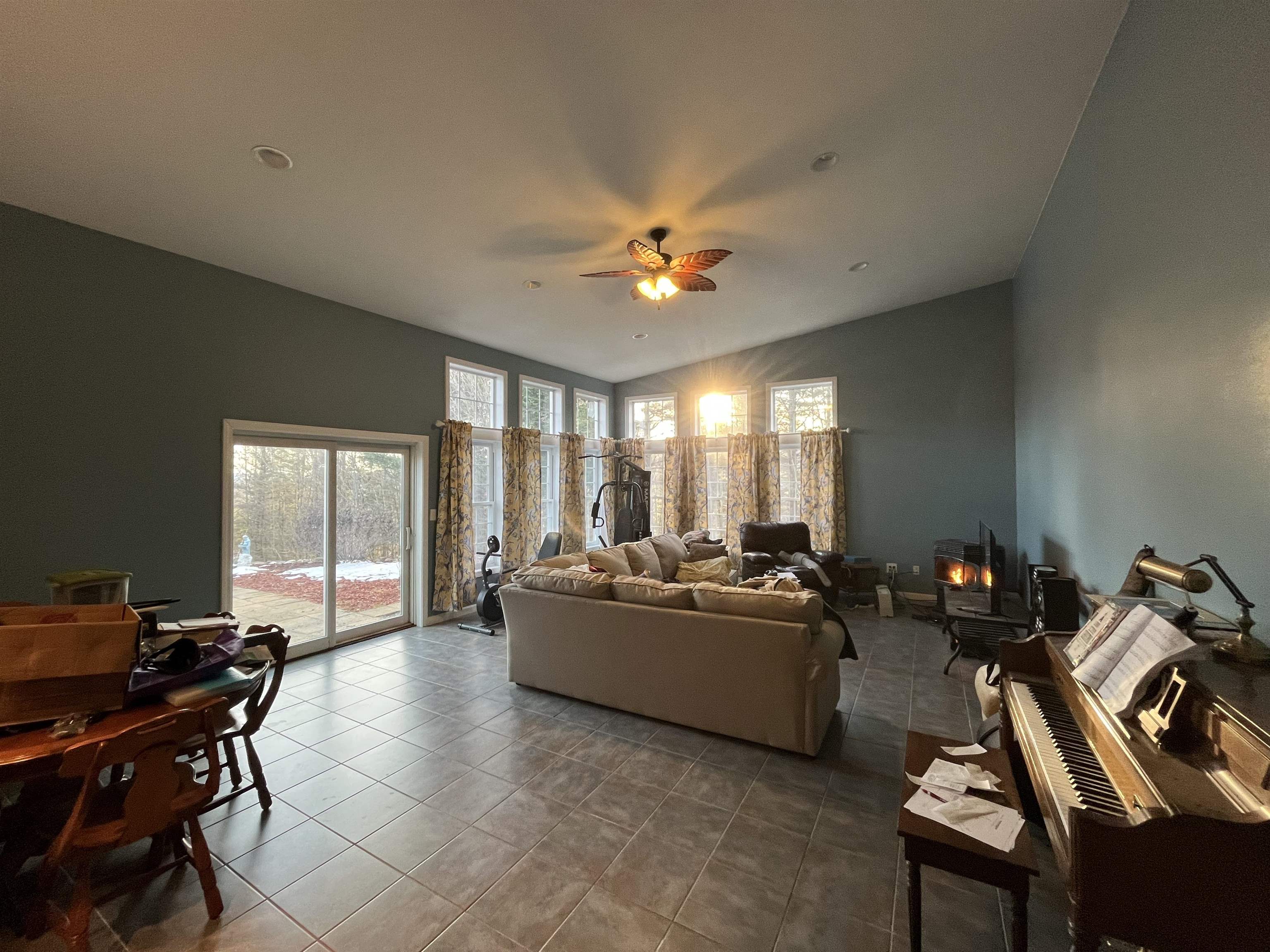 Discover one-floor living at its best in this sprawling "Green Block" built, energy-efficient 4-bedroom, 2-bath ranch set on 3. 61 private acres. Radiant floor heat runs throughout the entire home—including the oversized two-car garage—for consistent, efficient warmth. Two Harman pellet stoves on each end of the home add an extra layer of cozy comfort. As you step inside, you’re welcomed by a bright, open-concept kitchen, living, and dining area with cathedral ceilings and a large picture window showcasing views of the Presidential Mountain Range. In the warmer months, enjoy easy access to the expansive patio—perfect for barbecues, lounging, or peaceful mornings outside. A long hallway leads to all four bedrooms, plus a separate office and a quiet den, offering flexibility for work, relaxation, or guests. Continue on to the spacious sunroom, which also opens directly to the patio. Located in the North Country, this property offers easy access to fishing, snowmobiling, ATV’ing, and endless outdoor recreation. With its thoughtful layout, private setting, and energy-efficient construction, this home blends comfort, functionality, and natural beauty.