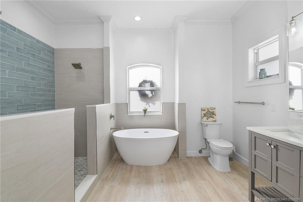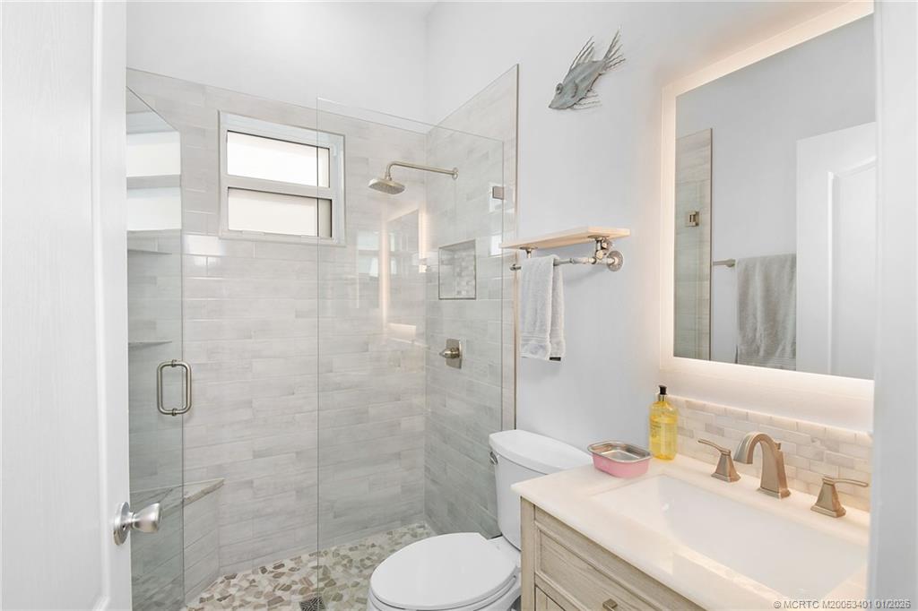 This home has been fully remodeled top to bottom with a new metal roof, impact glass windows, all bathrooms fully custom remodeled with the Schluter wall and floor system and custom tile throughout, newly re-designed pool and spa with Wet Edge interior walls and steps with custom glass tiling, new Kitchenaid refrigerator, washer and dryer, custom impact glass front entry door, and newly re-sanded and sealed paver driveway. Don't miss your opportunity to own an awesome turnkey property in located extremely sought after Jensen Beach, Florida. This home is close to the beach, Indian River for the fishing and boating enthusiast's, worldclass shopping and dining of all kinds within minutes and much more. .