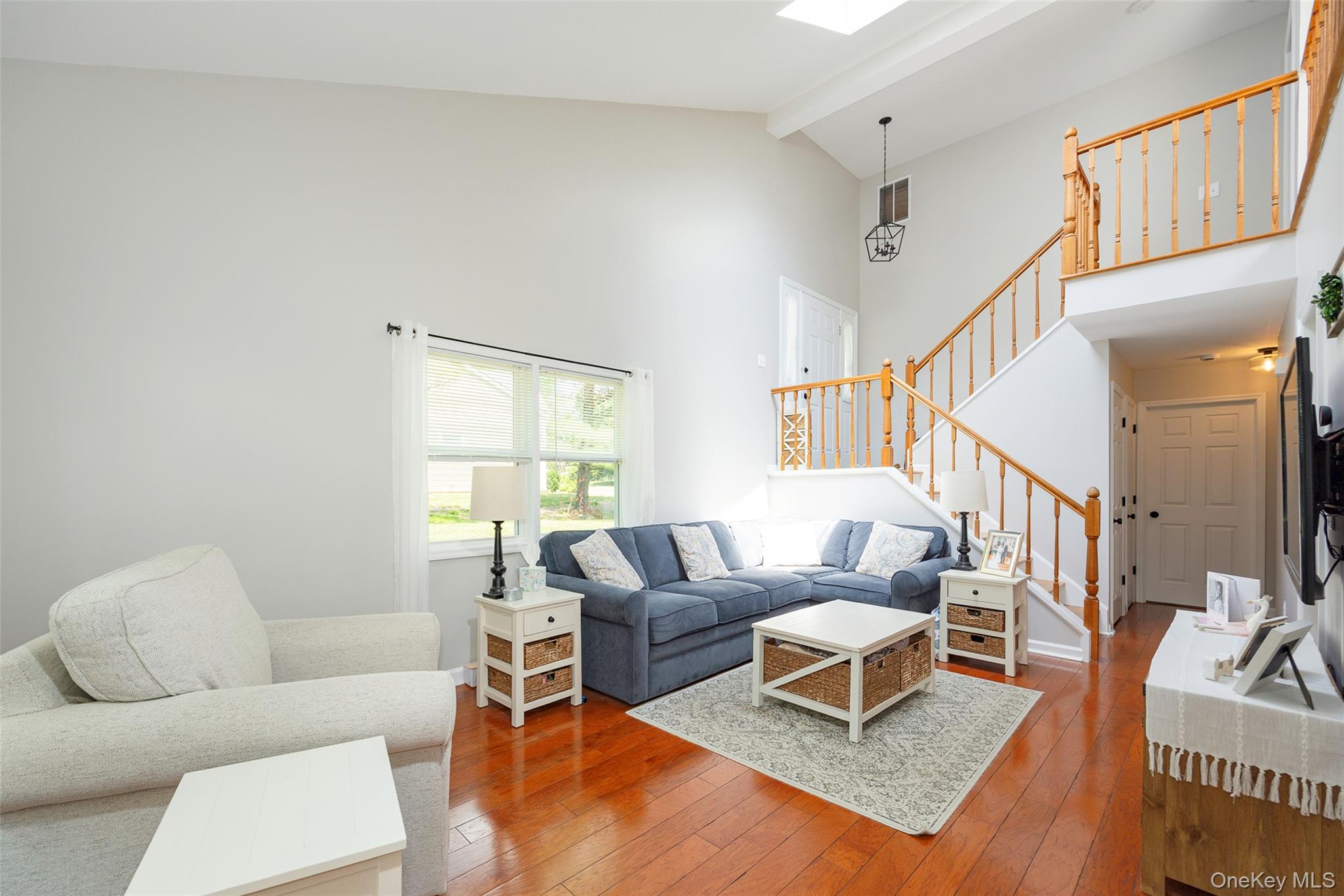 Beautifully maintained and updated 1 bedroom, lives like 2, 2 full bath townhouse in Deer Crossing, a hidden gem in the Town of Fishkill. This is an end unit with a 1 car attached garage with direct access to the unit. Outside you will find beautifully landscaped garden, a great back yard and a new Trex deck. Once inside, the lower level has a great size living room with vaulted ceiling and lots of natural light. Formal dining area with wood flooring and slider doors to back deck. The 2024 updated kitchen has new tile flooring, Quartz countertops, and tile back splash. All new stainless steel kitchen appliances in 2024. To complete the kitchen a new stand alone base cabinet was added for extra prep space. The lower level full bath room was updated in 2023 with vanity and countertop. New tile floor in the laundry room was installed in 2023. The lower level also has a bonus room, great for guest room, or home office with new carpeting in 2024. Interior garage access is located by the laundry room. First floor laundry. On the upper lever there is a great loft area perfect for TV room or play area. The spacious primary bedroom with crown molding accent, en suite full bathroom and walk in closet provide a great space to relax in. During the summer months you will enjoy the community pool.