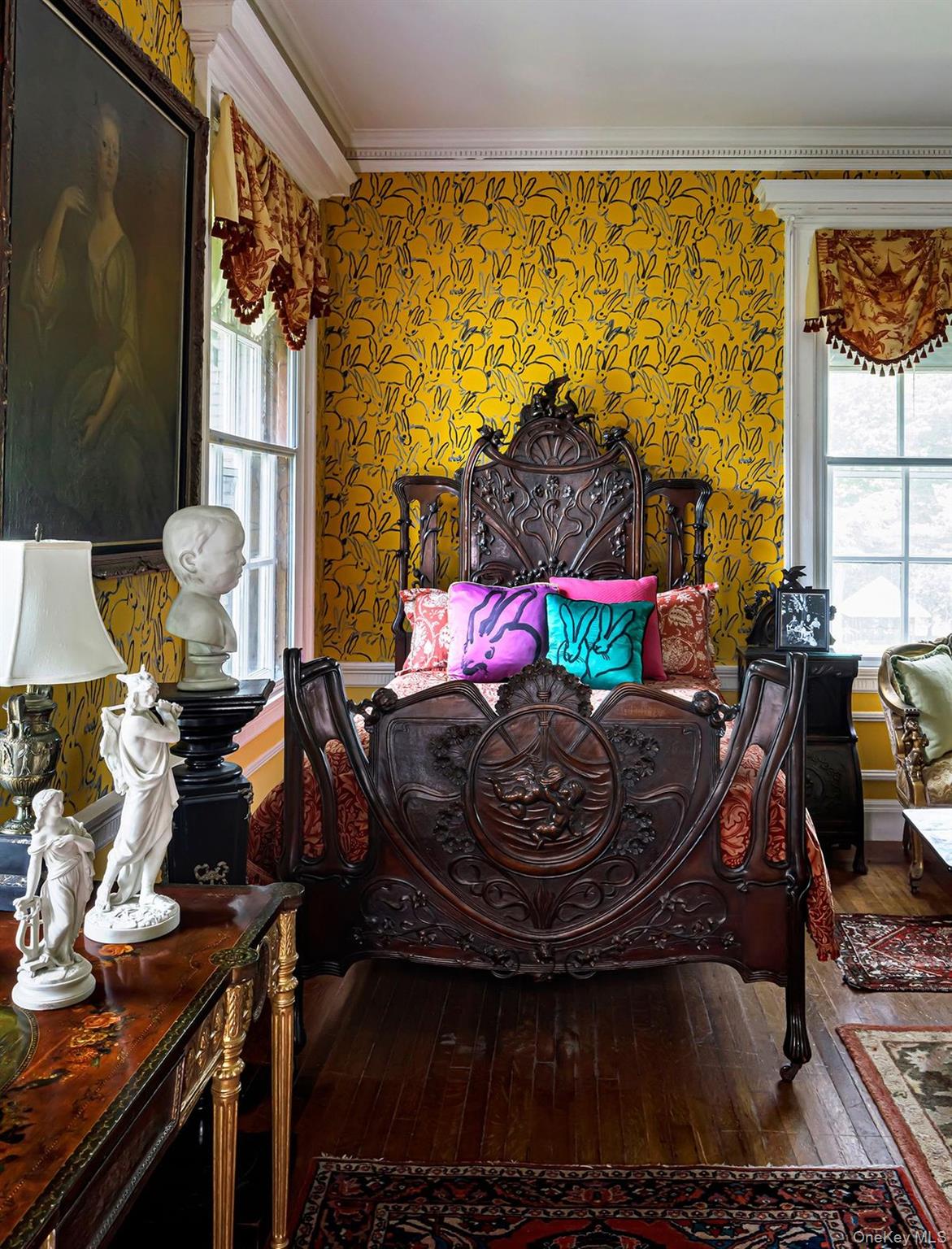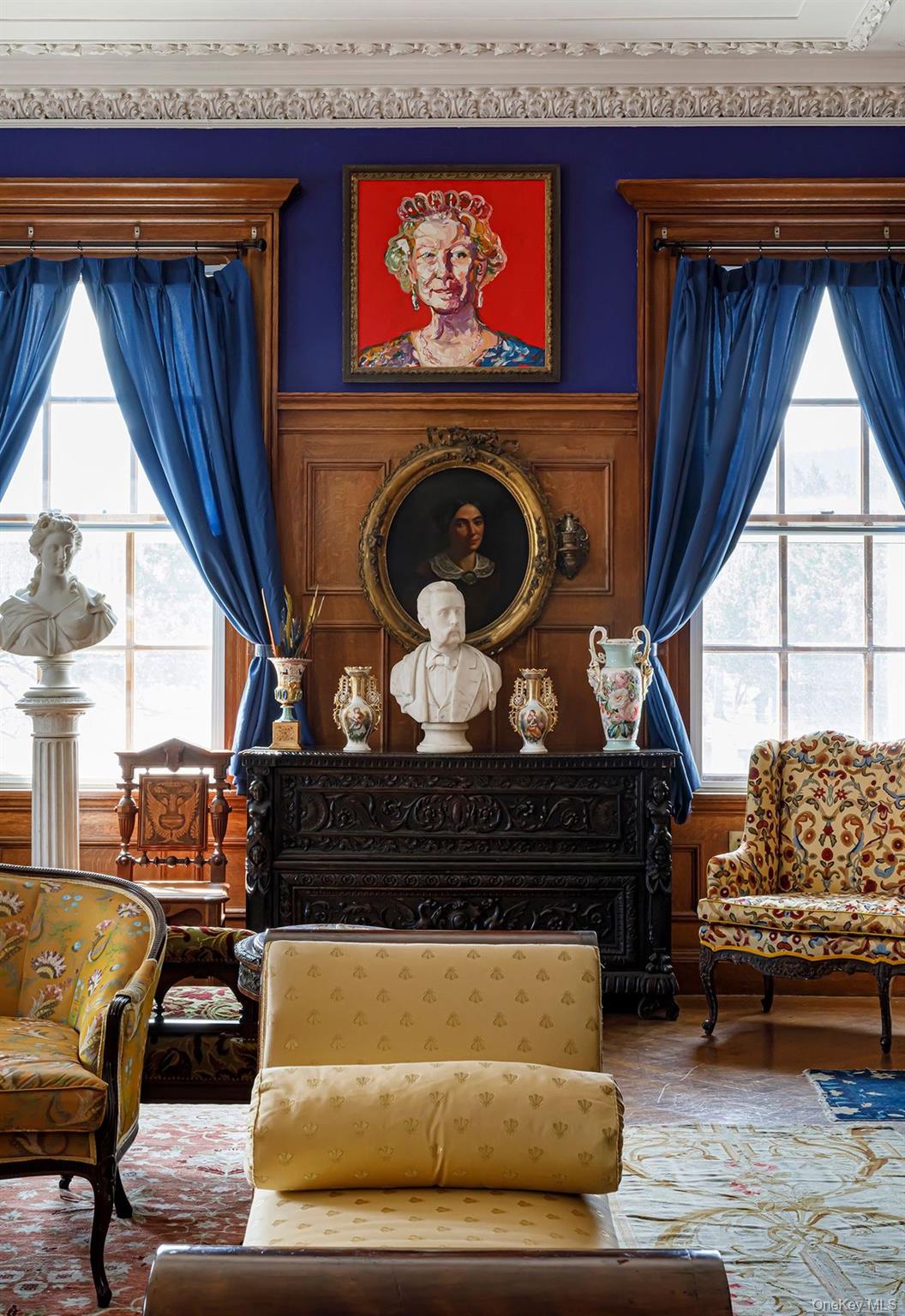 Belle Terre, a sprawling, forty acre Gilded Age estate in the quiet wilderness of the Catskill Mountains. The c1906 Georgian manse was first built as a summer home by copper baron James McLean. The stunning 30, 000 square foot home is complete with a private lake and bucolic, rolling hills—ideal for fox hunting and sport, which is what McLean had in mind when building it. Most recently used as a private residence for notable artist Hunt Slonem, this fantastic estate property is a rare opportunity to own a piece of history. Its storied past is as impressive as the architecture-- Eleanor Roosevelt, a frequent guest and friend of McLean’s daughter, once hosted a party on this site for 6, 000 guests. You'll find many original details within the sprawling residence, moldings and floor boards, an elaborate stairwell & even the original elevator remains operable. An architecture aficionados delight, under 3h to NYC and a world away.