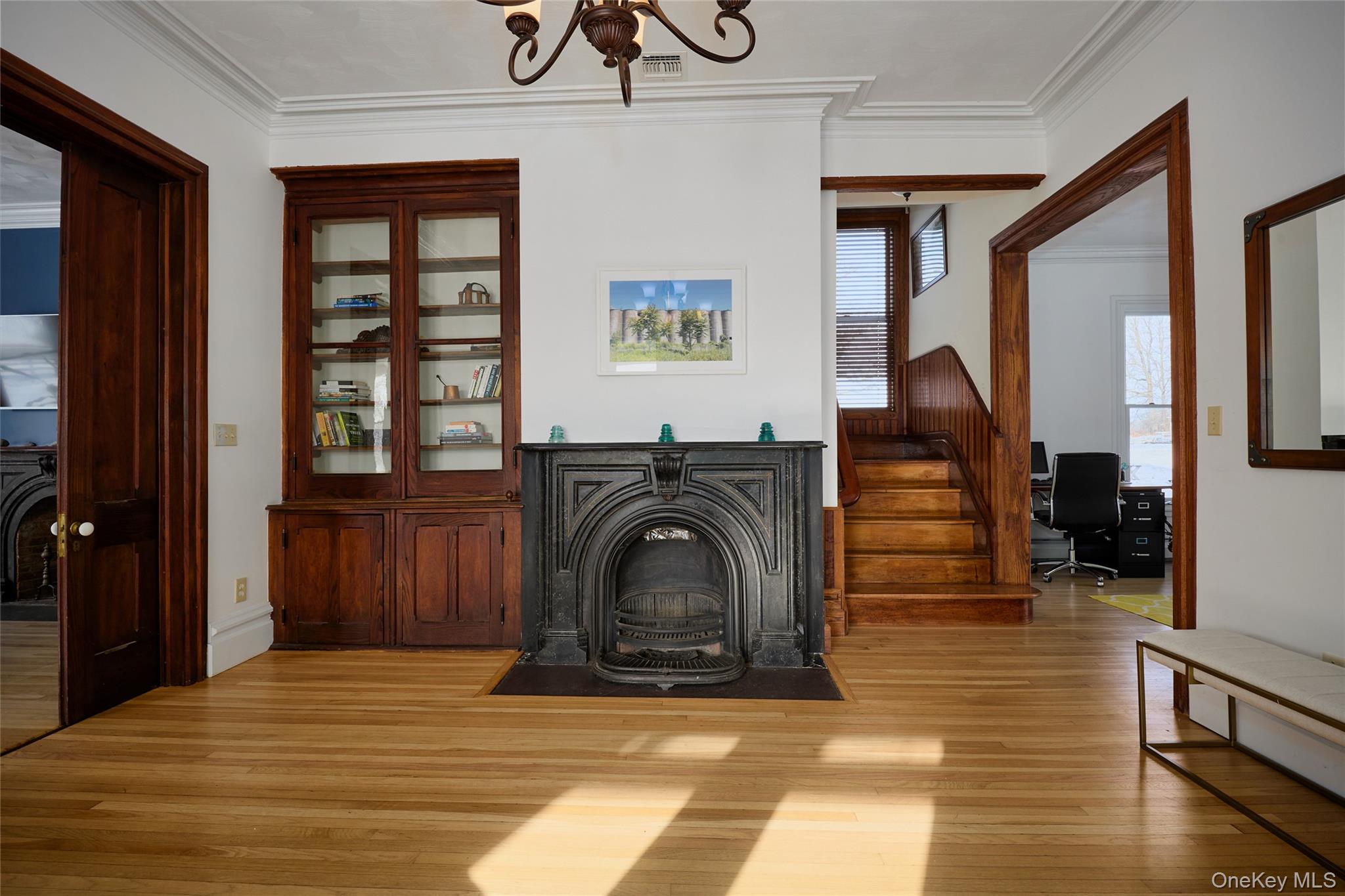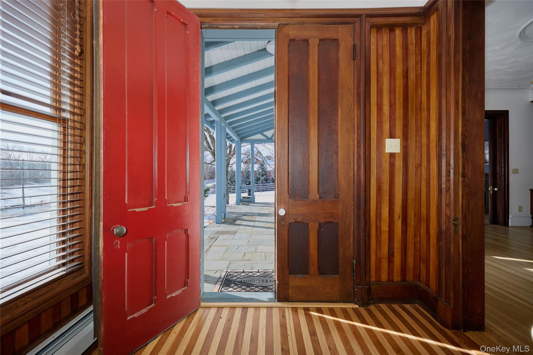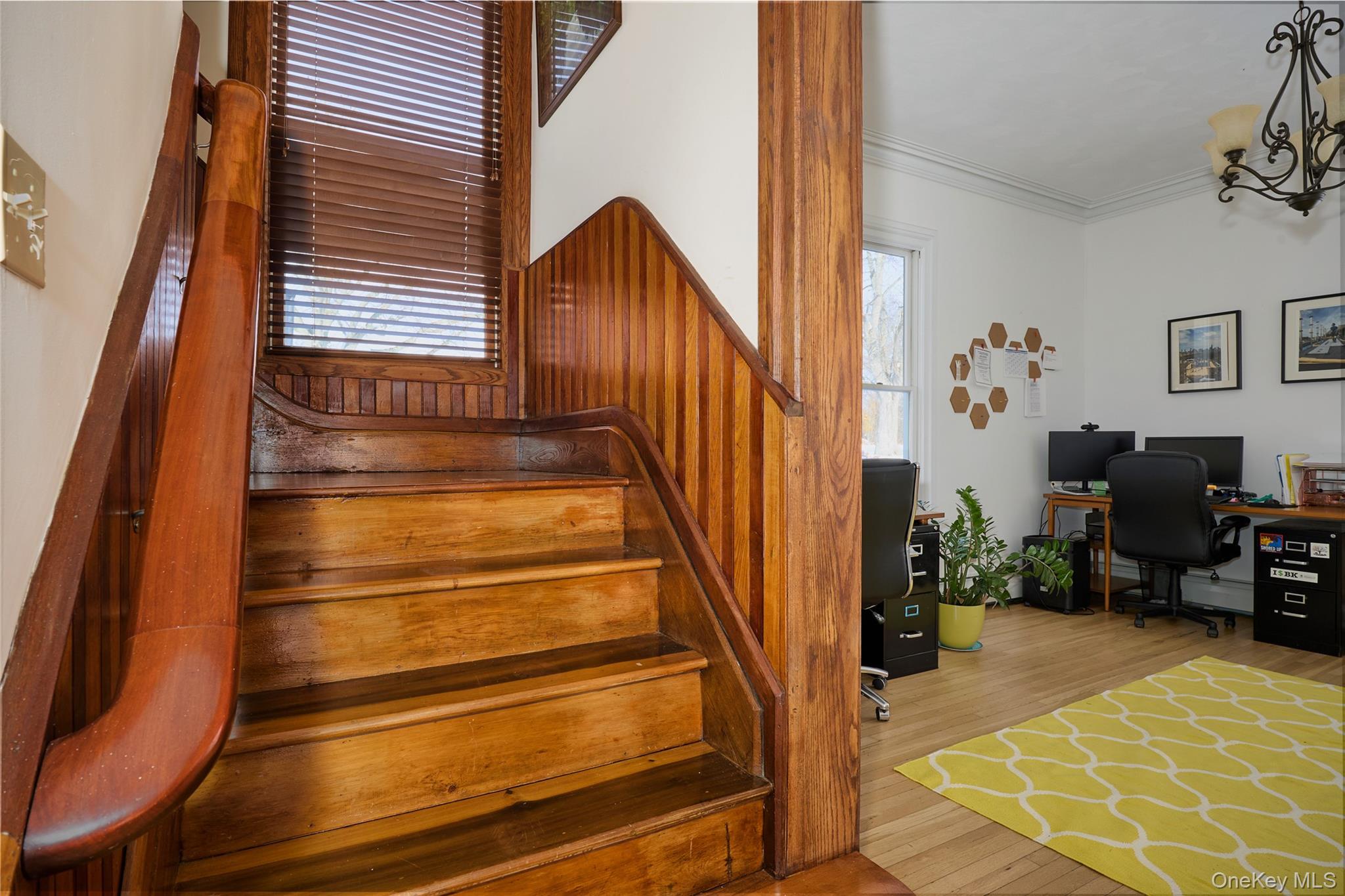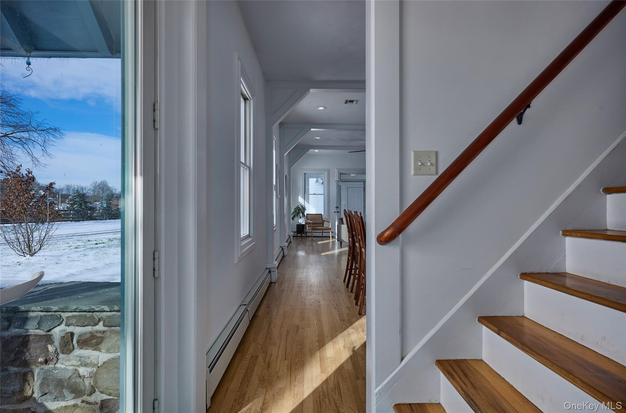 Set atop a gentle hill with sweeping eastern views of Round Hill and Schunnemunk Ridge, this pristine 1860 farmhouse blends preserved historic character with thoughtful modern updates. Originally part of the Sears family dairy pasture, the 3, 866 sq ft home has been meticulously maintained and features original wide-plank hardwood floors, a striking hand-carved banister, five fireplaces with original wooden and stone mantles, 10' ceilings, and large sun-filled windows throughout. The main level offers two gracious living rooms, a formal dining room, a dedicated office, and an updated kitchen outfitted with a Wolf range, cherry cabinetry, generous storage, and a walk-in pantry. A dedicated first-floor laundry room adds convenience. Upstairs are four spacious bedrooms and two full bathrooms, including a generous primary suite with a large walk-in closet and a 5-piece ensuite bath. These spaces reflect the thoughtful renovation completed in 2014 by previous owners, which also included a living room extension, upgraded kitchen, and a 1, 250 sq ft three-car garage designed to complement the home’s historic profile. The lower level is just as impressive. The dry, clean basement contains a unique wine-tasting room set against the original hand-stacked stone foundation, offering a charming and unexpected entertaining space. The 5-acre property offers level, usable land framed by mature native trees—including two historic Linden trees dating to the late 1800s—and expansive lawn. In 2022, the owners installed an 8, 000 sq ft organic vegetable garden complete with deer fencing and a full irrigation system, creating a highly productive and beautiful outdoor space. Additional improvements include new trees and screening, newly added parking, a ground-floor repaint, refinished wood floors, an EV charger (CCS), and the conversion of the former stable into a functional workshop. Three outbuildings expand the estate’s potential for creative, professional, or commercial work. The 3, 036 sq ft workshop is fully equipped with 6" concrete floors for heavy machinery, 220V power, propane heat, ventilation systems, a bathroom with independent septic, and a four-bay garage. The 1, 300 sq ft former stable has been transformed into another heated workspace with 220V power, a kitchenette, a sink, and large sliding barn doors for easy access. The charming 144 sq ft red barn, believed to predate the house and possibly dating back to the 1700s, features traditional mortise-and-tenon joinery and hand-tooled beams. Today it serves as a functional landscape shed while retaining its historic character. History runs deep on the property. The grounds include the historic Sears Cemetery, an 11-memorial family graveyard with stones predating the home's construction. Among those buried here is Hector Craig, a U. S. Congressman and father-in-law to William Havemeyer, part of a family central to the development of early Washingtonville. A rare opportunity to own a fully modernized historic estate, this property seamlessly merges historic integrity, architectural detail, and contemporary comfort across home, land, and workspaces. One Hour to NYC, Close to All Transportations, Dining, Hiking, Shopping and other Conveniences.