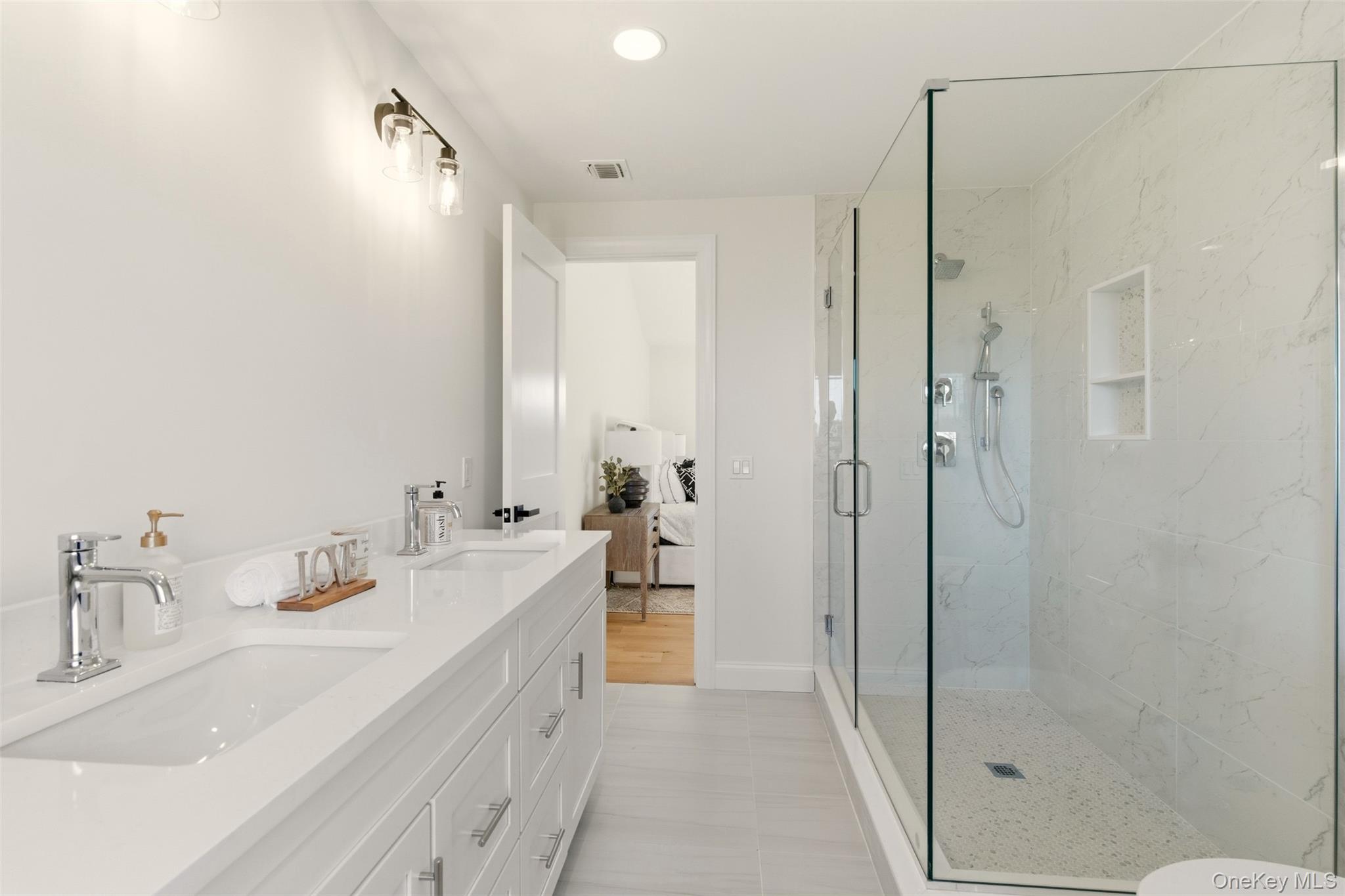 Brand new and just completed, this ultra-custom turnkey masterpiece represents the quintessential North Fork lifestyle. A masterfully crafted estate home uniting rustic authenticity with modern ultra-luxury on an exceptionally secluded, oversized mega lot. Tucked back 800 ft. from the road and immersed in nature with a canopy of mature trees and native plants, you will feel world’s away – yet you are right down the block from the famous Grana restaurant, numerous farmers markets, and world-class wineries! The home is dripping with luxury appointments: Arctic White Hardie plank exterior, black Pella Lifestyle windows, a dramatic open-concept, modern colonial first floor plan with 6-inch-wide plank white oak floors, a bespoke chef's level kitchen, a Cambridge quartz island with designer 2. 5” mitered edge paired with a gorgeous full-height backsplash and double-stacked premium cabinetry. The second floor features a spacious primary bedroom suite with a magnificent spa bath as well as large secondary bedrooms, each with a walk-in closet. The massive lower level, featuring 10 ft. ceiling height, chic plank flooring, an exterior entrance, and three egress windows, is ready for your dream space idea. The property's vast grounds are also extraordinary, with a 20’ x 40’ heated saltwater pool, a custom-designed masonry patio and grilling station, and a built-in masonry fire pit, all of which overlook countless acres of open space. Available for immediate occupancy or secure the home now and close in the Spring, your choice. Will not last!