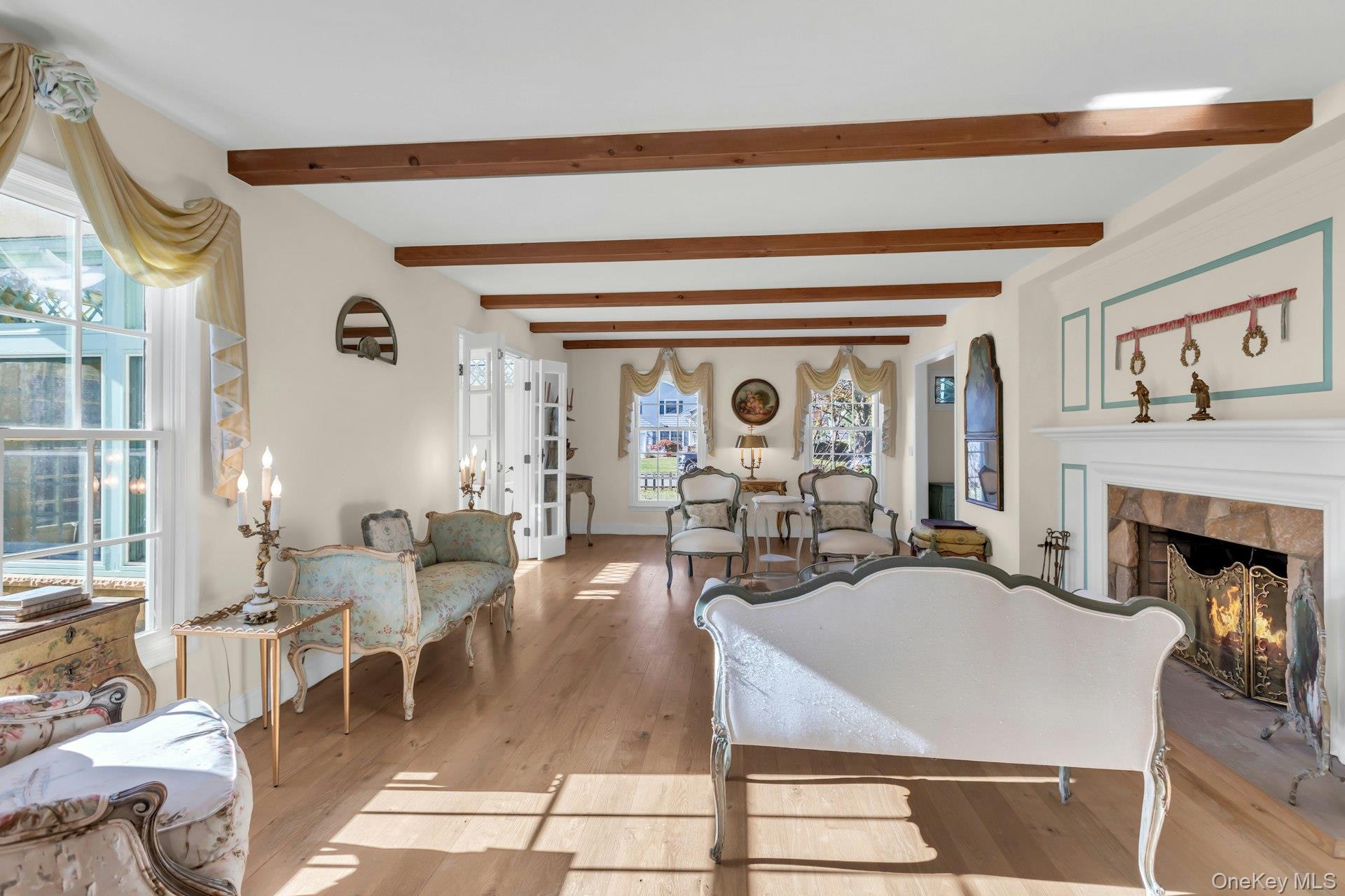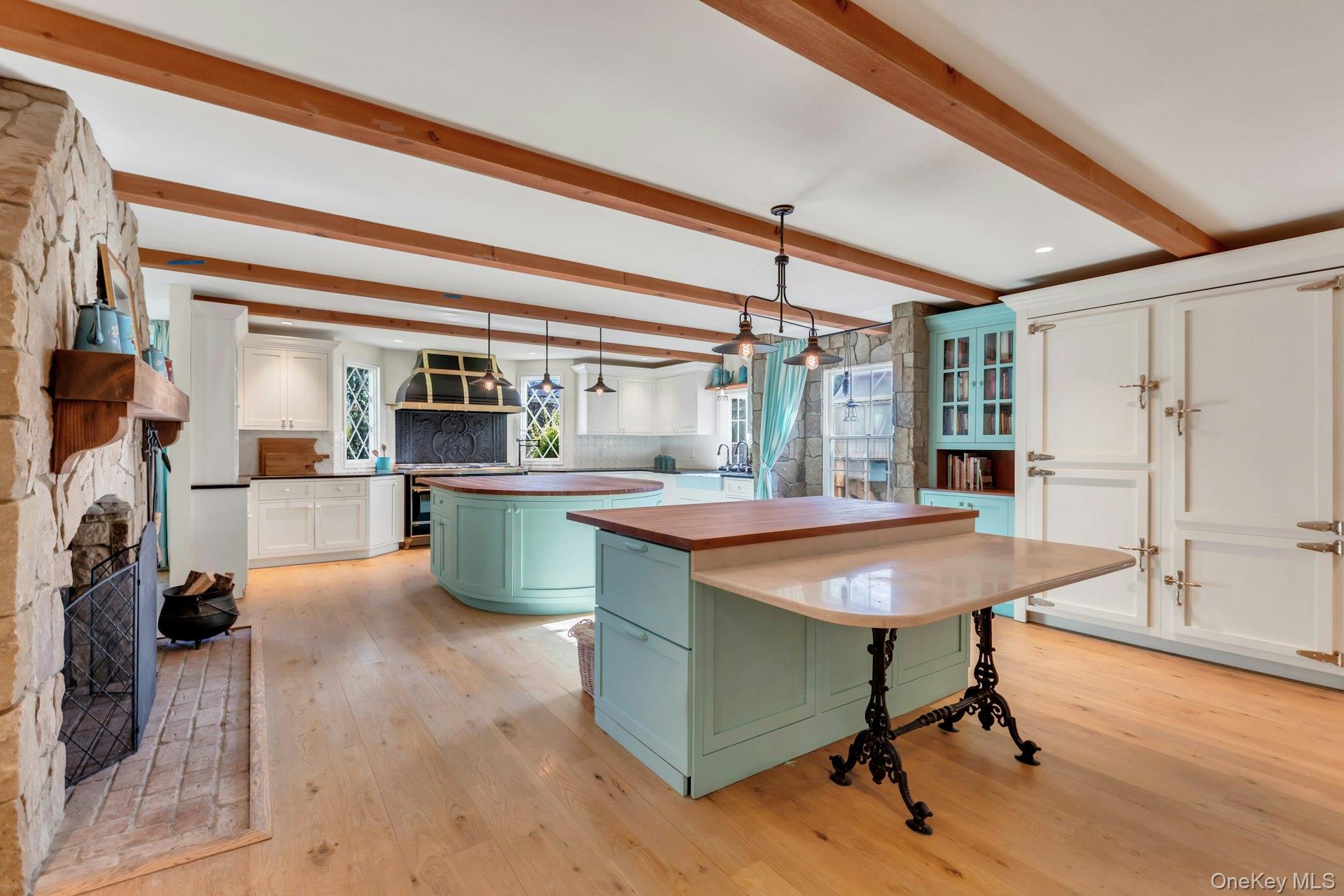 Storybook Tudor-A Fairytale Retreat with Carmel-by-the-Sea Charm right here in South Bayport. Just 5 houses from the Bayport beach, step into a world of storybook elegance with this extraordinary 3-bedroom, 3. 5-bath architectural masterpiece inspired by the enchanting homes of Carmel-by-the-Sea, California. Every detail of this residence exudes artistry, craftsmanship, and timeless sophistication — a perfect blend of European romance and modern luxury. From the moment you arrive, the home’s cedar shake roof, detailed windows, and Dutch front door invite you into a warm, character-filled sanctuary. Inside, white oak character plank floors flow throughout sunlit spaces adorned with antique French lighting and bespoke design details. The heart of the home is the chef’s kitchen, a true culinary masterpiece. Designed for both gourmet cooking and artisan baking, it features Italian slate countertops, dual cherry wood islands, and a dedicated Botticelli Italian stone baking island supported by antique French circa 1860 table legs. Enjoy a 60-inch ILVE range with brass fittings beneath an industrial brass-trimmed hood, a Sub-Zero refrigerator and freezer, Bosch Benchmark dishwasher, wet bar, pot filler, and dual under-counter refrigerator drawers and microwave. A walk-in pantry and farm sink with hands-free faucet complete this dream kitchen. The den/great room impresses with 20-foot ceilings, hand-laid stone fireplace and abundant natural light, creating an inviting space for both relaxation and entertaining. A bonus room serves perfectly as a craft studio or playroom, while a dedicated exercise room and home office offer flexibility for today’s lifestyle. These rooms can easily become bedrooms if in need of more sleep space without sacrificing living space. Suitable as an en suite / in-law space as well. The south-facing sunroom, adorned with antique French tile flooring, provides a serene setting for morning coffee or afternoon tea, basking in gentle natural light. The primary suite is a romantic retreat, featuring vaulted ceilings, parrot-style windows, dual walk-in closets, and a dedicated makeup area. The spa-inspired primary bath includes a clawfoot champagne soaking tub and a Herbeau faucet shaving stand, blending antique beauty with modern comfort. Two additional bedrooms each offer walk-in closets and thoughtfully curated finishes. For a bit of whimsy, you will love the hidden spiral staircase leading to a cozy attic nook. Oh and lets not forget the He Shed-She Shed with adjoining hot tub room. Throughout the home, antique lighting, handcrafted details, and authentic materials create a sense of history and artistry rarely found in modern builds. This is more than a home — it’s a one-of-a-kind sanctuary where fairytale charm meets refined living.