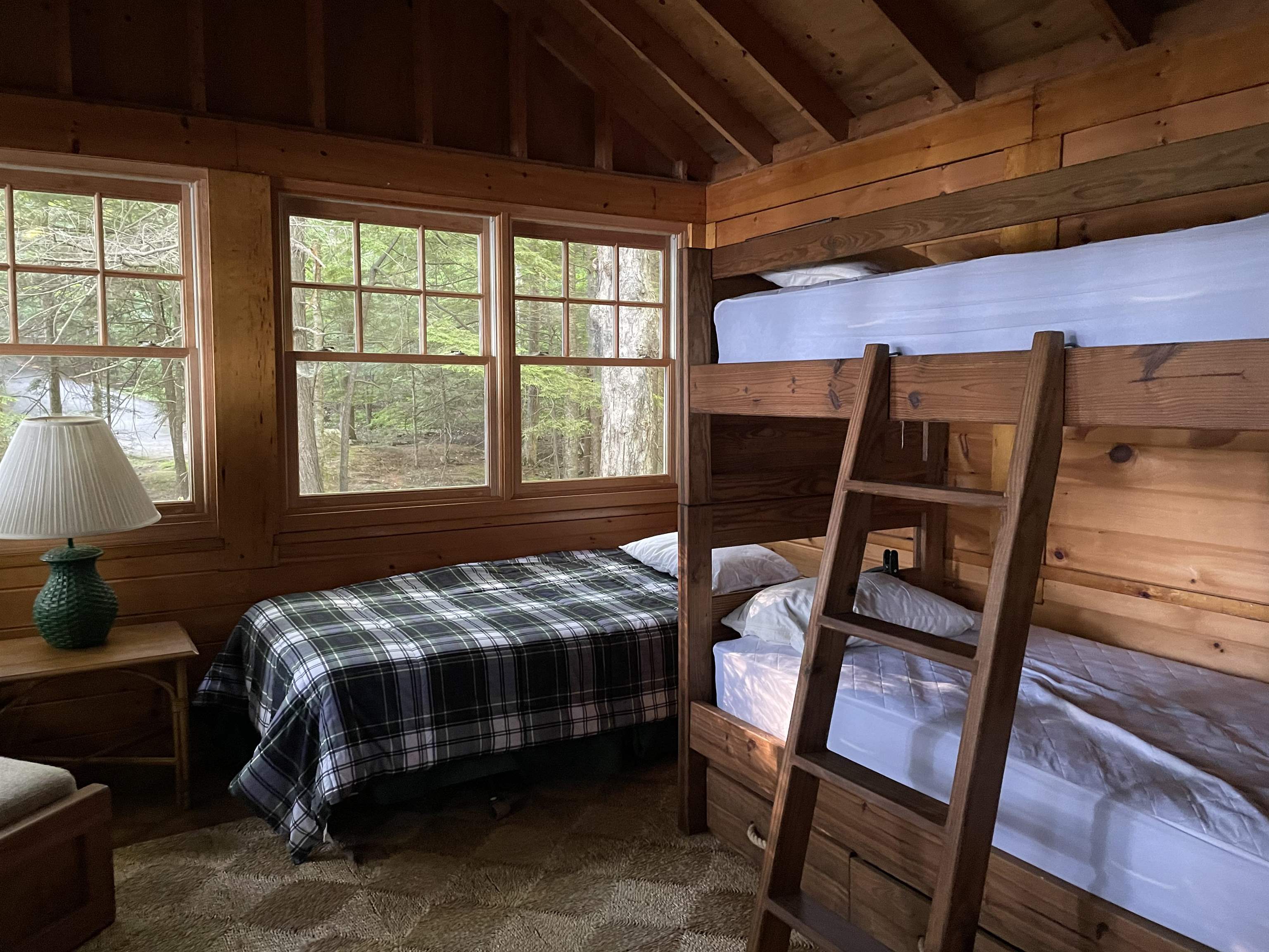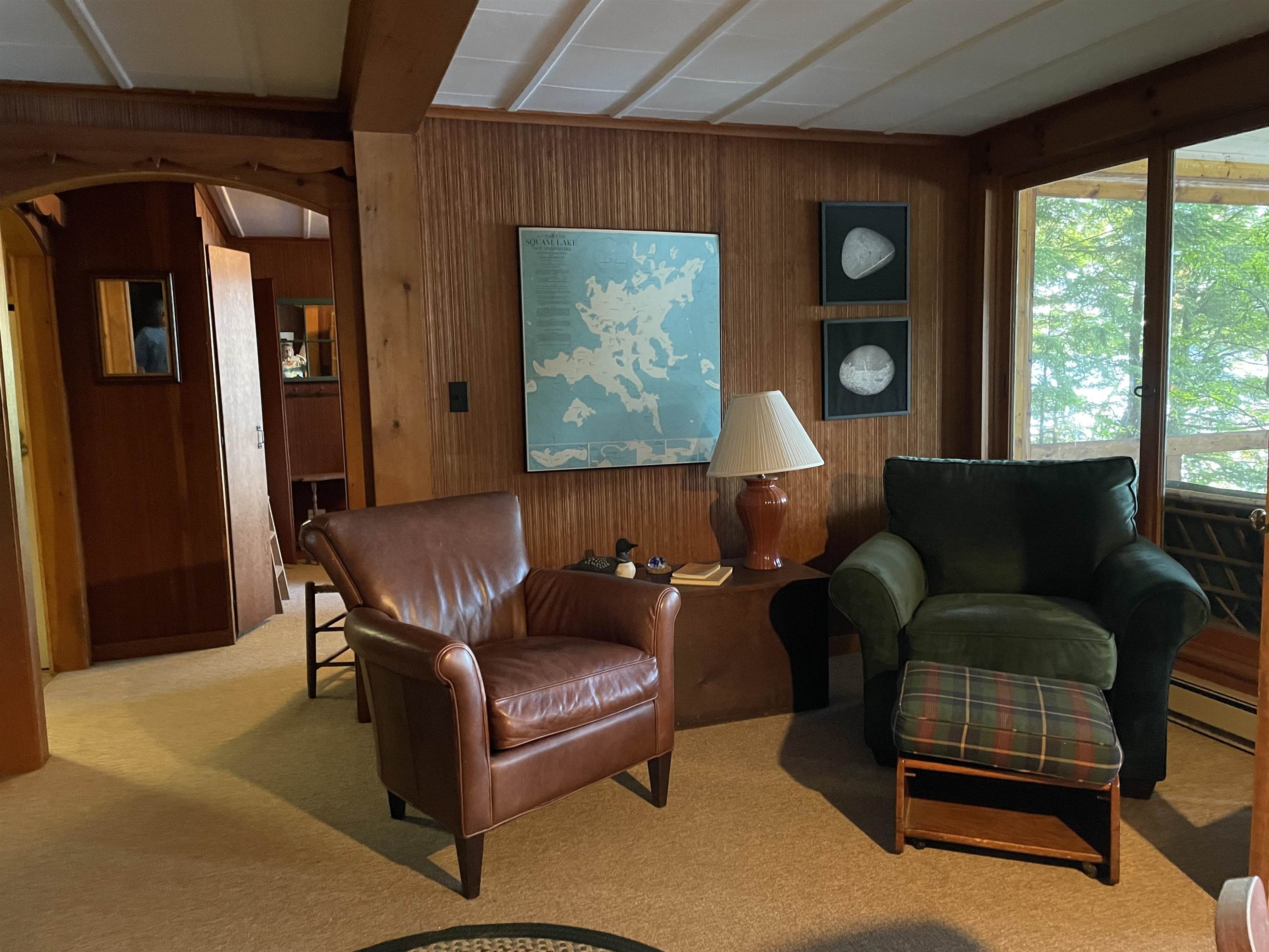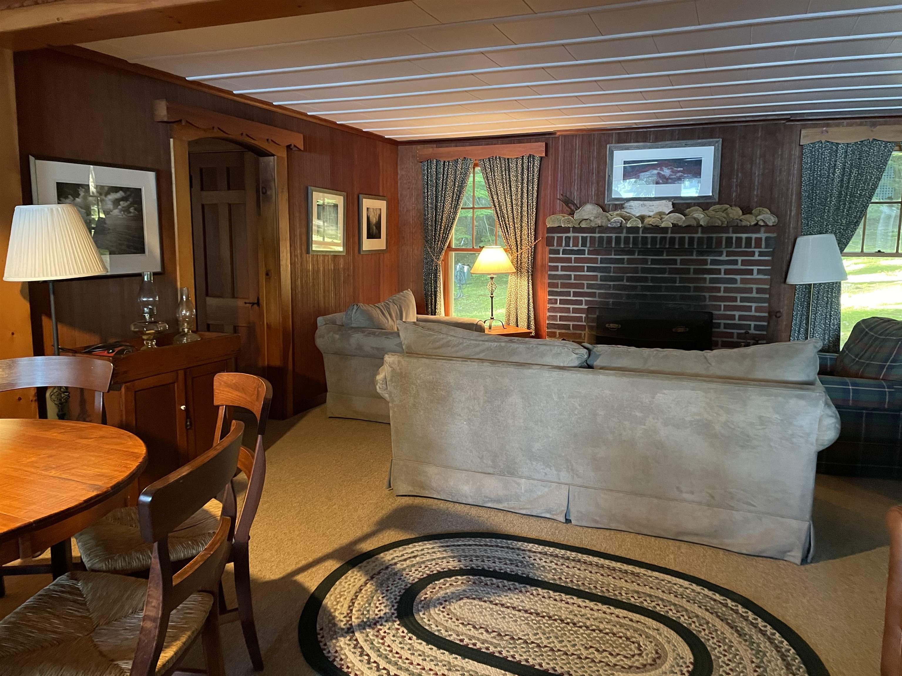 Weekly vacation rental. This property includes two cottages with a total of five bedrooms. The main cottage has two bedrooms, living room with fireplace, kitchen, full bath and a screened porch. The second cottage has three bedrooms, a kitchenette and bathroom. There is a screened porch and a large sitting area at the water's edge. The sandy bottomed waterfront is accessed from steps off the sitting area or off the dock. Price includes tax and fees. Excludes $500 security deposit. NH R&M license# 061384