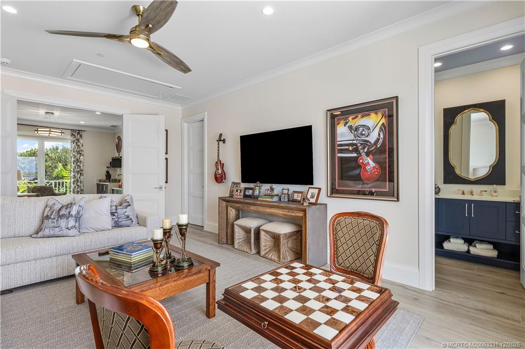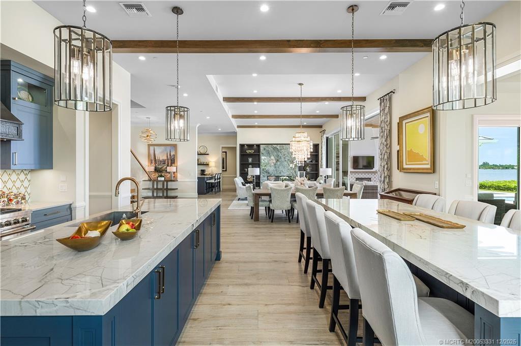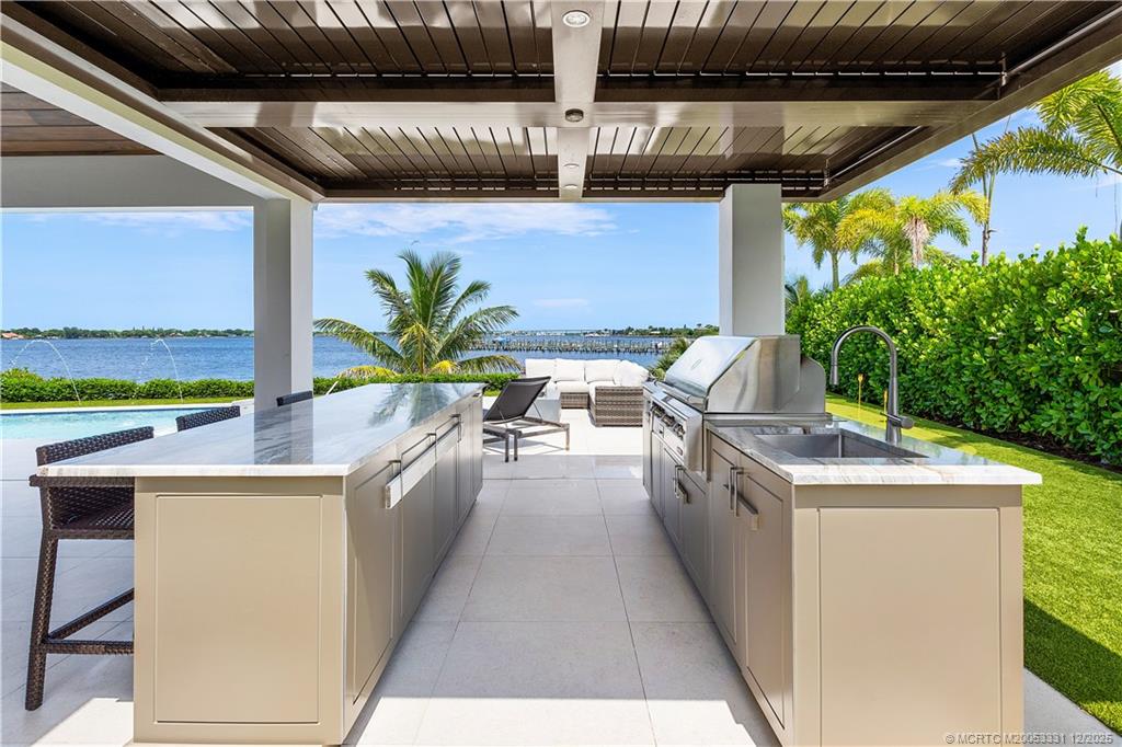 Discover Le Lucienne in the incomparable Floridian National Golf Club. Breathtaking St. Lucie River views w/ direct ocean access. This flawless custom residence features soaring ceilings, abundant natural light, & gourmet kitchen with top-tier appliances flowing into spacious living/dining areas—all overlooking the pool & river. Serene ground-floor primary suite offers panoramic river views, spa-like bath, his/her closets, & private patio access. Upstairs: a refined sitting area w/ wet bar & 3 en-suite guest rooms, maximizing stunning water vistas. Outdoor paradise includes a grand loggia w summer kitchen, gas fire pit, resort-style pool, & private putting green. Undoubtedly, a refined experience unlike any other. Four climate controlled garages spaces w lifts in two of the bays.