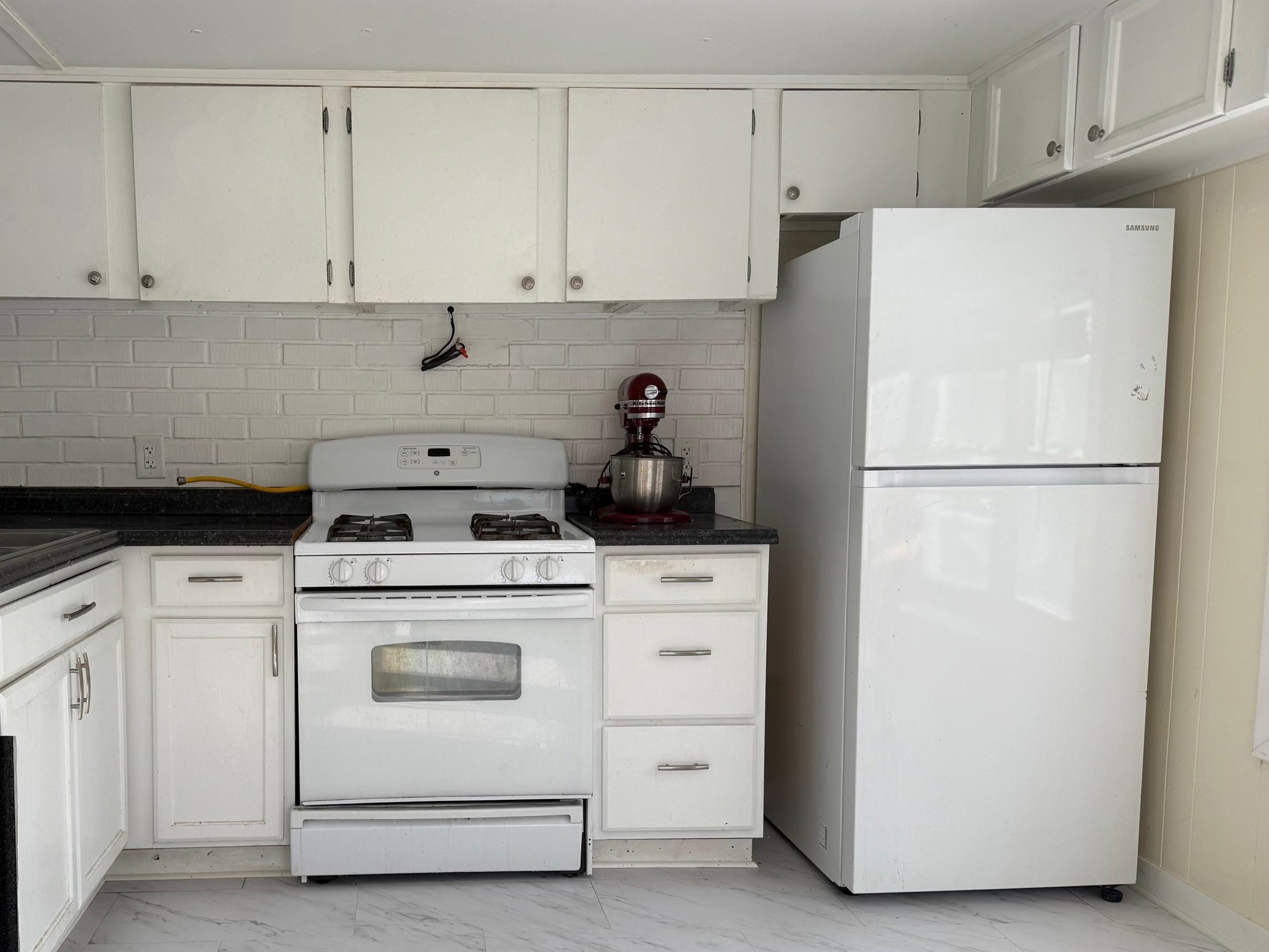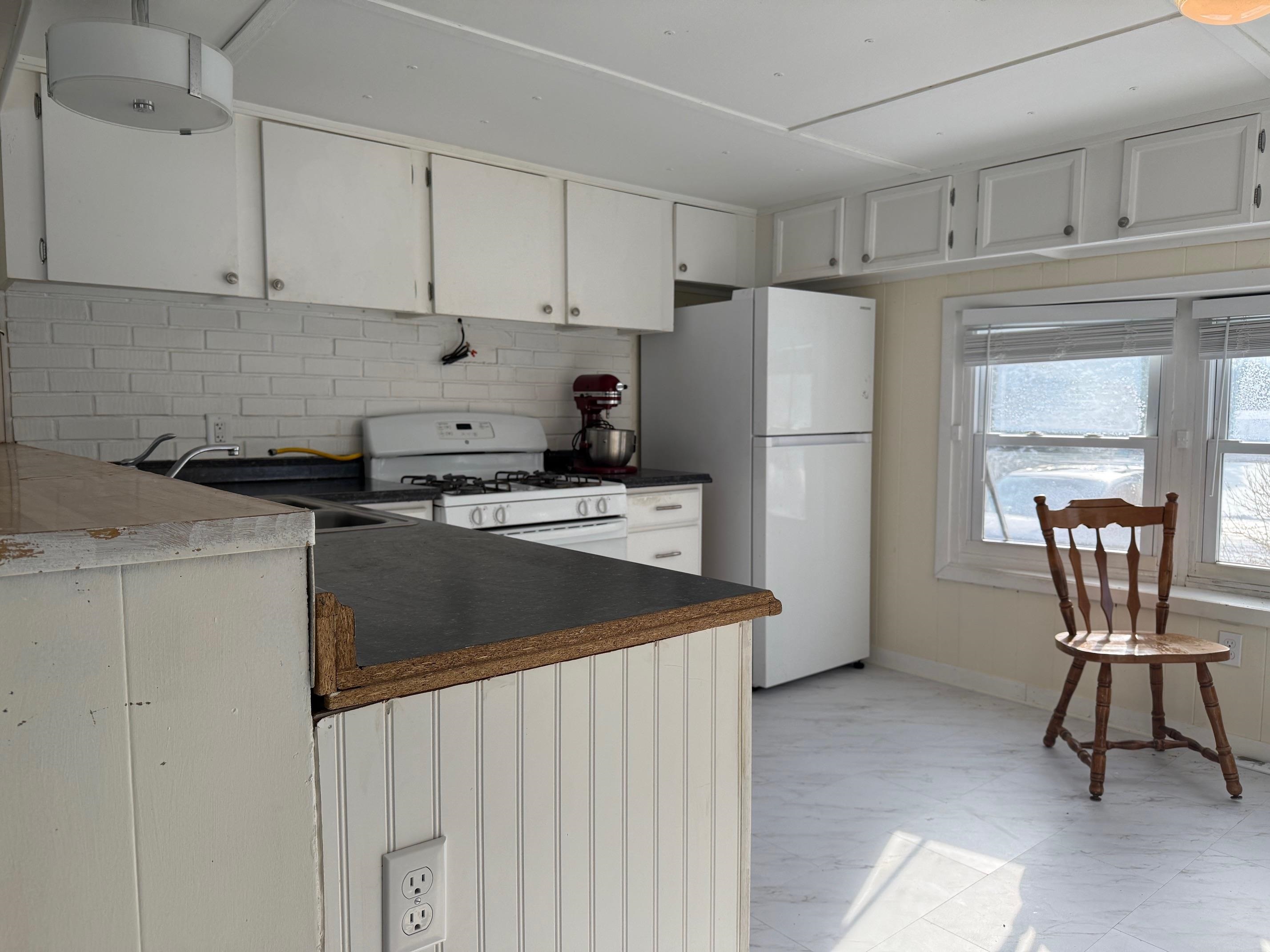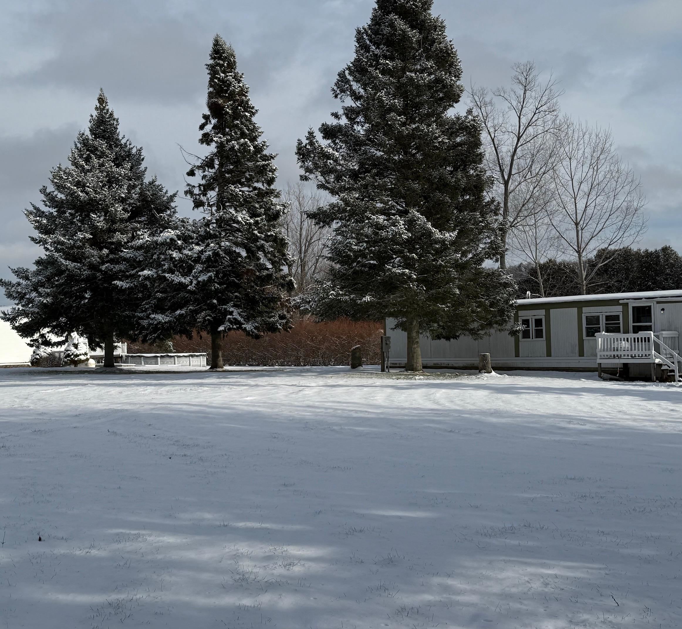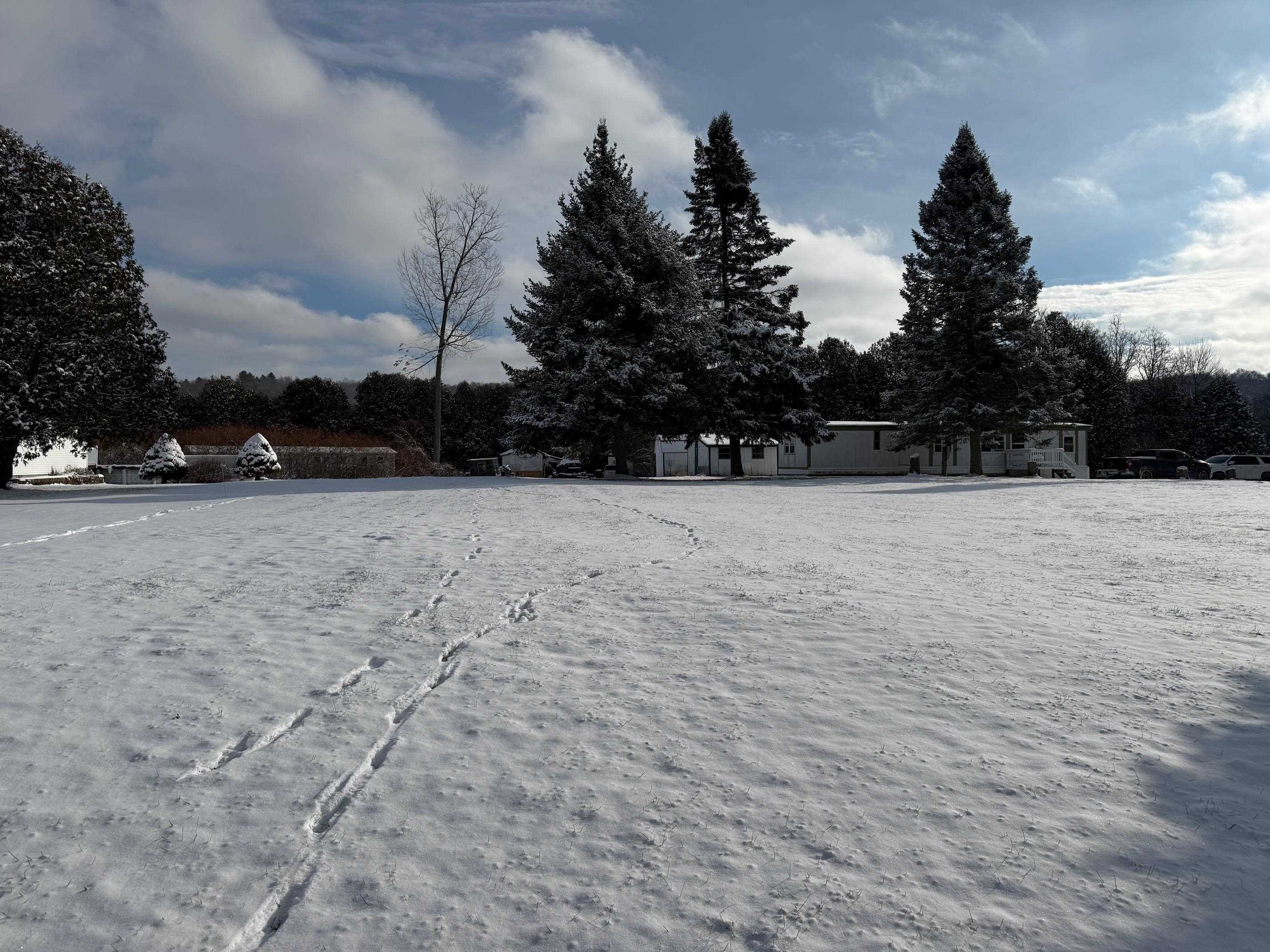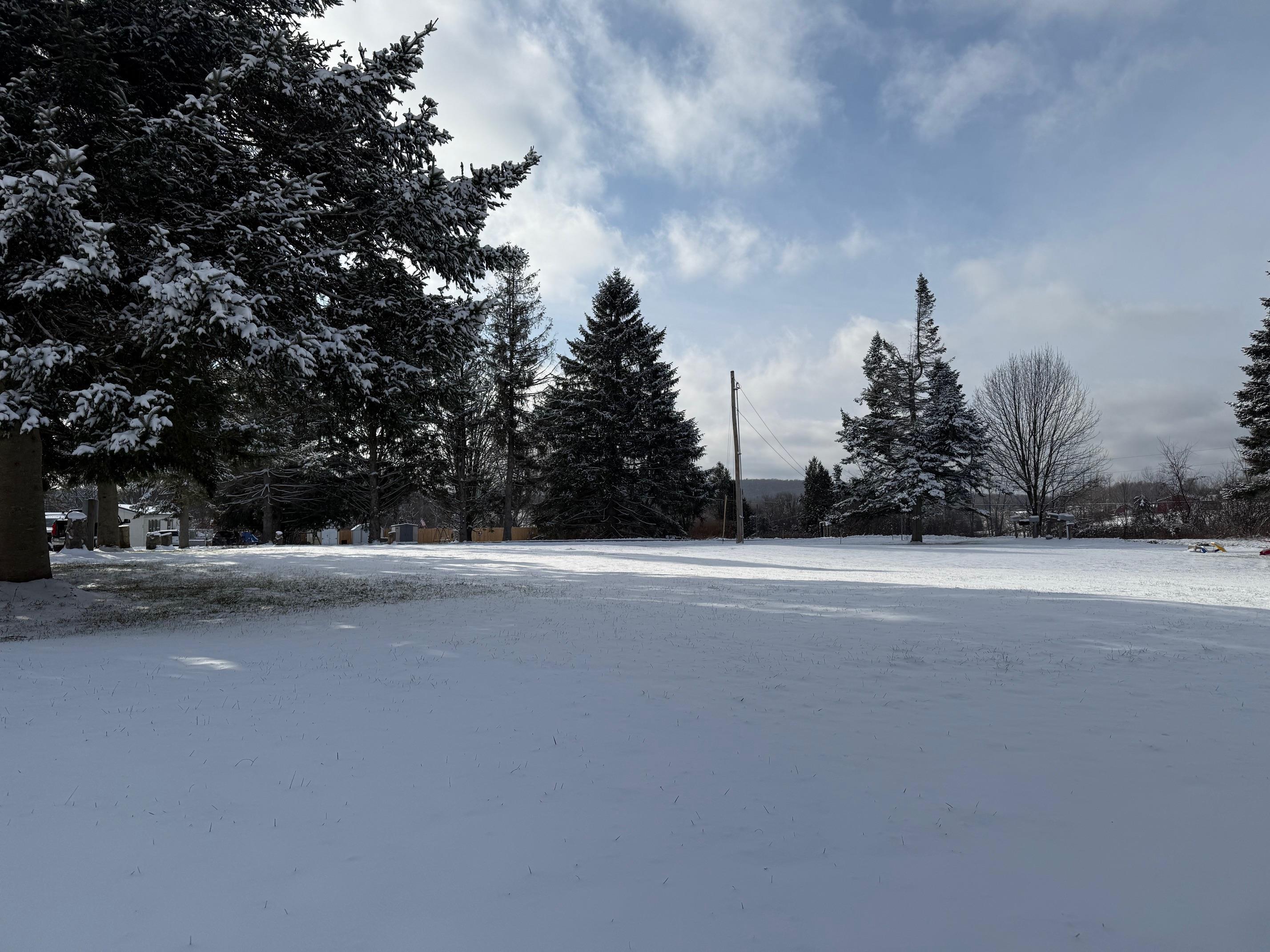 OWNED LAND! This level and mature corner lot is . 88 acres and fully improved with an onsite 1, 000 gallon septic and leach field, community water ($45/month), and a 1976 2-bedroom mobile home. The lot is so spacious and cleared to enjoy. There are two storage sheds onsite and parking for 2+vehicles. The exterior is metal with a metal roof, double plane windows. The home sits on a slab, has tie downs, insulation, new skirting installed 2023, and heat tape. The home has newer carpeting, plywood subfloor in living room and hallway, and vinyl plank in the dining room. Appliances included: washer, refrigerator, gas range. The kitchen does have a spot to hook up a dishwasher. High efficiency furnace is approximately 3. 5 years old. Use as is, or plan to build in the future!