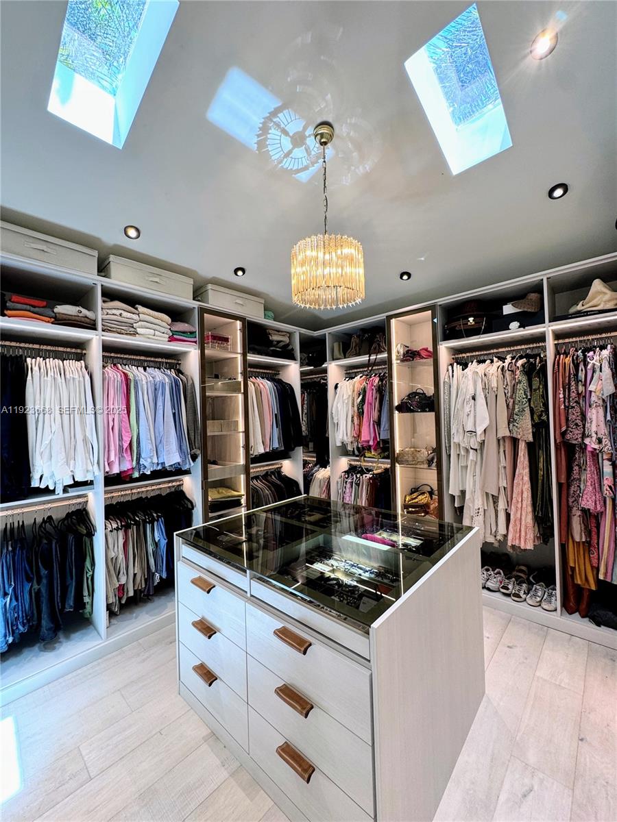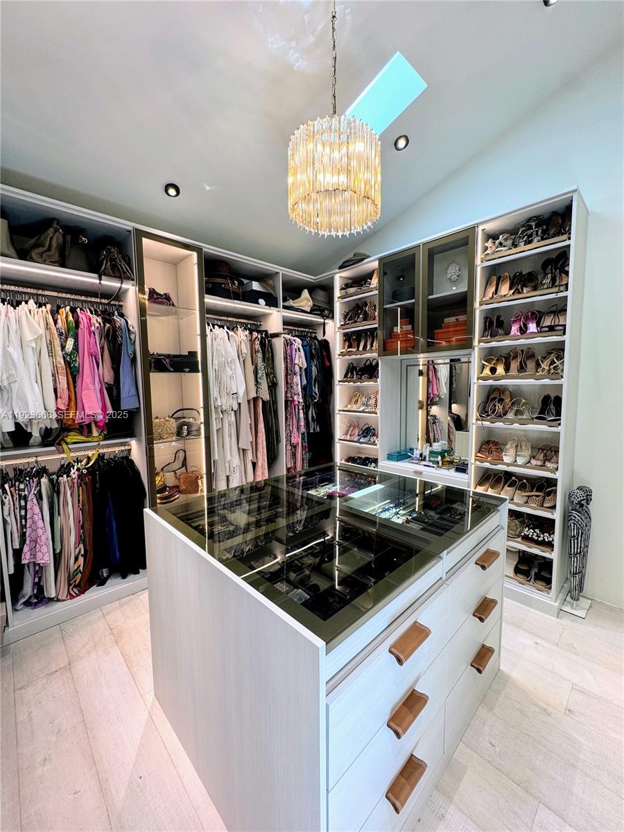 The 750 SF primary suite offers a true retreat with spa-style bath, steam shower, soaking tub, and designer stone finishes, complemented by a 225 SF custom walk-in closet with bespoke cabinetry, LED lighting, integrated sound, center island, and skylight illumination. Ideal for boating enthusiasts, the property provides direct bay access, shore power at the seawall, and an expansive yard perfect for entertaining. The grounds feature a full bocce court, lush privacy landscaping, and ample space for a future pool or expansion. Centrally located with top private schools including The Cushman School and Miami Country Day School. A rare opportunity to acquire a turnkey estate offering privacy, scale, and immediate Biscayne Bay access.