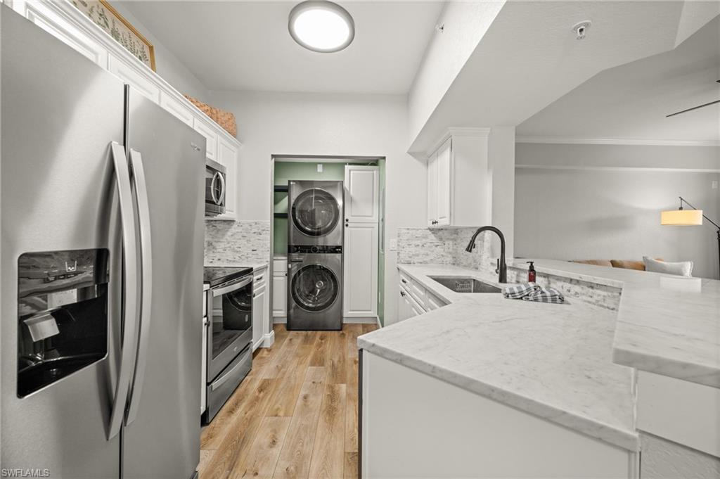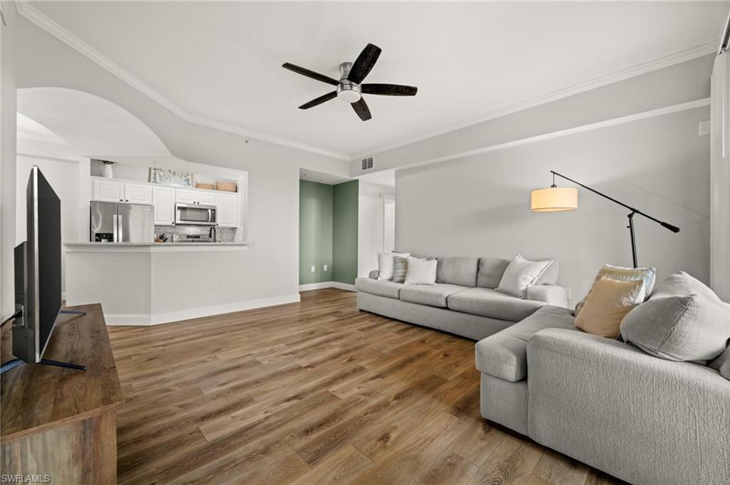 Truly an amazing 3 bedrm opportunity easy show call now & impact windows on order Seller's loss, your gain. . . Job relocation & seller leaving brand new reno. . . Live the resort lifestyle in this highly sought-after floor plan—the FULLY renovated airy 3-bedroom 3 walk in closet, 2-bath w/ private sunny lanai, Top-Floor end unit offering stylish comfort in the heart of Naples in a Elevator & PET friendly bldg. . . Be sure to click on Lifestyle video. . A few steps from the Resort center & your end unit parking space & New news- impact windows are to being installed ! This light-filled residence features wood-style vinyl flooring throughout, stylish hardware, and stainless steel appliances, creating a fresh and modern aesthetic from the moment you enter. The well-designed end-unit layout provides exceptional privacy, with a large living area and three comfortably sized bedrooms, including a serene primary suite with its own ensuite bath. The screened lanai enhances your outdoor living experience, making it an ideal spot to unwind and enjoy peaceful evenings. Positano Place is a gated, amenity-rich community centered around sparkling lakes with lighted fountains and lush, mature landscaping. Residents enjoy access to a beautifully designed community center with soaring ceilings, an executive business center, media room, internet café, and a state-of-the-art fitness center. Outdoor amenities include a resort-style lakeside pool and spa, gazebo with Jacuzzi area, outdoor sports bar with TV, tot lot, billiards room, and even a car care facility. Architectural touches such as 9-foot ceilings, decorative arches, crown molding in main living areas, and built-in niches add to the charm and elevated feel of the neighborhood. Perfectly positioned on Livingston Road just south of Pine Ridge, Positano Place places you minutes from Naples’ finest attractions—pristine Gulf beaches, Mercato’s dining and entertainment, Waterside Shops, and everyday conveniences. A rare opportunity to own a top-floor Monaco unit in one of Naples’ most centrally located and desirable communities.