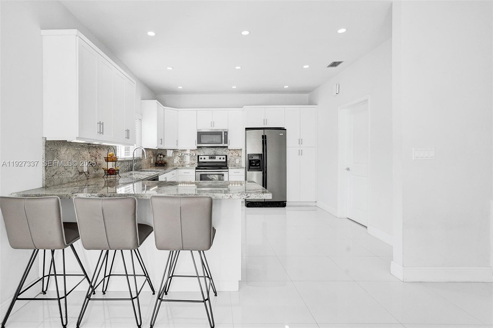 Completely remodeled corner pool home with an open floor plan, owners thought of all details when remodeling this beauty. Impact windows and doors, porcelain tile throughout, wood flooring in bedrooms, updated kitchen cabinets with plenty of storage space, granite countertop and backsplash, each bedroom with their own private bathroom, cabana bath, pool, safety fence around pool, oversized laundry room with additional cabinet storage, camera system, walk-in closets, wood fence around entire property. This property is a must see, show and rent.