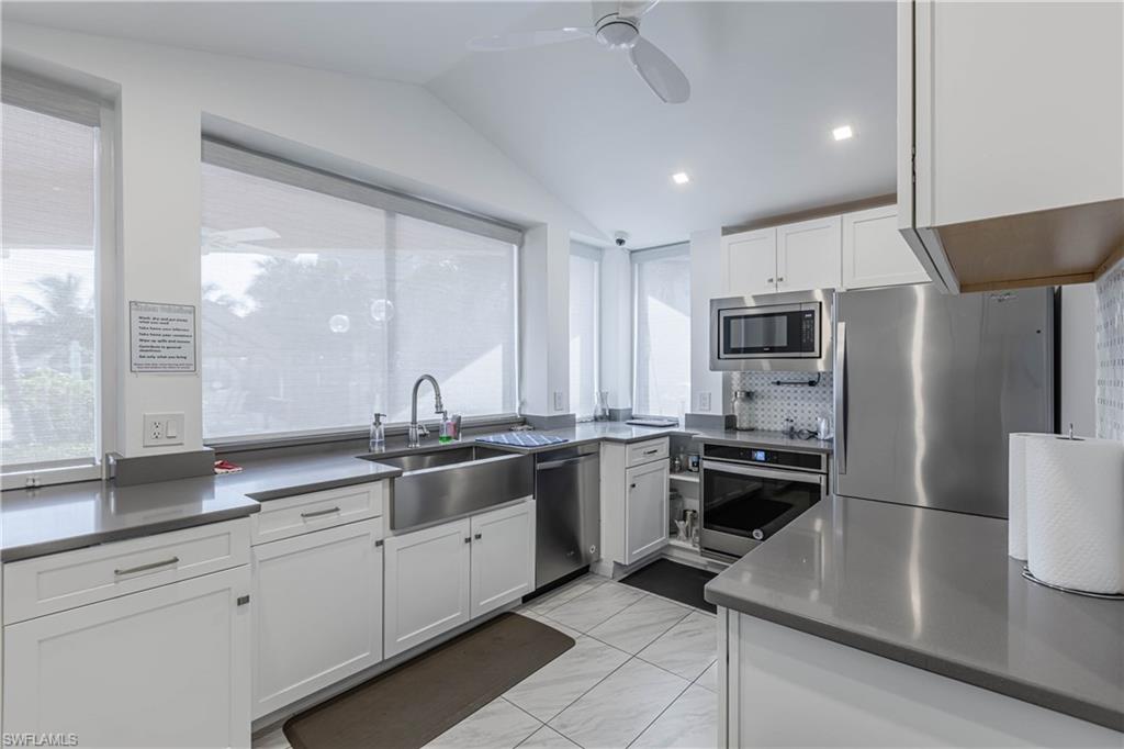 The well-appointed kitchen boasts sleek countertops, new appliances, and plenty of storage, making it ideal for entertaining. Enjoy freshly updated interiors and abundant natural light. Condo equipped with high impact windows and doors for added protection and peace of mind. Step out onto your private screened balcony and soak in the serene water views—a peaceful retreat right at home. Just a short walk to community amenities and enjoy a heated pool, fitness center, billiards, pickleball and beautifully renovated clubhouse with library!