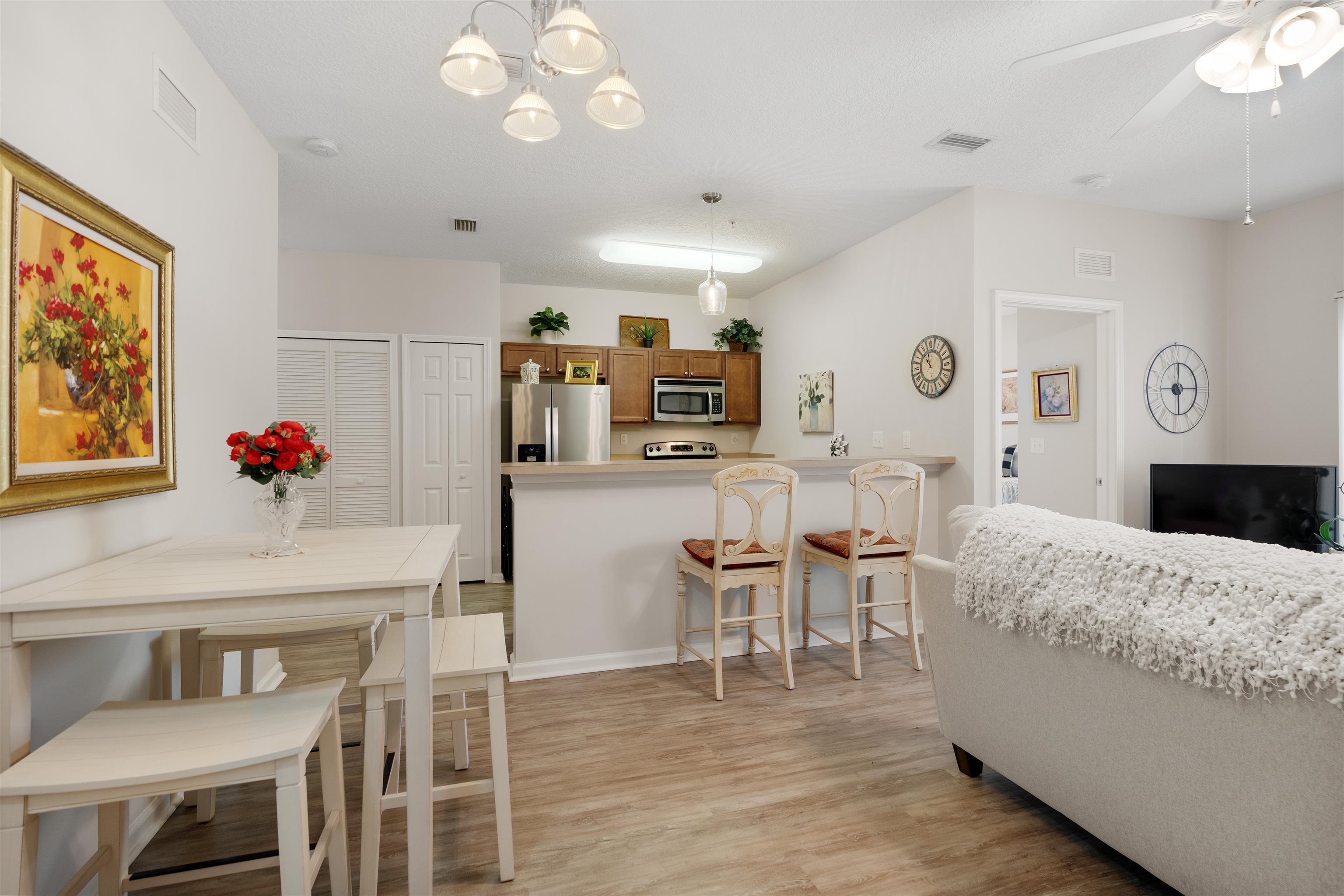 2251 Golden Lake Loop offers the epitome of cozy living in theserene setting of Sebastian Cove Community off St. Rd 16. This charming ground-floor unit boasts 2 bedrooms and 2bathrooms, presenting a perfect blend of comfort and convenience. Step inside to discover a meticulously maintained interior adorned with a tasteful color scheme of light cream walls and crisp white trim. The ground-level entry welcomes you with easy access to both the unit and a tranquil, north-facing exterior covered porch, ideal for unwinding after a long day. The heart of this home lies in its open-concept family room/kitchen layout, designed for seamless entertaining. The kitchen is a chef's delight, featuring a high counter bar, sleek stainless-steel appliances, and a conveniently located pantry. Earthy brown cabinetry, complemented by a pendant light, adds warmth and character to the space. Adjacent to the kitchen, the guest bedroom and bath offer comfortable accommodations, complete with a combination shower/tub. Meanwhile, the spacious master bedroom, located off the family room, offers a serene retreat with a sliding-door closet and an en-suite bath featuring a laminate-topped vanity and a shower with built-in shelving for easy storage. Strategically situated near I-95, the St. Augustine Outlet malls, and grocery stores, this condo is the epitome of convenience for those seeking to embrace a vibrant lifestyle or downsize to a simpler one. As part of the Sebastian Cove community, residents enjoy access to amenities such as a refreshing pool, a well-equipped fitness center, a playground, and a rentable clubhouse, ensuring there's always something to enjoy just steps from home.
