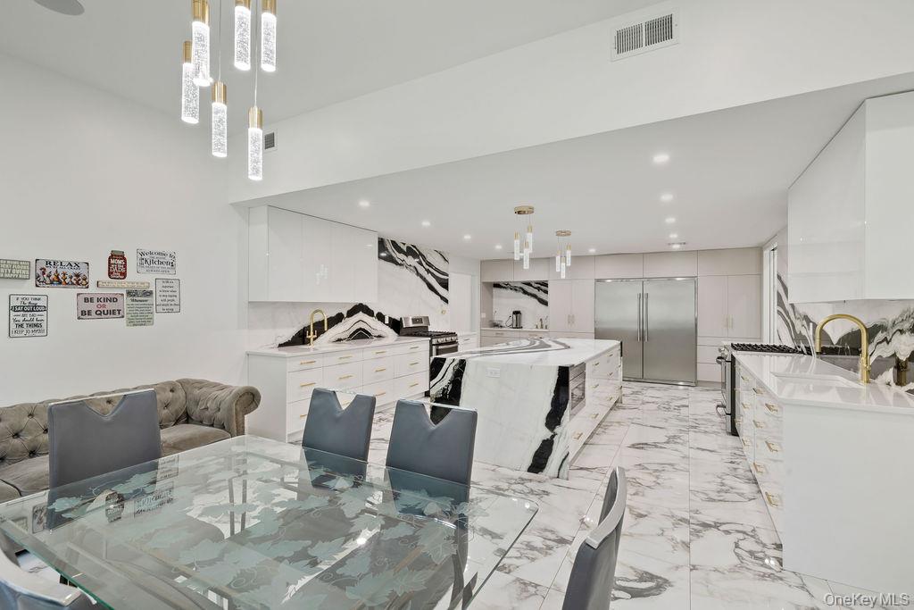 Welcome to 9 Wendover Lane, a breathtaking brand-new luxury estate in Suffern, NY, offering over 7, 000 sq ft of masterfully crafted living space on a sprawling, private property designed to impress at every turn. A grand marble foyer opens into an expansive living and dining area that flows into a stunning state-of-the-art kitchen appointed with premium finishes and top-tier appliances, complemented by a separate oversized walk-in Pesach kitchen. The first floor also includes a serene private office, an elegant full bathroom, and a bright, fun-filled playroom connected to a mid-level, window-lined sitting room overlooking the lush backyard. The second floor features a magnificent primary suite with its own private balcony, seven additional generously sized bedrooms, three beautifully designed full bathrooms, a second balcony, and a fully outfitted laundry room with abundant cabinetry and workspace. The finished basement offers an impressive recreation room with three large closets, two bedrooms, 2 baths, a kitchenette, and an additional laundry area, ideal for extended living. Outside, the expansive grassy yard includes a swingset, trampoline, shed, and a large walk-out patio with an awning sukkah, perfect for year-round enjoyment. Flooded with natural light and enhanced by 10-foot first-floor ceilings, a built-in speaker system, a full security system, and a central vacuum system, this home delivers unmatched elegance, comfort, and modern sophistication in one of Suffern’s most sought-after locations.